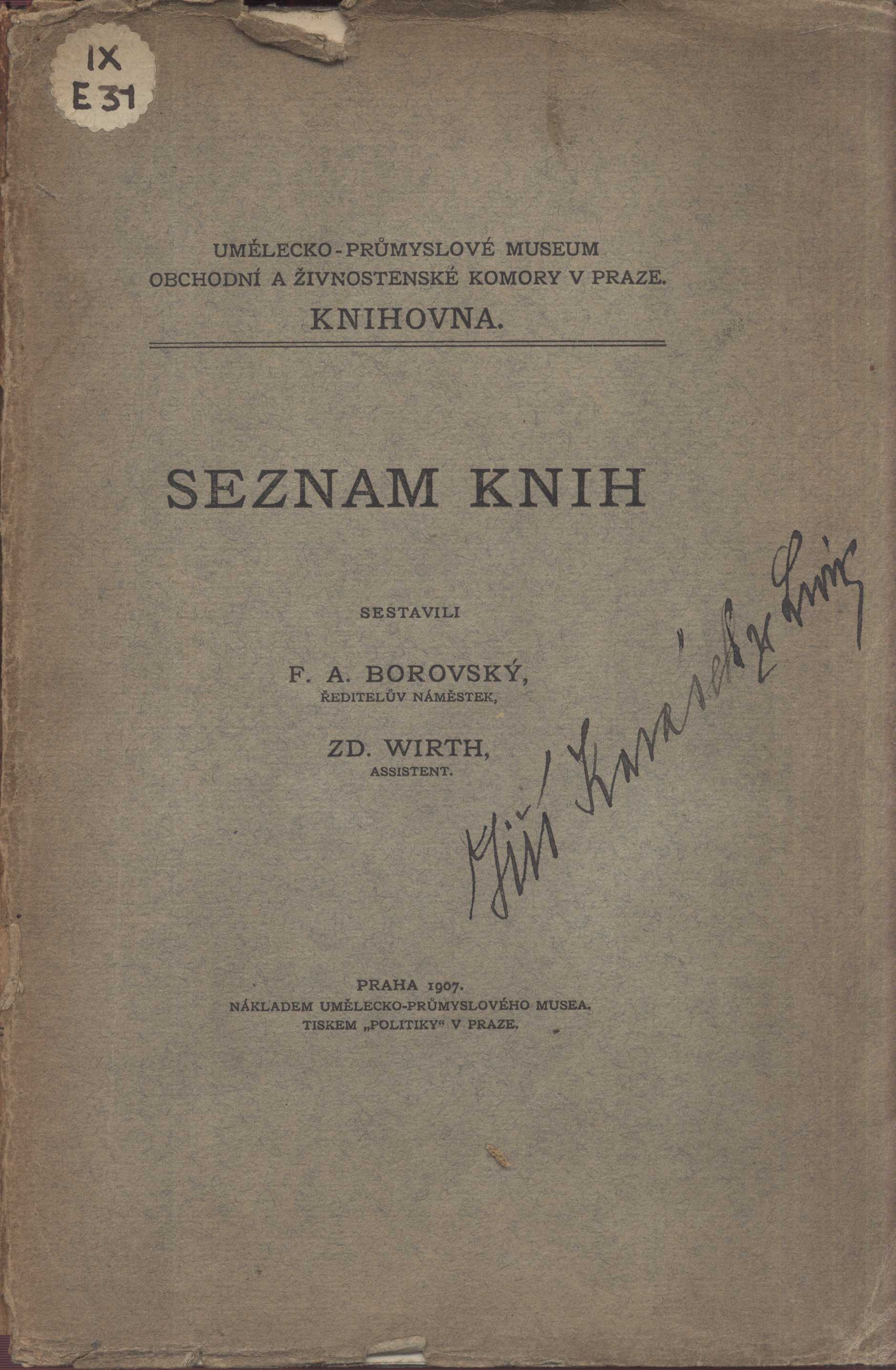 Názvové údaje XXXIII=33. Zinkova aukce : Děčínská knihovna Thunů-Hohensteinů : 1. část : dne 10., 11., 12. a 13. dubna 1933 / [sestavili Bohumír Lifka a Karel Zink] Záhlaví-akce <XXXIII=33>. Zinkova aukce (Děčínská knihovna Thunů-Honensteinů) (1. část) (10. 4. - 13. 4. 1933 : Umělecká aukční síň, Praha, Česko) Další autoři Lifka, Bohumír, 1900-1987 (Sestavovatel, kompilátor) (Autor úvodu atd.) Zink, Karel, 1889-1975 (Sestavovatel, kompilátor) (Nakladatel, vydavatel) Korp. Karel Zink (Praha, Česko) (Nakladatel, vydavatel) Orbis (tiskárna) (Tiskař) Umělecká aukční síň (Praha, Česko) (Jiná role) Nakladatel [Praha : Karel Zink], 1932 Výrobce (Orbis) Rozsah 83 s. Heslo korporace (zkrác. heslo korp.) : Tetschner Bibliothek (Thun-Hohensteinové) - rodová knihovna Klíčová slova česká literatura * katalog knih * katalog * aukční katalog * aukční katalog knih * šlechtické rody * Děčín * knihovna * zámecká knihovna * zámecké knihovny * aukce * soukromé knihovny * staré tisky * vzácné tisky * vzácné knihy * rukopisy * autografy * autografy spisovatelů * stol. 20., léta 30. * r. 1933 Počet ex. 1, z toho volných 1 Druh dok. monografie Signatura KaG XVII B 31/13 Názvové údaje XXXIV=34. knižní aukce : Knihovna Th. Dra Antonína Podlahy : 2. část : Nostitzovská knihovna ze zámku v Rokytnici : v pondělí dne 8. května, v úterý dne 9. května a ve středu dne 10. května 1933 v hotelu "Beránek" na Královských Vinohradech, Tylovo náměstí / [sestavili Bohumír Lifka, Stanislav F. Svoboda a Karel Zink] Záhlaví-akce <XXXIV=34>. knižní aukce (Knihovna Th. dra Antonína Podlahy) (2. část) (Nostitzovská knihovna ze zámku v Rokytnici) (8. 5. - 10. 5. 1933 : Hotel Beránek, Praha, Česko) Další autoři Lifka, Bohumír, 1900-1987 (Sestavovatel, kompilátor) (Autor úvodu atd.) Zink, Karel, 1889-1975 (Nakladatel, vydavatel) Korp. Karel Zink (Praha, Česko) (Nakladatel, vydavatel) Orbis (tiskárna) (Tiskař) Nakladatel Praha : Karel Zink, 1933 Výrobce (Orbis) Rozsah 67 s. Osobní hesla Podlaha, Antonín, 1865-1932 - literární a náboženský historik Klíčová slova česká literatura * katalog * katalog knih * aukční katalog * aukční katalog knih * aukce * grafika * grafiky * zámecká knihovna * zámecké knihovny * soukromé knihovny * náboženská literatura * bibliofilie * bibliofilská vydání * bibliofilské tisky * staré tisky * vzácné tisky * stol. 20., léta 30. * r. 1933 Počet ex. 1, z toho volných 1 Druh dok. monografie Signatura KaG XVII B 31/14 Názvové údaje De Bibliotheek van Pieter Pauwel Rubens: een reconstructie / door Prosper Arents ; bewerking Frans Baudoin ...[et al.] ; einredactie Alfons K.L. Thijs Osobní jméno Arents, Prosper, 1889-1984 (Autor) Další autoři Baudouin, Frans (Autor) Thijs, Alfons K.L., 1944- (Editor) Nakladatel Antwerpen : Vereniging der Antwerpse Bibliofielen, 2001 Rozsah 387 s. : faksim. Osobní hesla Rubens, Petrus Paulus, 1577-1640 - barokní malíř Klíčová slova knihovna P.P. Rubense knižní fond knihy o Rubensovi korespondence archiválie Počet ex. 1, z toho volných 1 Druh dok. monografie Signatura C12c 1511 Názvové údaje Rukopisné zlomky Knihovny Národního muzea : signatury 1 B a 1 C / Jiří Beneš ... [et al.] ; [obálka Jana Ratajová, Tomáš Rataj ; grafická úprava a předtisková příprava Tomáš Rataj] Osobní jméno Beneš, Jiří, (Autor) (Autor úvodu atd.) 1950- Další autoři Dobiáš, Dalibor, 1977- (Autor) (Autor úvodu atd.) Dragoun, Michal, 1974- (Autor) (Autor úvodu atd.) Halama, Ota, 1974- (Autor) Klosová, Markéta, 1958-2024 (Autor) Lelková, Iva, 1981- (Autor) Měřička, Matěj (Autor) (Autor úvodu atd.) Ratajová, Jana, (Autor obálky) 1972- Rataj, Tomáš, (Autor obálky) (Knižní grafik) 1973- Nakladatel Praha : Národní muzeum, Scriptorium, 2015 Výrobce PBtisk) Rozsah 279 s. ; 28 cm Heslo korporace (zkrác. heslo korp.) : Národní muzeum (Praha, Česko). Knihovna Geografické heslo Praha (Česko) Klíčová slova fragmenty rukopisů * evropské rukopisy * datované rukopisy * historické knihovní fondy * Česko * stol. 12.-20. * katalogy * rejstříky * kolektivní monografie Počet ex. 1, z toho volných 1 Druh dok. monografie Signatura C12d 2096 Názvové údaje Bibliothek Sr. Exzellenz Wilhelm v. Bode : I. Teil : als Anhang Beiträge aus anderem Privatzbesitz Záhlaví-akce Bibliothek Sr. Exzellenz Wilhelm v. Bode (I. Teil. Als Anhang Beiträge aus anderem Privatzbesitz_: 29. - 30. 11. 1921 : Berlin) Další autoři Borovský, František Adolf, 1852-1933 (Dřívější majitel) (Autor podpisu) Korp. Rudolph Lepke's Kunst-Auctions-Haus (aukční agentura) (Nakladatel, vydavatel) A. Seydel & Cie (Berlin) (Tiskař) Nakladatel Berlin : Rudolph Lepke's Kunst-Auctions-Haus, 1921 Výrobce (A. Seydel & Cie) Rozsah 79 s. Klíčová slova německá literatura * aukce * aukční katalog * aukční katalogy * knižní aukce * knihovna * knihovny * šlechtické knihovny * soukromé knihovny Počet ex. 1, z toho volných 1 Druh dok. monografie Signatura KaG XVIII B 148 Názvové údaje Rekonstrukce knihovny Bohuslava Hasištejnského z Lobkovic : katalog inkunábulí roudnické lobkovické knihovny / Kamil Boldan, Emma Urbánková ; [obálka, grafická úprava a sazba Alena Křesalová] Osobní jméno Boldan, Kamil, 1966- (Autor) Další autoři Urbánková, Emma, 1909-1992 (Autor) Křesalová, Alena, 1956- (Knižní grafik) (Autor obálky) Nakladatel Praha : Národní knihovna České republiky, 2009 Rozsah 902 s. : il., faksim. ; 25 cm Osobní hesla Hasištejnský z Lobkovic, Bohuslav, asi 1461-1510 - humanistický spisovatel Heslo korporace (zkrác. heslo korp.) : Národní knihovna České republiky * Roudnická Lobkowiczká knihovna Geografické heslo Praha (Česko) * Nelahozeves (Česko) Klíčová slova rukopisy * prvotisky * staré tisky * r. 1501-1550 * Česko * zámecké knihovny * zámecké kniho