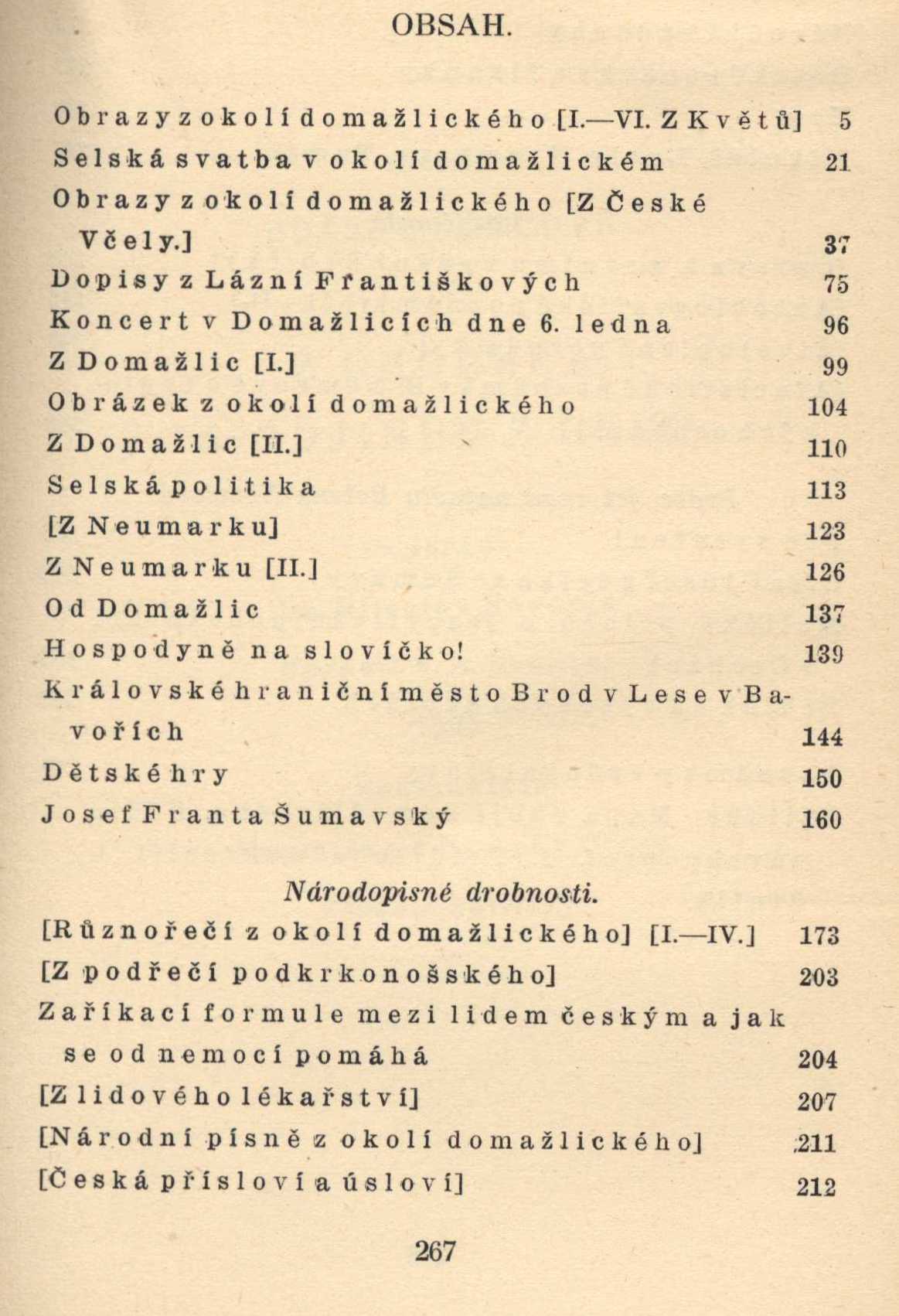 Názvové údaje Moravská svatba / popsal František Bartoš ; [k vydání připravili Karel Pavlištík, Alena Prudká] Osobní jméno Bartoš, František, 1837-1906 (Autor) Další autoři Mašíček, Cyril, 1868-1929. Líšeň Pavlištík, Karel, 1931-2018 (Editor) Prudká, Alena, 1949- (Editor) Korp. Muzeum jihovýchodní Moravy (Zlín, Česko) Nakladatel Zlín : Krajská knihovna Františka Bartoše : Muzeum jihovýchodní Moravy, 2007 Rozsah 79, 85, 83 s. : noty ; 21 cm Klíčová slova Morava * Valašsko * etnografie * národopis * lidové zvyky * lidové obyčeje * lidové písně * lidová kultura * monografie Počet ex. 1, z toho volných 1 Druh dok. monografie Signatura C12b 10620 Názvové údaje Jihočeská blata / popsala Emilie Fryšová Osobní jméno Fryšová, Emilie, 1840-1920 (Autor) (Autor úvodu atd.) (Nakladatel, vydavatel) Další autoři Fr. Borový (firma) (Knihkupec) Edvard Leschinger (firma) (Tiskař) Nakladatel V Praze : nákladem vlastním [Emilie Fryšová] : v komisi nakladatelství fy. Fr. Borový, 1913 Výrobce (tiskem Edvarda Leschingra) Rozsah 214 s., 1 mapa : il. Klíčová slova česká literatura * národopis * národopisné slavnosti * lidové obyčeje * lidové písně * lidové tradice * lidové zvyky * lidový kroj * Čechy * jihovýchodní Čechy * Blata Počet ex. 1, z toho volných 1 Druh dok. monografie Signatura AFB 0026 Názvové údaje Pověry a obyčeje v Čechách a na Moravě / Josef Virgil Grohmann ; [z německého originálu ... přeložil David Sajvera ; doslov a odborná redakce Petr Janeček ; obálka a grafická úprava Lucie Němcová] Osobní jméno Grohmann, Joseph Virgil, 1831-1919 (Autor) Další autoři Sajvera, David Janeček, Petr, 1978- (Autor doslovu, tiráže atd.) Němcová, Lucie (Knižní grafik) (Autor obálky) Nakladatel Praha : Plot, 2010 Výrobce PBtisk) Rozsah 285 s. : il. Klíčová slova národopis * folkloristika * lidové pověry * lidové obyčeje * lidové zvyky * Čechy a Morava * stol. 19. Počet ex. 1, z toho volných 1 Druh dok. monografie Signatura C12c 3293 Názvové údaje Předvečer svaté Anežky / John Keats ; přeložil Fr. Bíbl ; vyzdobil a upravil Antonín Chlebeček Osobní jméno Keats, John, 1795-1821 (Autor) Další autoři Bíbl, František, 1880-1932 (Překladatel) Chlebeček, Antonín, 1889- (Knižní grafik) Bradáč, Ludvík, 1885-1947 (Nakladatel, vydavatel) Korp. Stiebling a Havelka (tiskárna) (Tiskař) Nakladatel V Praze : Ludvík Bradáč, 1923 Výrobce Ve Vršovicích : Stiebling a Havelka Rozsah 32 strna : černobílé ilustrace ; 26 cm Klíčová slova britská literatura * poezie * bibliofilie * bibliofilská vydání * bibliofilský tisk * středověk * romantika * sny * lidové obyčeje * Hrad * stol. 19. Počet ex. 2, z toho volných 2 Druh dok. monografie Signatura KaG XVI B 240, AHO 0708 Názvové údaje Javornické hody : obrázek / Čeněk Kramoliš ; [ilustrace Frant. Süsser] Osobní jméno Kramoliš, Čeněk, 1862-1949 (Autor) Další autoři Süsser, František Václav, 1890-1956 (Ilustrátor) Korp. Družstvo Moravského kola spisovatelů (nakladatelství) (Nakladatel, vydavatel) Nakladatel V Brně : Družstvo Moravského kola spisovatelů, 1944 Výrobce Karel Kryl) Rozsah 45 s. : il. ; 8° Klíčová slova česká próza * Morava * lidové obyčeje * lidové zvyky * venkovský život * stol. 19. Počet ex. 1, z toho volných 1 Druh dok. monografie Signatura C12c 2686 Názvové údaje [Moravské národní pohádky, pověsti, obyčeje a pověry. Svazek druhý / sebral a napsal Beneš Method Kulda] Osobní jméno Kulda, Beneš Metod, 1820-1903 (Autor) Další autoři I.L. Kober (nakladatelství, tiskárna, knihkupectví) (Nakladatel, vydavatel) Nakladatel Praha : I. L. Kober, 1874 Rozsah 356 stran Klíčová slova česká próza * české pohádky * pohádkové příběhy * moravské pověsti * lidové pověry * lidové obyčeje Počet ex. 2, z toho volných 2 Druh dok. monografie Signatura VMartínek 1482, VHB 3644/3 Názvové údaje Spisy Jaroslava Langera. Díl druhý Osobní jméno Langer, Josef Jaroslav, 1806-1846 (Autor) Další autoři Kober a Markgraf (Praha) (Nakladatel, vydavatel) Jaroslav Pospíšil (nakladatelství, tiskárna, knihkupectví) (Tiskař) Nakladatel V Praze ; ve Vídni : Nakladatelé Kober a Markgraf, 1861 Výrobce (Tisk Jarosl. Pospíšila) Rozsah 621 s. ; 8° Osobní hesla Langer, Josef Jaroslav, 1806-1846 - básník, prozaik, dramatik, satirik, folklorista a překladatel Klíčová slova česká literatura * česká próza * česká poezie * česká dramata * epické básně * divadelní hry * pověsti * lidové obyčeje * spisy Počet ex. 1, z toho volných 1 Druh dok. monografie Signatura VMartínek 1489 Názvové údaje Lidové zvyky : výroční obyčeje z Čech a Moravy / Jiřina Langhammerová ; [obálku navrhl a text graficky upravil Vladimír Vimr] Osobní jméno Langhammerová, Jiřina, 1939- (Autor) Další autoři Vimr, Vladimír, 1954- (Knižní grafik) (Autor obálky) Nakladatel Praha : NLN - Nakladatelství Lidové noviny, 2004 Rozsah 341 s. : il. Klíčová slova etnografie * lidové obyčeje * lidové zvyky * Čechy * Morava Počet ex. 1, z toho volných 1 Druh dok. monografie Signatura C12b 7937 Názvové údaje Z Chodska a odjinud z Čech / [uspořádal Miloslav Novotný ; upravil V.H. Brnunner] Osobní jméno Němcová, Božena, 1820-1862 (Autor) Další autoři Novotný, Miloslav, 1894-1966 (Editor) Brunner, Vratislav Hugo, 1886-1928 (Knižní grafik) Korp. Kvasnička a Hampl (nakladatelství) (Nakladatel, vydavatel) Politika (tiskárna, nakladatelství) (Tiskař) Nakladatel V Praze : Nakladatelé Kvasnička a Hampl, 1929 Výrobce (Tiskem Politiky) Rozsah 268 s. + 1 příl. Klíčová slova česká próza * povídky * národopis * lidové obyčeje * lidové písně * Domažlicko * jižní Čechy * stol. 19., 1. pol. Počet ex. 1, z toho volných 1 Druh dok. monografie Signatura VMartínek 1507 Názvové údaje Zname