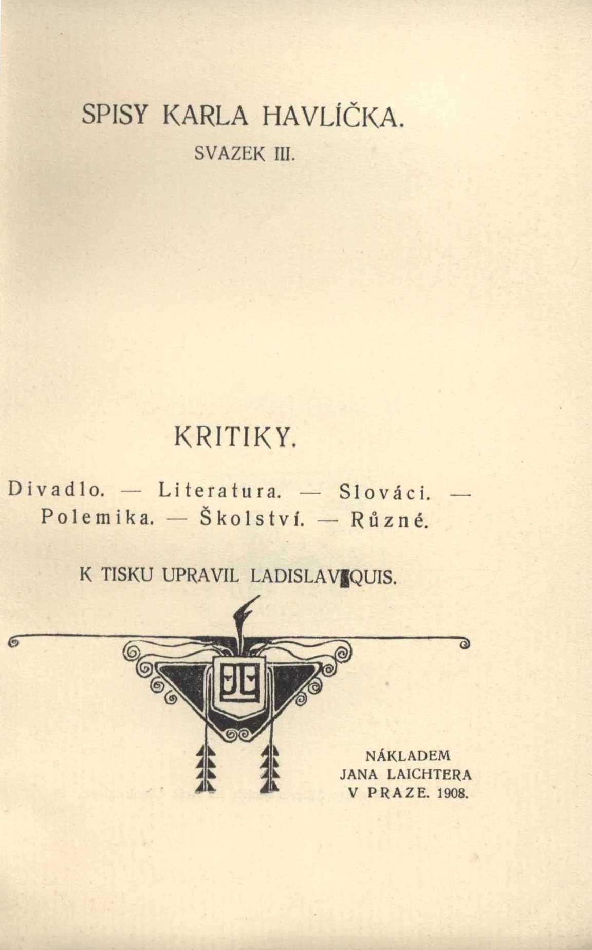 Názvové údaje Tablettes littéraires / Jules Case Osobní jméno Case, Jules, 1854-1931 (Autor) Další autoři Nedoma, Miloslav, 1875-1954 (Dřívější majitel) Korp. Société d'éditions littéraires et artistiques. Librairie Paul Ollendorff (firma) (Nakladatel, vydavatel) Imprimerie Kapp (Paris (Francie)) (Tiskař) Nakladatel Paris : Librairie Paul Ollendorff, [19--] Výrobce (Imp. Kapp) Rozsah iii, 300 s. Osobní hesla Gourmont, Rémy de, 1858-1915 - francouzský spisovatel * Maupassant, Guy de, 1850-1893 - francouzský novelista, romanopisec, dramatik a novinář * Barrès, Maurice, 1862-1923 - francouzský spisovatel, novinář a politik * Racine, Jean, 1639-1699 - francouzský dramatik * Leonardo, da Vinci, 1452-1519 - italský malíř, sochař, architekt a vědec Klíčová slova francouzská literatura * literární kritika * literární kritiky * dekadence * symbolismus * francouzský symbolismus * moderní umění * moderní umělecké směry * moderní literatura * esej * eseje * esejistické texty Počet ex. 1, z toho volných 1 Druh dok. monografie Signatura KaG LVIII C2 19 Názvové údaje Nouveaux prétextes : réflexions sur quelques points de littérature et de morale / André Gide Osobní jméno Gide, André, 1869-1951 (Autor) Další autoři Procházka, Arnošt, 1869-1925 (Dřívější majitel) Korp. Société du Mercure de France (Paris, Francie) (Nakladatel, vydavatel) Imprimerie Marc Texier (Poitiers, Francie) (Tiskař) Imprimerie artistique Lux (Paris, Francie) (Tiskař) Nakladatel Paris : Mercure de France, 1921 Výrobce (Imprimerie artistique Lux) Rozsah 329 s. Klíčová slova francouzská literatura * literární studie * literární úvahy * eseje * esejistické texty * literární kritika * symbolismus * dekadence * francouzský symbolismus * literární kritiky Počet ex. 1, z toho volných 1 Druh dok. monografie Signatura KaG XII D 52 Názvové údaje Prétextes : réflexions sur quelques points de littérature et de morale / André Gide Osobní jméno Gide, André, 1869-1951 (Autor) Další autoři Société du Mercure de France (Paris, Francie) (Nakladatel, vydavatel) Bussière (firma) (Tiskař) Nakladatel Paris : Mercure de France, 1913 Výrobce Bussière) Rozsah 306 s. Osobní hesla Wilde, Oscar, 1854-1900 - irský dramatik, prozaik a básník * Mallarmé, Stéphane, 1842-1898 - fraancouzský básník a esejista * Mirbeau, Octave, 1848-1917 - francouzský prozaik a dramatik, umělecký a divadelní kritik * Régnier, Henri de, 1864-1936 - francouzský básník * Jammes, Francis, 1868-1938 - spisovatel * Mauclair, Camille, 1872-1945 - francouzský básník, prozaik, literární a výtvarný kritik * Villiers de L'Isle-Adam, Auguste de, 1838-1889 - francouzský spisovatel * Nietzsche, Friedrich, 1844-1900 - německý filolog, filozof Klíčová slova francouzská literatura * literární studie * literární úvahy * eseje * esejistické texty * literární kritika * literární kritiky * symbolismus * dekadence * francouzský symbolismus Počet ex. 1, z toho volných 1 Druh dok. monografie Signatura VHB 2278 Názvové údaje Křest Sv. Vladimíra : legenda z Historie ruské / H. B.. Havlíčkův křest Sv. Vladimíra a jeho rukopisy / Vratislav Čermák Osobní jméno Havlíček Borovský, Karel, 1821-1856 (Autor) Další autoři Čermák, Vratislav, 1888-1964 (Autor) (Nakladatel, vydavatel) Brauner, Vladimír, nar. 1887 (Dřívější majitel) (Autor podpisu) Korp. Česká grafická Unie (tiskárna a nakladatelství) (Tiskař) Nakladatel V Kolíně : V. Čermák, 1925 Výrobce Tiskem České grafické Unie) Rozsah 75, 67 s. Osobní hesla Havlíček Borovský, Karel, 1821-1856 - spisovatel, publicista a politik Klíčová slova česká poezie * epické básně * autograf * Havlíček Borovský K. * rukopis * faksimile * dílo * stol. 19. * stol. 19., léta 50. * literární kritiky * kritické rozbory * kritické studie Počet ex. 3, z toho volných 3 Druh dok. monografie Signatura C12a 2926, VHB 0482, VMartínek 1240 Názvové údaje Spisy Karla Havlíčka. Svazek III., Kritiky / k tisku upravil Ladislav Quis Osobní jméno Havlíček Borovský, Karel, 1821-1856 (Autor) Další autoři Quis, Ladislav, 1846-1913 (Editor) Korp. Jan Laichter (nakladatelství) (Nakladatel, vydavatel) Albert Malíř (tiskárna a nakladatelství) (Tiskař) Nakladatel V Praze : Nákladem Jana Laichtera, 1908 Výrobce Tiskem Alberta Malíře) Rozsah 284 s., [5] l. obr. příl. : il. Klíčová slova česká literatura * dějiny české literatury * literární kritici * literární kritika * literární kritiky * kritika * divadelní kritika * česká publicistika * publicistika Počet ex. 2, z toho volných 2 Druh dok. monografie Signatura VHB 0479, VMartínek 1351 Názvové údaje Drahokam domova : (výběr z článků a projevů) / František Hrubín ; připravil, doslov a bibliografickou poznámku napsal Josef Strnadel ; kresba na obálce od Jiřího Trnky ; obálku navrhl a graficky upravil Josef Týfa Osobní jméno Hrubín, František, 1910-1971 (Autor) Další autoři Strnadel, Josef, 1912-1986 (Editor) (Autor doslovu, tiráže atd.) (Autor komentáře textu) Trnka, Jiří, 1912-1969 (Ilustrátor) Týfa, Josef, 1913-2007 (Autor obálky) (Knižní grafik) Korp. Nakladatelství Albatros (Nakladatel, vydavatel) Tisk Brno (tiskárna) (Tiskař) Nakladatel Praha : Albatros, 1976 Výrobce Brno : Tisk Rozsah 146 stran ; 20 cm Osobní hesla Hrubín, František, 1910-1971 - básník, dramatik, prozaik, překladatel Klíčová slova česká literatura * čeští spisovatelé * Hrubín F. * literární kritiky * esejistické texty * výbor Druh dok. monografie Signatura Branald 0351 Názvové údaje Erzählungen / Franz Kafka ; herausgegeben von Max Brod Osobní jméno Kafka, Franz, 1883-1924 (Autor) Další autoři Brod, Max, 1884-1968 (Editor) Nakladatel Frankfurt am Main : Fischer Taschenbuch Verlag, 1976 Rozsah 244 s. Osobní hesla Kafka, Franz, 1883-1924 - pražský n