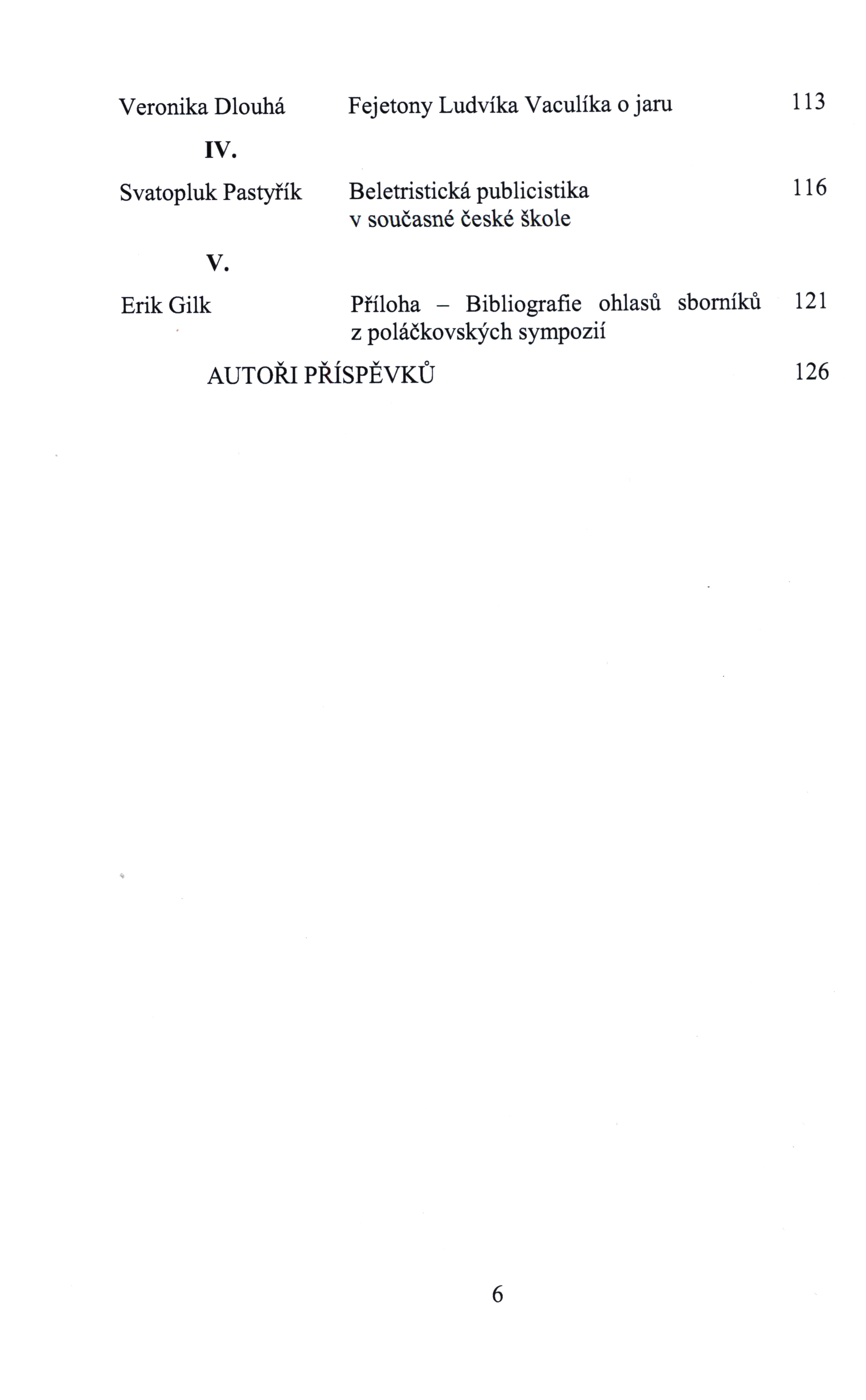 Názvové údaje Aus der Zeit - Gegen die Zeit : gesammelte Essays / Leo Berg Osobní jméno Berg, Leo, 1862-1908 (Autor) Další autoři Herrosé & Ziemsen (Wittenberg) (Tiskař) Hüpeden & Merzyn (nakladatelství) (Nakladatel, vydavatel) Nakladatel Berlin ; Leipzig ; Paris : Hüpeden & Merzyn, 1905 Výrobce Herrosé & Ziemsen) Rozsah vii, 453 s. Osobní hesla Lenau, Nicolaus, 1802-1850 - rakouský básník * Raabe, Wilhelm, 1831-1910 - německý spisovatel, básník * Emerson, Ralph Waldo, 1803-1882 - americký spisovatel * Gor‘kij, Maksim, 1868-1936 - ruský spisovatel, dramatik, publicista, politický činitel Klíčová slova německá literatura * literární kritika * literární publicistika * eseje * Židé * esejistické texty Počet ex. 1, z toho volných 1 Druh dok. monografie Signatura KaG XLV D 13 Názvové údaje Poslední kniha povídek a črt / Svatopluk Čech Osobní jméno Čech, Svatopluk, 1846-1908 (Autor) Další autoři F. Topič (nakladatelství) (Nakladatel, vydavatel) Unie (tiskárna) (Tiskař) Nakladatel V Praze : F. Topič, 1908 Výrobce (Tiskem Unie) Rozsah 357 s. Klíčová slova česká próza * povídky * česká literatura * fejetony * literární publicistika * výbor próz Počet ex. 1, z toho volných 1 Druh dok. monografie Signatura VHB 0321 Názvové údaje Time-out, aneb, Mé kritické pokusy, bláboly a omyly z let 1987-1999 / Pavel Janoušek ; Obálka (s použ. fotogr. Libora Stavjaníka) Vladimír Kovařík ; Ilustr. Pavel Janoušek Osobní jméno Janoušek, Pavel, 1956- (Autor) (Ilustrátor) Další autoři Kovařík, Vladimír, 1965- (Grafický technik) Stavjaník, Libor, 1965- (Fotograf) Nakladatel Brno : Host, 2001 Rozsah 141 s. Klíčová slova česká literatura * literární publicistika * literárněvědné studie * úvahy * články * r. 1987-1999 Počet ex. 1, z toho volných 1 Druh dok. monografie Signatura C12b 5407 Názvové údaje Karel Poláček a žánry beletristické publicistiky : sborník příspěvků ze sympozia : Rychnov nad Kněžnou, červen 2012 / [sestavil a k vydání připravil Erik Gilk] Záhlaví-akce Karel Poláček a žánry beletristické publicistiky (sympozium) (2012 : Rychnov nad Kněžnou, Česko) Další autoři Gilk, Erik, 1973- (Sestavovatel, kompilátor) (Editor) Nakladatel V Boskovicích : Albert, 2012 Rozsah 128 s. : il., portréty Osobní hesla Poláček, Karel, 1892-1945 - spisovatel, publicista Klíčová slova česká literatura * česká publicistika * literární publicistika * česká žurnalistika * literárněvědné rozbory * Poláček K. * Rychnov nad Kněžnou * Česko * r. 2012 * sborníky z konferencí Počet ex. 1, z toho volných 1 Druh dok. monografie Signatura C12b 15425 Názvové údaje Heine und die Folgen / von Karl Kraus Osobní jméno Kraus, Karl, 1874-1936 (Autor) Další autoři Albert Langen Verlag (Mnichov, Německo) (Nakladatel, vydavatel) Hesse & Becker (Leipzig, Německo) (Tiskař) Nakladatel München : Albert Langen, c1910 Výrobce Leipzig : Druck von Hesse & Becker, c1910 Rozsah 45 stran Osobní hesla Heine, Heinrich, 1797-1856 - německý básník a prozaik Klíčová slova rakouská literatura * publicistika * literární publicistika * kritika * esej * esejistické texty Počet ex. 1, z toho volných 1 Druh dok. monografie Signatura KaG III D2 61 Názvové údaje Vybrané spisy Jana Nerudy ve čtyřech dílech / uspořádal Arne Novák. díl 3., Výbor z feuilletonů Osobní jméno Neruda, Jan, 1834-1891 (Autor) Další autoři Novák, Arne, 1880-1939 (Editor) Hellmuthová, Marta, 1917-1988 (Dřívější majitel) Korp. F. Topič (nakladatelství) (Nakladatel, vydavatel) Politika (tiskárna, nakladatelství) (Tiskař) Nakladatel V Praze : F. Topič, 1927 Výrobce (Tiskem "Politiky") Rozsah 383 s. Klíčová slova česká literatura * česká publicistika * publicistika * literární publicistika * fejetony * cestopisné fejetony * česká próza Počet ex. 1, z toho volných 1 Druh dok. monografie Signatura VHB 3535/3 Názvové údaje Vybrané spisy Jana Nerudy ve čtyřech dílech / uspořádal Arne Novák. díl 4., Výbor ze spisů kritických a smíšených Osobní jméno Neruda, Jan, 1834-1891 (Autor) Další autoři Novák, Arne, 1880-1939 (Editor) Hellmuthová, Marta, 1917-1988 (Dřívější majitel) Korp. F. Topič (nakladatelství) (Nakladatel, vydavatel) Politika (tiskárna, nakladatelství) (Tiskař) Nakladatel V Praze : F. Topič, 1927 Výrobce (Tiskem "Politiky") Rozsah 351 s. Klíčová slova česká literatura * česká publicistika * literární publicistika * publicistika * literární kritika * literární kritiky * česká próza * kritika * divadelní kritika Počet ex. 1, z toho volných 1 Druh dok. monografie Signatura VHB 3535/4