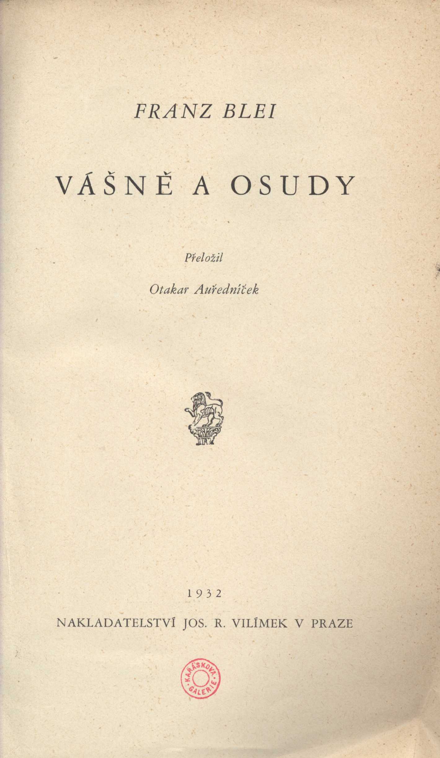 Názvové údaje Záhadné povahy : studie a črty povahopisné / napsal Jakub Arbes Osobní jméno Arbes, Jakub, 1840-1914 (Nakladatel, vydavatel) Další autoři J. Otto (nakladatelství) (Nakladatel, vydavatel) Nakladatel V Praze : J. Otto, [1909] Rozsah 360 stran Klíčová slova portréty osobností * medailony osobností * charakteristika osobnosti * psychologické studie * črty Počet ex. 6, z toho volných 6 Druh dok. monografie Signatura Thon 1552, M 146 e 55, P 125 f 26, P 23 b 36, HG XII 78, F I 2492M 146 e 55 Názvové údaje Záhadné povahy : studie a črty povahopisné / od J. Arbesa Osobní jméno Arbes, Jakub, 1840-1914 (Autor) Další autoři Josef Miškovský (Český Brod, Česko) (Nakladatel, vydavatel) Jos. R. Vilímek (knihtiskárna) (Tiskař) Nakladatel V Českém Brodě : nákladem knihkupectví Jos. Miškovského, 1884 Výrobce V Praze : tiskem Jos. R. Vilímka Rozsah 264 stran Osobní hesla Machiavelli, Niccolò 1469-1527 - historik, politik * Poe, Edgar Allan, 1809-1849 - americký básník, prozaik, literární teoretik a esejista * Mirabeau, Honoré-Gabriel Viktor Riquetti, comte de, 1749-1791 - francouzský politik a revolucionář Klíčová slova medailony osobností * portréty osobností * charakteristika osobnosti * studie Počet ex. 2, z toho volných 2 Druh dok. monografie Signatura F I 2493, K Y II 98 Názvové údaje Ferdinand Schwarz : jeho život a působení / Jaroslav Bláha Osobní jméno Bláha, Jaroslav, 1924-2015 (Autor) Další autoři Masarykova dělnická akademie (Nakladatel, vydavatel) Nakladatelství Kapucín (Nakladatel, vydavatel) Nakladatel Ústí nad Labem : Masarykova dělnická akademie, 2006 Výrobce Jiří Bartoš - SLON Rozsah 23 stran : portrét, faksimile ; 21 cm Osobní hesla Schwarz, Ferdinand, 1852-1906 - sociálně demokratický politik a redaktor Klíčová slova severní Čechy * sociální demokracie * politici * redaktoři * medailony osobností * stol. 19.-poč. stol. 20. Počet ex. 1, z toho volných 1 Druh dok. monografie Signatura C12b 17185 Názvové údaje Vášně a osudy / Franz Blei ; přeložil Otakar Auředníček Osobní jméno Blei, Franz, 1871-1942 (Autor) Další autoři Auředníček, Otakar, 1868-1947 (Překladatel) (Dedikátor) Karásek ze Lvovic, Jiří, 1871-1951 (Dedikant) Korp. Jos. R. Vilímek (nakladatelství) (Nakladatel, vydavatel) Nakladatel V Praze : Jos. R. Vilímek, 1932 Rozsah 293 s., [17] l. obr. příl. : il. Osobní hesla Teresa de Jesús, svatá, 1515-1582 - španělská spisovatelka, členka řádu bosých karmelitánek * Casanova, Giacomo, 1725-1798 - italský dobrodruh a spisovatel * Sand, George, 1804-1876 - francouzská prozaička a dramatička * Brummell, George Bryan, 1778-1840 * Baudelaire, Charles, 1821-1867 - francouzský básník, umělecký kritik a překladatel * Péladan, Joséphin, 1859-1918 - francouzský básník, kritik a prozaik * Wilde, Oscar, 1854-1900 - irský dramatik, prozaik a básník Klíčová slova rakouská literatura * eseje * portréty * medailony * medailony osobností * dekadence Počet ex. 1, z toho volných 1 Druh dok. monografie Signatura KaG XII C2 12 Názvové údaje Triumf zla : essaie a evokace / Arthur Breisky ; [grafická výzdoba Zdenky Braunerové na přání zemřelého autora ; podobiznu autorovu do dřeva ryl František Kobliha] Osobní jméno Breiský, Artur, 1885-1910 (Autor) Další autoři Kobliha, František, 1877-1962 (Ilustrátor) (Dřevorytec) Breiský, Rudolf W. (Nakladatel, vydavatel) Braunerová, Zdenka, 1858-1934 (Knižní grafik) (Dedikátor) Karásek ze Lvovic, Jiří, 1871-1951 (Dedikant) (Autor podpisu) (Autor úvodu atd.) Toman, Prokop Hugo, 1902-1981 (Nakladatel, vydavatel) (Autor podpisu) Kaláb, Method, 1885-1963 (Tiskař) Korp. Průmyslová tiskárna v Praze (Tiskař) Nakladatel Praha : Prokop Toman ml., 1927 Výrobce (Průmyslová tiskárna) Rozsah 93 s. : il. ; 24 cm Osobní hesla Nero, Claudius Caesar, římský císař, 37-68 * Watteau, Antoine, 1684-1721 - francouzský malíř * Byron, George Gordon Byron, baron, 1788-1824 - anglický básník * Baudelaire, Charles, 1821-1867 - francouzský básník, umělecký kritik a překladatel * Wilde, Oscar, 1854-1900 - irský dramatik, prozaik a básník Klíčová slova česká literatura * bibliofilie * bibliofilská vydání * bibliofilský tisk * číslovaný výtisk * česká próza * eseje * esejistické texty * medailony * medailony osobností * dekadence Počet ex. 2, z toho volných 2 Druh dok. monografie Signatura KaG XVI B 120, Topič 0056 Názvové údaje Lidé z Obrany národa a spolupracovníci časopisu V boj ve východních Čechách 1939-1940 / Jan Brunclík ; Růžena Hlušičková Osobní jméno Brunclík, Jan, 1939- (Autor) Další autoři Hlušičková, Růžena, 1939- (Autor) Korp. Státní oblastní archiv v Zámrsku (Nakladatel, vydavatel) Roč., číslo Supplementum 3, 2006 Nakladatel V Zámrsku : Státní oblastní archiv, 2006 Rozsah il. 319 s. Klíčová slova protifašistický odboj * ilegální tisk * východní Čechy * 2. světová válka * r. 1939-1940 * biografie * medailony osobností * sborník Nadřízená jednotka Sborník prací východočeských archivů Počet ex. 1, z toho volných 1 Druh dok. PERIODIKA - Svázaný ročník periodika Signatura C12b 12402 Názvové údaje Laureáti Ceny Gratias Agit = Gratias Agit award laureates. 2006 Záhlaví-akce Cena Gratias Agit (Praha, Česko) Další autoři Česko. Ministerstvo zahraničních věcí (Nakladatel, vydavatel) SEVT (firma) (Nakladatel, vydavatel) Nakladatel [Praha] : Ministerstvo zahraničních věcí ČR : SEVT, 2006 Rozsah 44 stran : portréty ; 21 cm Klíčová slova kulturní osobnosti * literární osobnosti * politické osobnosti * ceny * předávání ceny * nositelé * medailony osobností * seznam Počet ex. 2, z toho volných 2 Druh dok. monografie Signatura C12b 9316, JVladislav 1355 Názvové údaje Laureáti Ceny Gratias Agit = Gratias Agit award laureates. 2