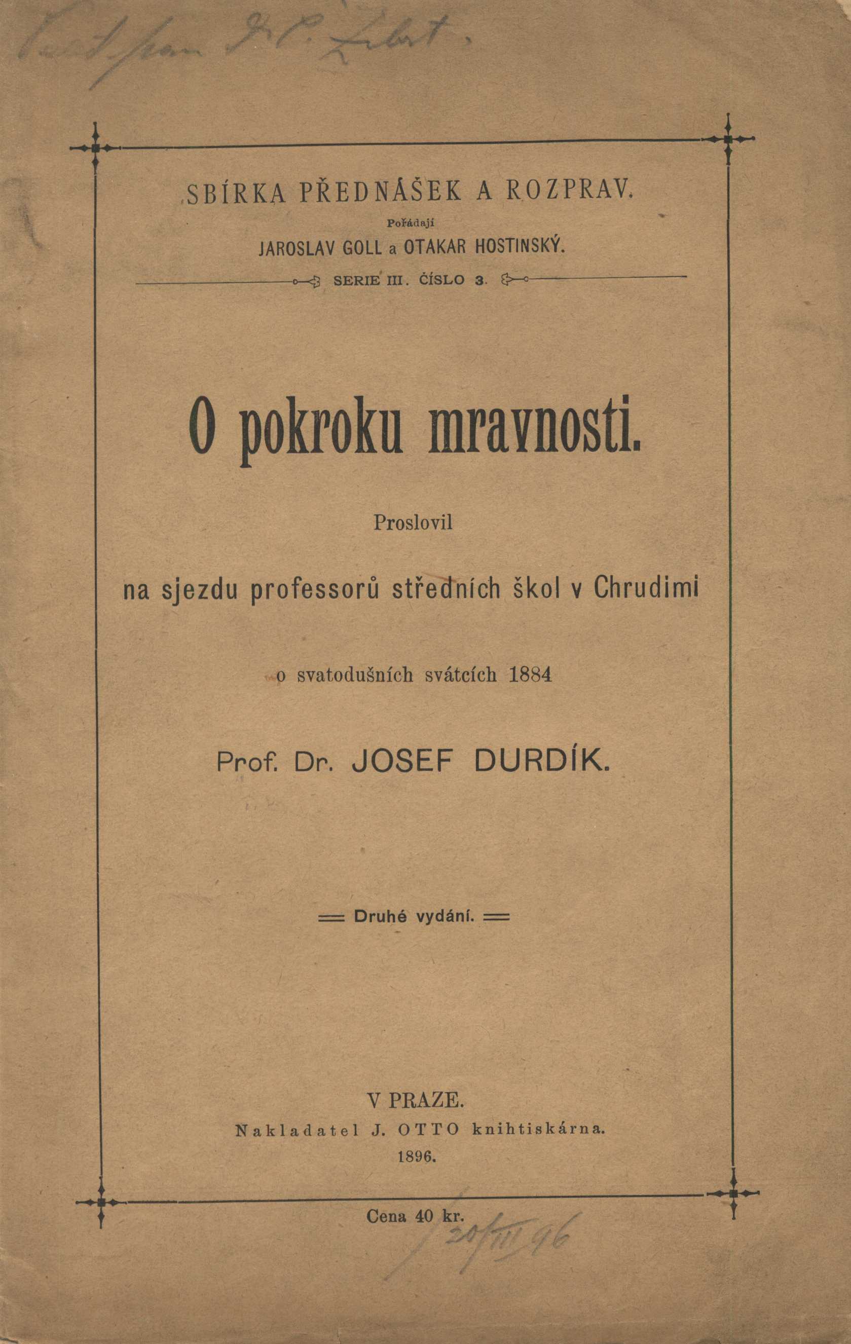 Názvové údaje Dvojí pramen mravnosti a náboženství / Henri Bergson ; přeložil Václav Černý Osobní jméno Bergson, Henri, 1859-1941 (Autor) Další autoři Černý, Václav, 1905-1987 (Překladatel) Fuks, Ladislav, 1923-1994 (Dedikant) Patočka, Jan, 1907-1977 (Autor) Korp. Jan Laichter (nakladatelství) (Nakladatel, vydavatel) Jan Aubrecht (tiskárna) (Tiskař) Nakladatel V Praze : Jan Laichter, 1936 Výrobce V Praze : Tiskem Jana Aubrechta, 1936 Rozsah viii, 313 stran, 1 list nečíslované obrazové přílohy : ilustrace Osobní hesla Bergson, Henri, 1859-1941 - francouzský filosof Klíčová slova náboženství * filozofie náboženství * mravnost * filozofická pojednání * filozofická studie * francouzská literatura * filozofie * francouzská filozofie Počet ex. 4, z toho volných 4 Druh dok. monografie Signatura Holan 01275, Fuks 0152, VMartínek 0298, VHB 2049 Názvové údaje Tvorba a osobnost / Václav Černý Osobní jméno Černý, Václav, 1905-1987 (Autor) Nakladatel Praha : Odeon, 199- Klíčová slova literatura * mravnost * osobnost * tvůrčí osobnost * literární historie * kritika * recenze Druh dok. monografie Názvové údaje Tvorba a osobnost I/ Václav Černý ; Sestavil Jan Šulc ; K vydání připravil Jaroslav Kabíček ; Obálku, vazbu a grafickou úpravu navrhl Jan Jiskra Osobní jméno Černý, Václav, 1905-1987 (Autor) Další autoři Šulc, Jan, 1965- (Sestavovatel, kompilátor) (Editor) Kabíček, Jaroslav, 1931-1996 (Editor) Jiskra, Jan, 1949- (Grafický technik) Nárožník, Vladimír, 1939-2002 (Editor) Korp. Odeon (nakladatelství) (Nakladatel, vydavatel) Aprint a. s. (Tiskař) Nakladatel V Praze : Odeon, 1992 V Praze : Aprint a. s. Rozsah 908 stran ; 21 cm Klíčová slova česká literatura * mravnost * osobnost * tvůrčí osobnost * literární historie * kritika * recenze Počet ex. 2, z toho volných 2 Druh dok. monografie Signatura M 216 e 30/1, R&AHamanovi 1533 Názvové údaje Demokracie a výchova / John Dewey ; přeložil Josef Hrůša Osobní jméno Dewey, John, 1859-1952 (Autor) Další autoři Hrůša, Josef, 1882-1954 (Překladatel) Korp. Jan Laichter (nakladatelství) (Nakladatel, vydavatel) Edvard Leschinger (firma) (Tiskař) Nakladatel V Praze : Jan Laichter, 1932 Výrobce (Tiskem E. Leschingra) Rozsah 503 s. Osobní hesla Dewey, John, 1859-1952 - americký filozof, pedagog, psycholog a reformátor vzdělávání Klíčová slova výchova * mravní výchova * výchova dětí * výchova mládeže * vzdělávání * filozofie výchovy * mravnost * vědění * studie Počet ex. 1, z toho volných 1 Druh dok. monografie Signatura VMartínek 0311 Názvové údaje O pokroku mravnosti / proslovil na sjezdu professorů středních škol v Chrudimi o svatodušních svátcích 1884 Josef Durdík Osobní jméno Durdík, Josef, 1837-1902 (Autor) Další autoři Nakladatelství Jan Otto (Nakladatel, vydavatel) J. Otto (knihtiskárna) (Tiskař) Nakladatel V Praze : Tiskem a nákladem J. Otty, 1896 Rozsah Strany 97-127 ; 23 cm Klíčová slova etika * mravnost * přednášky Počet ex. 1, z toho volných 1 Druh dok. separáty Signatura C12c 5285 Názvové údaje Myšlenky o štěstí a mravnosti / Epikuros ; přeložil, [... uspořádal a doslovem opatřil] Jaroslav Ludvíkovský ; podle návrhu a úpravy J. Tauce ; knižní značku navrhl Jaroslav Bernat] Autor Epikúros, 341-270 př. Kr. (Autor) Další autoři Ludvíkovský, Jaroslav, 1895-1984 (Překladatel) (Editor) (Autor doslovu, tiráže atd.) Bernat, Jaroslav, 1887- (Autor obálky) Korp. Edice Akropolis (Praha) (Nakladatel, vydavatel) Grafia (tiskárna, nakladatelství) (Tiskař) Nakladatel V Praze - Smíchově : Edice Akropolis, [1925?] Výrobce (Grafia) Rozsah 76 s. Osobní hesla Epikúros, 341-270 př. Kr. - řecký filosof, atomista a etik, zakladatel epikurejismu Klíčová slova řečtí filozofové * antická filozofie * řecká filozofie * štěstí * mravnost * filozofické myšlenky Počet ex. 1, z toho volných 1 Druh dok. monografie Signatura VMartínek 0371 Názvové údaje Filosofie. 7., Předpoklady nerelativizované etiky / Jiří Fuchs Osobní jméno Fuchs, Jiří, 1947- (Autor) Nakladatel Praha : Krystal OP, 2007 Rozsah 188 s. Klíčová slova filozofie * novověká filozofie * metafyzická filozofie * pravda * lidská přirozenost * mravnost * boží existence * etika * studie Počet ex. 1, z toho volných 1 Druh dok. monografie Signatura C12b 10194 Názvové údaje Půwodnj Mrawnj Bágky. Swazek 1 / od Samuele Godry Osobní jméno Godra, Samuel, 1806-1873 (Autor) Další autoři Škarnicel, František Xaver, 1769-1841 (Nakladatel, vydavatel) (Tiskař) Nakladatel W Skalicy : Pjsmem Frantisska Xaw. Škarnicla, 1830 Rozsah 152 s. (neúpl) ; 12° Klíčová slova česky psaná literatura * mravnost Počet ex. 1, z toho volných 1 Druh dok. monografie Signatura L XIV g 37 Názvové údaje Immanuel Kant's Grundlegung zur Metaphysik der Sitten / Immanuel Kant ; hrsg. und erläaut. von J. H. v. Kirchmann Osobní jméno Kant, Immanuel, 1724-1804 (Autor) Další autoři Kirchmann, Julius H. von, 1802-1884 (Editor) Nakladatel Berlin : Heimann, 1870 Rozsah 95 s. Klíčová slova německá filozofie * metafyzika * metafyzika duševního života * mravnost * etika * studie Počet ex. 1, z toho volných 1 Druh dok. monografie Signatura HG XII 43 Názvové údaje Immanuela Kanta Základy k metafysice mravů / přeložil, úvodem a poznámkami opatřil Antonín Papírník Osobní jméno Kant, Immanuel, 1724-1804 (Autor) Další autoři Papírník, Antonín, 1875-1957 (Překladatel) (Autor úvodu atd.) Korp. Jan Laichter (nakladatelství) (Nakladatel, vydavatel) Unifikovaný název Grundlegung zur Metaphysik der Sitten česky Nakladatel V Praze : Jan Laichter, 1910 Rozsah xii, 110 s. ; 22 cm Klíčová slova německá filozofie * metafyzika * metafyzika duševního života * mravnost * etika * pojednání Počet ex. 1, z toho volných 1 Druh dok. monografie Signatur