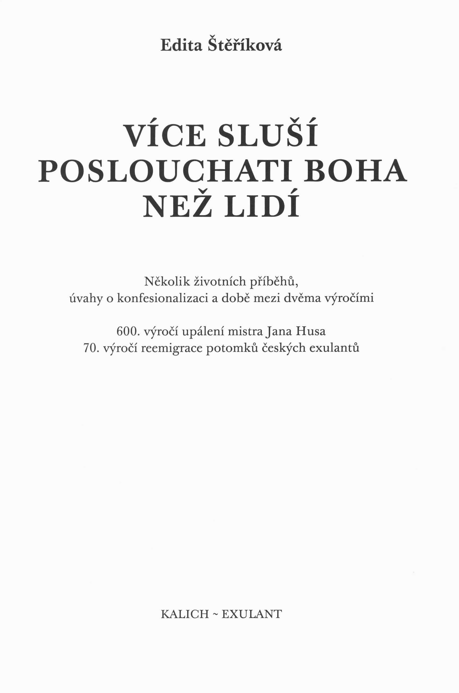 Názvové údaje Jan Amos Comenius - den store emigrant / av Milada Blekastad Osobní jméno Blekastad, Milada, 1917-2003 (Autor) Nakladatel Oslo : Spesialtrykk a.s., [19--] Rozsah Strany 614-620 ; 24 cm Osobní hesla Komenský, Jan Amos, 1592-1670 - pedagog, českobratrský teolog Klíčová slova pedagogové * Česko * stol. 17. * českobratrská církev * česká emigrace * náboženská emigrace * pojednání * separát Počet ex. 1, z toho volných 1 Druh dok. separáty Signatura Patočka 0147 Názvové údaje Exulanti z Prahy a severozápadních Čech v Pirně v letech 1621-1639 / Lenka Bobková Osobní jméno Bobková, Lenka, 1947- (Autor) Další autoři Scriptorium, Spolek pro nekomerční vydávání odborné literatury (Nakladatel, vydavatel) Nakladatel Praha : Scriptorium, 1999 Rozsah lxiv,228 s. : faksim. Klíčová slova pobělohorská doba * čeští exulanti * česká emigrace * náboženská emigrace * Německo * stol. 17. Počet ex. 1, z toho volných 1 Druh dok. monografie Signatura C12c 3979 Názvové údaje Marcello Squarcialupi et l'Unité des Frères Tchèques / Amedeo Molnar Osobní jméno Molnár, Amedeo, 1923-1990 (Autor) Nakladatel Torre Pellice : Socicetà di studi valdesi, 1956 Rozsah Strany 4-20 ; 24 cm Osobní hesla Squarcialupi, Marcello, 1538-asi 1592 - italský lékař, astronom, protestantský exulant v Basileji a Transylvánii Heslo korporace (zkrác. heslo korp.) : Jednota bratrská (církev) Klíčová slova evangelická církev * protestanti * protestantští teologové * Čechy a Morava * čeští bratři * náboženská emigrace * stol. 16. * historické studie * separáty Počet ex. 1, z toho volných 1 Druh dok. separáty Signatura Patočka 0337 Názvové údaje Exulantská útočiště v Lužici a Sasku / Edita Štěříková Osobní jméno Štěříková, Edita, 1937- (Autor) (Knižní grafik) (Autor obálky) Nakladatel Praha : Kalich, 2004 Rozsah 549 s. : il. mapy, faksim. Klíčová slova čeští exulanti * moravští exulanti * historie * náboženská emigrace * pobělohorská doba * Lužice * Sasko * stol. 17.-18. Počet ex. 1, z toho volných 1 Druh dok. monografie Signatura C12c 1892 Názvové údaje Více sluší poslouchati Boha než lidí : několik životních příběhů, úvahy o konfesionalizaci a době mezi dvěma výročími : 600. výročí upálení mistra Jana Husa : 70. výročí reemigrace potomků českých exulantů / Edita Štěříková ; [k vydání připravila Ema Suchá ; obálku navrhl a knihu typograficky zpracoval Pravoslav Nesrovnal] Osobní jméno Štěříková, Edita, 1937- (Autor) Další autoři Suchá, Ema (Editor) Nesrovnal, Pravoslav, 1952- (Autor obálky) (Typograf) Nakladatel Praha : Kalich : Exulant, 2015 Výrobce PROTISK, s. r. o.) Rozsah 362 s. Klíčová slova evangelíci * emigranti * náboženská emigrace * rekatolizace * protireformace * reemigrace * reemigranti * Česko * stol. 17.-19. * autobiografické vzpomínky * biografie Počet ex. 1, z toho volných 1 Druh dok. monografie Signatura C12c 4479 Názvové údaje Zelów : česká exulantská obec v Polsku / Edita Štěříková Osobní jméno Štěříková, Edita, 1937- (Autor) (Knižní grafik) (Autor obálky) Nakladatel Praha : Občanské sdružení Exulant : Kalich, 2010 Rozsah 433 s. : il., mapy, portréty, faksim. ; 25 cm Klíčová slova reformované církve * protestanti * luteránství * náboženský život * náboženská emigrace * Zelov (Polsko) * exil * čeští exulanti * kulturní poměry * náboženské poměry * národnostní menšiny * Polsko * stol. 19.-20. * studie * prameny * vzpomínky Počet ex. 1, z toho volných 1 Adr. el. zdr. obsah Druh dok. monografie Signatura C12c 3189 Názvové údaje Eschatologie, vědění a politika : příspěvek k dějinám myšlení pobělohorského exilu / Vladimír Urbánek Osobní jméno Urbánek, Vladimír, 1963- (Autor) Nakladatel České Budějovice : Jihočeská univerzita, 2008 Rozsah 303 s., [24] s. obr. příl. : il. (některé barev.), portréty, faksim. Osobní hesla Partlicius, Simeon, asi 1590-1640 - lékař * Habervešl z Habernfeldu, Ondřej, asi 1580-1645 - lékař, historik * Felgenhauer, Pavel, asi 1570-1660 - mystik Klíčová slova eschatologie * protestanti * intelektuálové * protestantské učení * věda * víra * společnost * náboženská emigrace * křesťanství * politika * myšlení * stol. 17. * monografie Počet ex. 1, z toho volných 1 Druh dok. monografie Signatura C12b 11605
