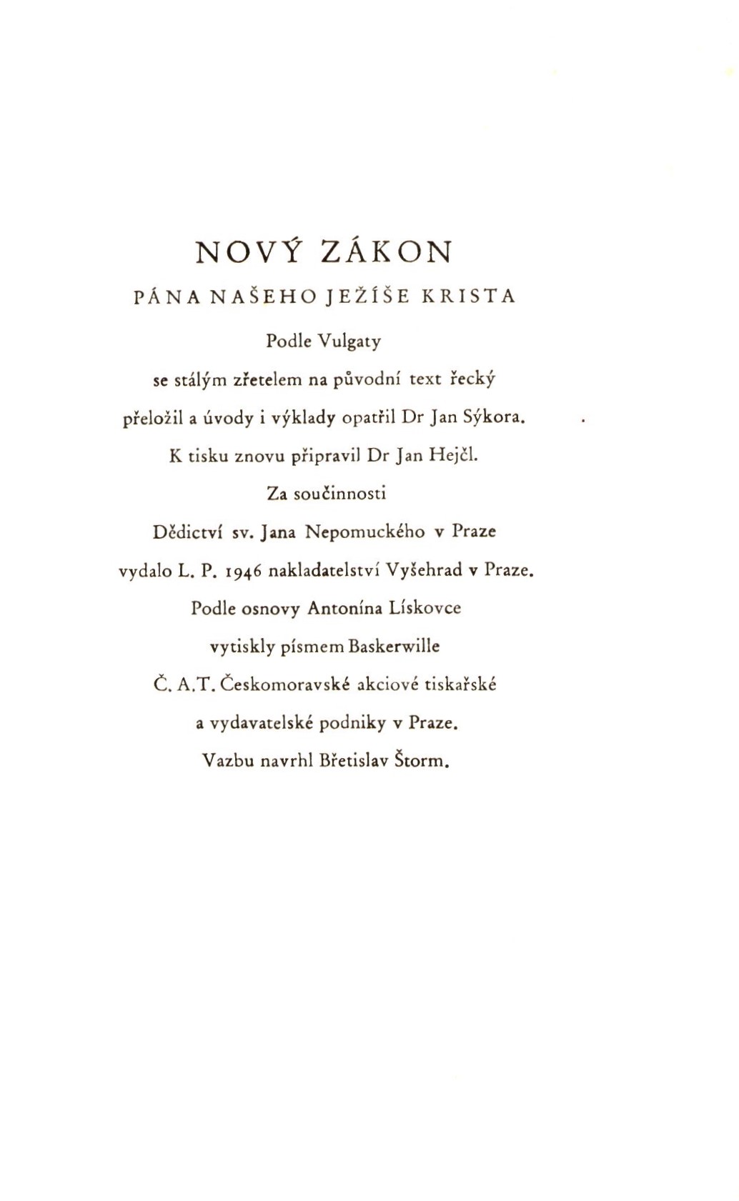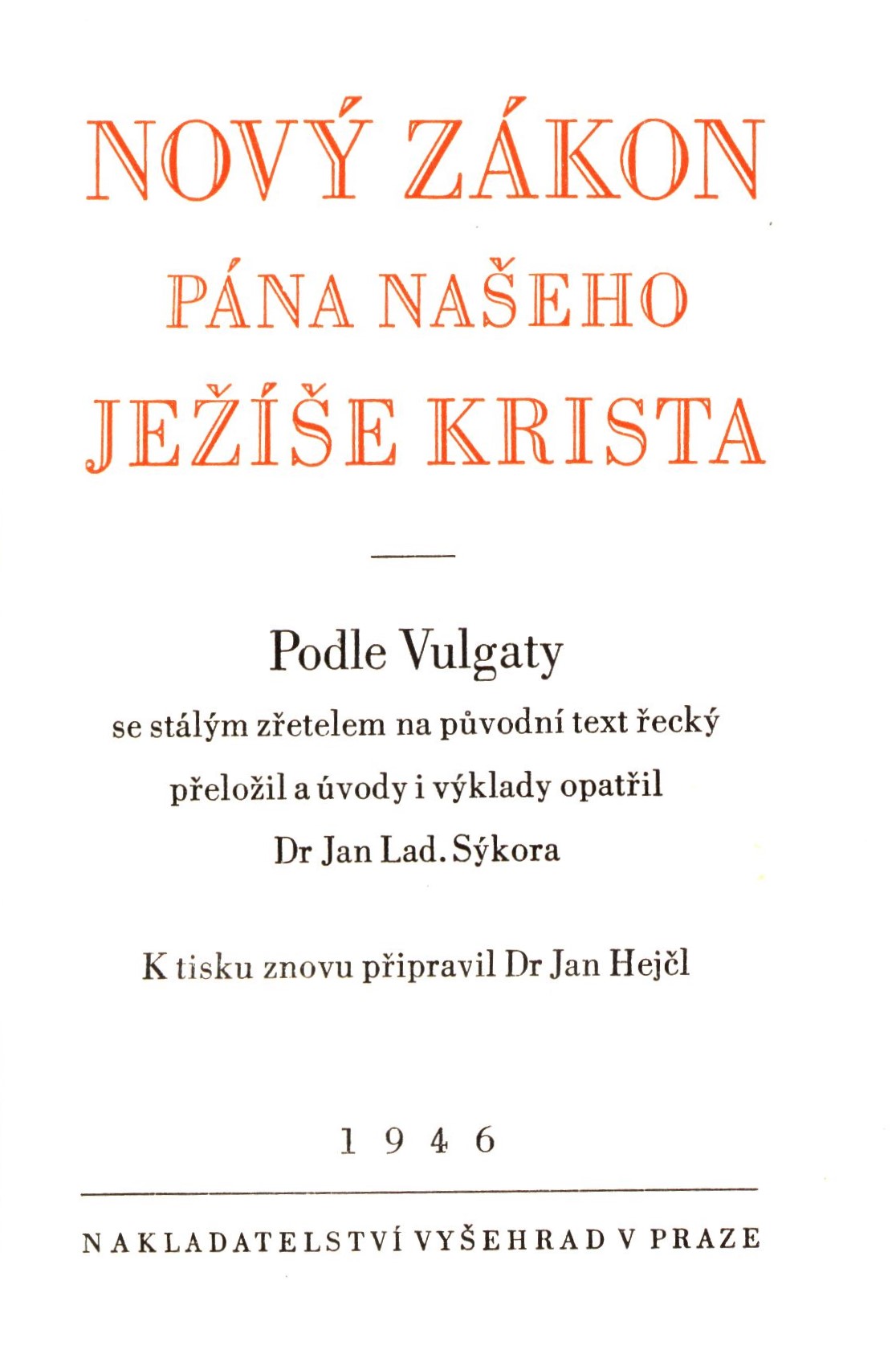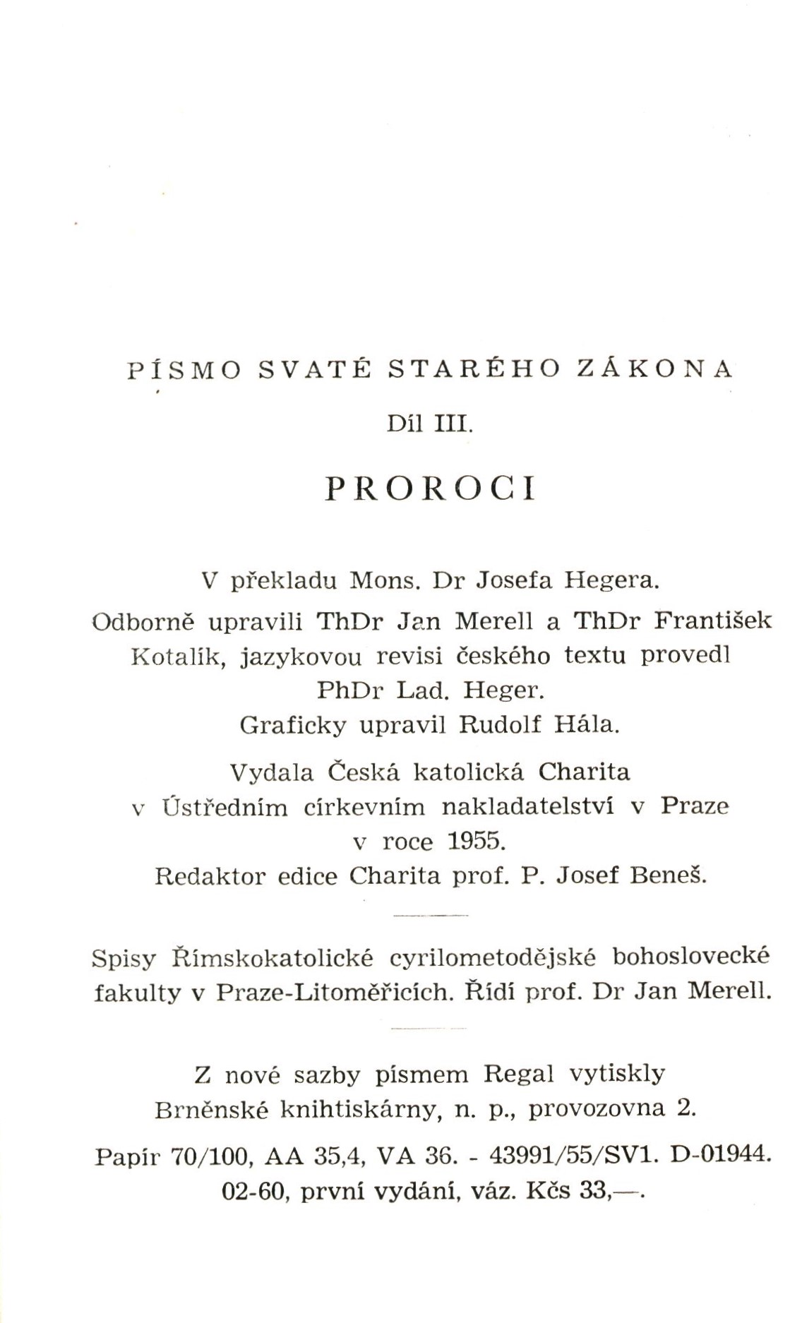 Názvové údaje Bible svatá aneb všecka svatá písma Starého i Nového zákona : Podle posledního vydání kralického z roku 1613 Další autoři Šedý, Rudolf, 1873-1970 (Dedikátor) Korp. Českobratrská církev evangelická. Synodní rada (Nakladatel, vydavatel) Ústřední církevní nakladatelství (Nakladatel, vydavatel) Mír, novinářské závody (tiskárna) (Tiskař) Nakladatel Praha : Ústřední církevní nakladatelství, 1963 Výrobce Mír, n.p., závod 1 Rozsah 220 stran ; 21 cm Klíčová slova Bible kralická * Starý zákon * Nový zákon * Písmo svaté * náboženské texty Počet ex. 1, z toho volných 1 Druh dok. monografie Signatura JVladislav 633 Názvové údaje Biblí kralické díl II. Apokalypsa Další autoři Picka, Jaroslav, 1897-1957 (Nakladatel, vydavatel) Unifikovaný název Bible. Zjevení Janovo. Česky Nakladatel V Praze : Jaroslav Picka, 1937 Rozsah 98 stran Heslo unifik. názvu Bible. Zjevení Janovo * Bible. Česky. Klíčová slova biblické texty * náboženské texty * bibliofilie Počet ex. 1, z toho volných 1 Druh dok. monografie Signatura Knytl 2245 Názvové údaje Das Netz des Glaubens / Peter Cheltschizki ; aus dem Alttschechischen ins Deutsche übertragen von Carl Vogl Osobní jméno Chelčický, Petr, asi 1379-asi 1460 (Autor) Další autoři Vogl, Carl, 1866-1944 (Překladatel) Korp. Einhorn-Verlag (Dachau, Německo) (Nakladatel, vydavatel) Nakladatel Dachau bei München : Einhorn-Verlag, [1923] Výrobce In München : Dr. C. Wolf und Sohn Rozsah 15, 316 stran ; 8° Klíčová slova křesťanská literatura * starší česká literatura * křesťanská morálka * teologie * výklad Písma * náboženské reformy * náboženské texty * překlady do němčiny Počet ex. 2, z toho volných 2 Druh dok. monografie Signatura H Z IV 21, K M IV 39 Názvové údaje Nový zákon Pána našeho Ježíše Krista / podle Vulgaty se stálým zřetelem na původní text řecký přeložil a úvody i výklady opatřil Jan Lad. Sýkora ; k tisku znovu připravil Jan Hejčl ; vazbu navrhl Břetislav Štorm Další autoři Hejčl, Jan, 1868-1935 (Editor) Sýkora, Jan Ladislav, 1852-1928 (Překladatel) (Autor úvodu atd.) Štorm, Břetislav, 1907-1960 (Autor obálky) Korp. Vyšehrad (nakladatelství) (Nakladatel, vydavatel) Dědictví sv. Jana Nepomuckého. 1875-1918 (Praha (Česko)) (Nakladatel, vydavatel) Č.A.T., Českomoravské akciové tiskařské a vydavatelské podniky (Praha) (Tiskař) Nakladatel V Praze : Vyšehrad, 1946 Výrobce Č.A.T., Českomoravské akciové tiskařské a vydavatelské podniky Rozsah 791 stran ; 17 cm Klíčová slova Bible * biblistika * Nový zákon * biblické texty * náboženské texty Počet ex. 1, z toho volných 1 Druh dok. monografie Signatura JVladislav 889 Názvové údaje Písmo svaté Starého zákona. Díl I., Knihy dějepisné / v překladu Josefa Hegera ; odborně upravili Jan Merell a Frantisek Kotalík ; graficky upravil Rudolf Hála Další autoři Heger, Josef, 1885-1952 (Překladatel) Merell, Jan, 1904-1986 (Editor) Kotalík, František, 1917-1993 (Editor) Hála, Rudolf, 1892-1968 (Knižní grafik) Korp. Katolická církev. Česká katolická charita (Nakladatel, vydavatel) Ústřední církevní nakladatelství (Nakladatel, vydavatel) Tisk Brno (tiskárna) (Tiskař) Nakladatel Praha : Ústřední církevní nakladatelství, 1958 Výrobce Brno : Tisk, knižní výroba, n.p. Rozsah 1236 stran ; 18 cm Klíčová slova Bible * biblistika * biblické texty * náboženské texty Počet ex. 1, z toho volných 1 Druh dok. monografie Signatura JVladislav 1175 Názvové údaje Písmo svaté Starého Zákona. Díl II., Knihy básnické-poučné / v překladu Josefa Hegera ; odborně upravili Jan Merell a František Kotalík ; graficky upravil Rudolf Hála Další autoři Heger, Josef, 1885-1952 (Překladatel) Merell, Jan, 1904-1986 (Editor) Kotalík, František, 1917-1993 (Editor) Hála, Rudolf, 1892-1968 Korp. Katolická církev. Česká katolická charita Ústřední církevní nakladatelství (Nakladatel, vydavatel) Brněnské knihtiskárny (Tiskař) Nakladatel Praha : Ústřední církevní nakladatelství, 1956 Výrobce Brno : Brněnské knihtiskárny Rozsah 630 stran ; 18 cm Klíčová slova Bible * biblistika * náboženské texty Počet ex. 1, z toho volných 1 Druh dok. monografie Signatura JVladislav 1176 Názvové údaje Písmo svaté Starého Zákona. Díl III., Proroci / v překladu Josefa Hegera ; odborně upravili Jan Merell a František Kotalík ; graficky upravil Rudolf Hála Další autoři Heger, Josef, 1885-1952 (Překladatel) Merell, Jan, 1904-1986 (Editor) Kotalík, František, 1917-1993 (Editor) Hála, Rudolf, 1892-1968 (Knižní grafik) Korp. Katolická církev. Česká katolická charita (Nakladatel, vydavatel) Ústřední církevní nakladatelství (Nakladatel, vydavatel) Brněnské knihtiskárny (Tiskař) Nakladatel Praha : Ústřední církevní nakladatelství, 1955 Výrobce Brno : Brněnské knihtiskárny Rozsah 680 stran ; 18 cm Klíčová slova Bible * biblistika * proroci * náboženské texty Počet ex. 1, z toho volných 1 Druh dok. monografie Signatura JVladislav 1177 Názvové údaje Postila. I / Petr Chelčický ; k vydání připravil Jaroslav Boubín ; obálku navrhla Michaela Blažejová ; text graficky upravil a vysázel Martin Pokorný, REKOSA Osobní jméno Chelčický, Petr, asi 1379-asi 1460 (Autor) Další autoři Boubín, Jaroslav, 1954- (Editor) Blažejová, Michaela, 1966- (Autor obálky) Pokorný, Martin (Knižní grafik) (Sazeč) Korp. Historický ústav AV ČR (Nakladatel, vydavatel) Nakladatel Praha : Historický ústav, 2022 Rozsah 570 stran ; 25 cm Osobní hesla Chelčický, Petr, asi 1379-asi 1460 - spisovatel, překladatel a radikální český náboženský a sociální myslitel Klíčová slova křesťanská víra * křesťanský život * reforma církve * neděle * křesťanské svátky * církevní rok * liturgické texty * biblická interpretace 