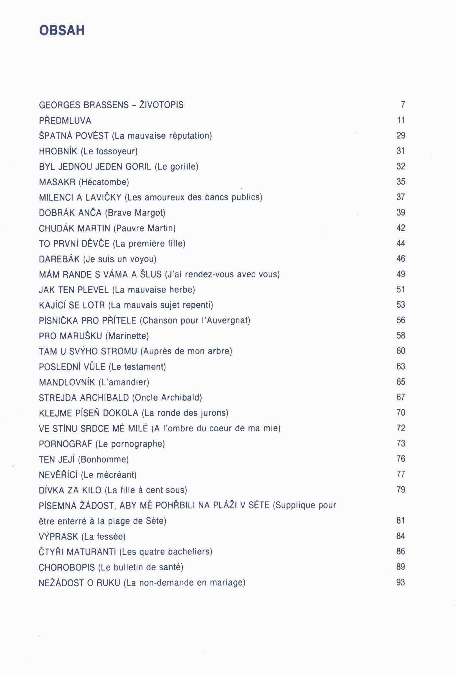 Názvové údaje Špalíček národních písní a říkadel / Mikoláš Aleš ; předmluvu napsal Miroslav Míčko ; 280 Alšových ilustrací nárovních písní a říkadel podle výběru Emanuela Svobody uspořádal Vladimír Novotný Osobní jméno Aleš, Mikoláš, 1852-1913 (Autor) Další autoři Novotný, Vladimír, 1901-1977 (Sestavovatel, kompilátor) Míčko, Miroslav, 1912-1970 (Autor úvodu atd.) Korp. Orbis (firma) (Nakladatel, vydavatel) Nakladatel Praha : Orbis, 1951 Výrobce Orbis, n.p., záv. 1 Rozsah 280 stran : ilustrace Klíčová slova čeští malíři * česká poezie * písňové texty * lidové písně * říkadla * kresby Počet ex. 3, z toho volných 3 Druh dok. monografie Signatura Václavek 516, P 38 a 21, Knytl 2135 Názvové údaje Špalíček národních písní a říkadel / M. Aleš ; péčí Maryny Svobodové-Alšové a Emanuela Svobody, který napsal úvodní slovo ; grafickou úpravu navrhl a řídil František Muzika Osobní jméno Aleš, Mikoláš, 1852-1913 (Ilustrátor) Další autoři Svobodová-Alšová, Maryna, 1882-1973 (Editor) Svoboda, Emanuel, 1883-1967 (Editor) (Autor úvodu atd.) Muzika, František, 1900-1974 (Knižní grafik) Korp. Melantrich (nakladatelství : 1910-1950) (Nakladatel, vydavatel) (Tiskař) Nakladatel V Praze : Melantrich a.s., 1940 Rozsah xx, 306 stran, xi stran obrazových příloh : ilustrace (některé barevné) ; 30 cm Klíčová slova česká poezie * lidové písně * písňové texty * říkadla * náměty ilustrací * ilustrace * knižní ilustrace Počet ex. 2, z toho volných 2 Druh dok. monografie Signatura C12d 2464, Z A 5 a 5 Názvové údaje Listí / Dagmar Voňková ; [k vydání připravil Lubomír Houdek a Jaroslav Riedel ; pořádání, sestavení bloku textů o autorce, diskografie a ediční poznámka Jaroslav Riedel ; ilustrace Dagmar Voňková ; grafická úprava Bedřich Vémola] Osobní jméno Andrtová-Voňková, Dagmar, 1948- (Autor) (Ilustrátor) Další autoři Houdek, Lubomír, 1962- (Editor) Riedel, Jaroslav, 1963- (Editor) (Autor textu doprovodného materiálu) Vémola, Bedřich, 1970- (Knižní grafik) Korp. Galén (nakladatelství) (Nakladatel, vydavatel) Finidr (tiskárna) (Nakladatel, vydavatel) Nakladatel Praha : Galén, 2010 Výrobce Finidr) Rozsah 398 s. : il., portréty Osobní hesla Andrtová-Voňková, Dagmar, 1948- - kytaristka, zpěvačka, hudební skladatelka, textařka Klíčová slova hudební skladatelé * zpěvačky * česká poezie * písňové texty * Česko * stol. 20.-21. * rozhovory * recenze Počet ex. 2, z toho volných 2 Druh dok. monografie Signatura C12b 12824, C12b 15811 Názvové údaje Jsem vlastně modrý / Jiří Bosák ; [ilustroval autor ; grafická úprava, typo a návrh obálky Pavel Maček a Lucia Tokárová ; fotografie autora Jiří Štencek] Osobní jméno Bosák, Jiří, 1982- (Autor) (Ilustrátor) Další autoři Štencek, Jiří, 1970- (Fotograf) Korp. Perplex (nakladatelství) (Nakladatel, vydavatel) Centa (tiskárna) (Tiskař) Nakladatel V Opavě : Perplex, 2010 Výrobce Centa, spol. s r. o.) Rozsah 57 s. : il., 1 portrét ; 19 x 21 cm + 1 CD Osobní hesla Bosák, Jiří, 1982- - rockový zpěvák a hudebník, textař, výtvarník a animátor Klíčová slova česká literatura * česká poezie * básně * písňové texty * ilustrované knihy * hudební texty * výbor textů Počet ex. 1, z toho volných 1 Druh dok. monografie Signatura C12b 13785 Názvové údaje Klejme píseň dokola : výběr z textů / Georges Brassens ; [přeložil, životopisem a předmluvou doplnil] Jiří Dědeček ; [obálku, grafickou úpravu a ilustrace navrhl J.E. Jiránek] Osobní jméno Brassens, Georges, 1921-1981 (Autor) Další autoři Dědeček, Jiří, 1953- (Překladatel) (Autor úvodu atd.) Jiránek, Jaroslav Eugen, 1925-1992 (Autor obálky) (Knižní grafik) (Ilustrátor) Nakladatel Praha : Panton, 1988 Výrobce (SNV) Rozsah 165 s. : il., portréty, noty Osobní hesla Brassens, Georges, 1921-1981 - francouzský zpěvák, písničkář a básník Klíčová slova francouzská poezie * překlad * francouzští básníci * francouzští hudebníci * francouzští skladatelé * francouzští písničkáři * francouzští zpěváci * život a dílo * hudební dílo * písně * šansony * písňová tvorba * písňové texty * výběr z textů * stol. 20. Počet ex. 2, z toho volných 2 Druh dok. monografie Signatura R&AHamanovi 0027, R&AHamanovi 0442 Názvové údaje Na shledanou zítra : Písňové texty, články a výstřižky / Jan Burian ; Redaktor Ivan Hartman ; Graf. úprava Ivan Prokop ; Autoři fotogr. Hana Rysová, Ivan Prokop (obálka), Jan Čep ...[et al.] Osobní jméno Burian, Jan, 1952- (Autor) Další autoři Hartman, Ivan, 1962- (Editor) Prokop, Ivan, 1954- (Grafický technik) Rysová, Hana, 1945- (Fotograf) Prokop, Ivan, 1954- (Fotograf) Čep, Jan (Fotograf) Nakladatel Praha : Folk & country, 1995 Rozsah 249 s. : fot. ; 21 cm Osobní hesla Burian, Jan, 1952- - básník, textař, kritik, dramatik, prozaik Klíčová slova česká literatura * písňové texty * články * výstřižky * rozhovory * Burian J. * r. 1969-1994 Počet ex. 1, z toho volných 1 Druh dok. monografie Signatura C12b 233