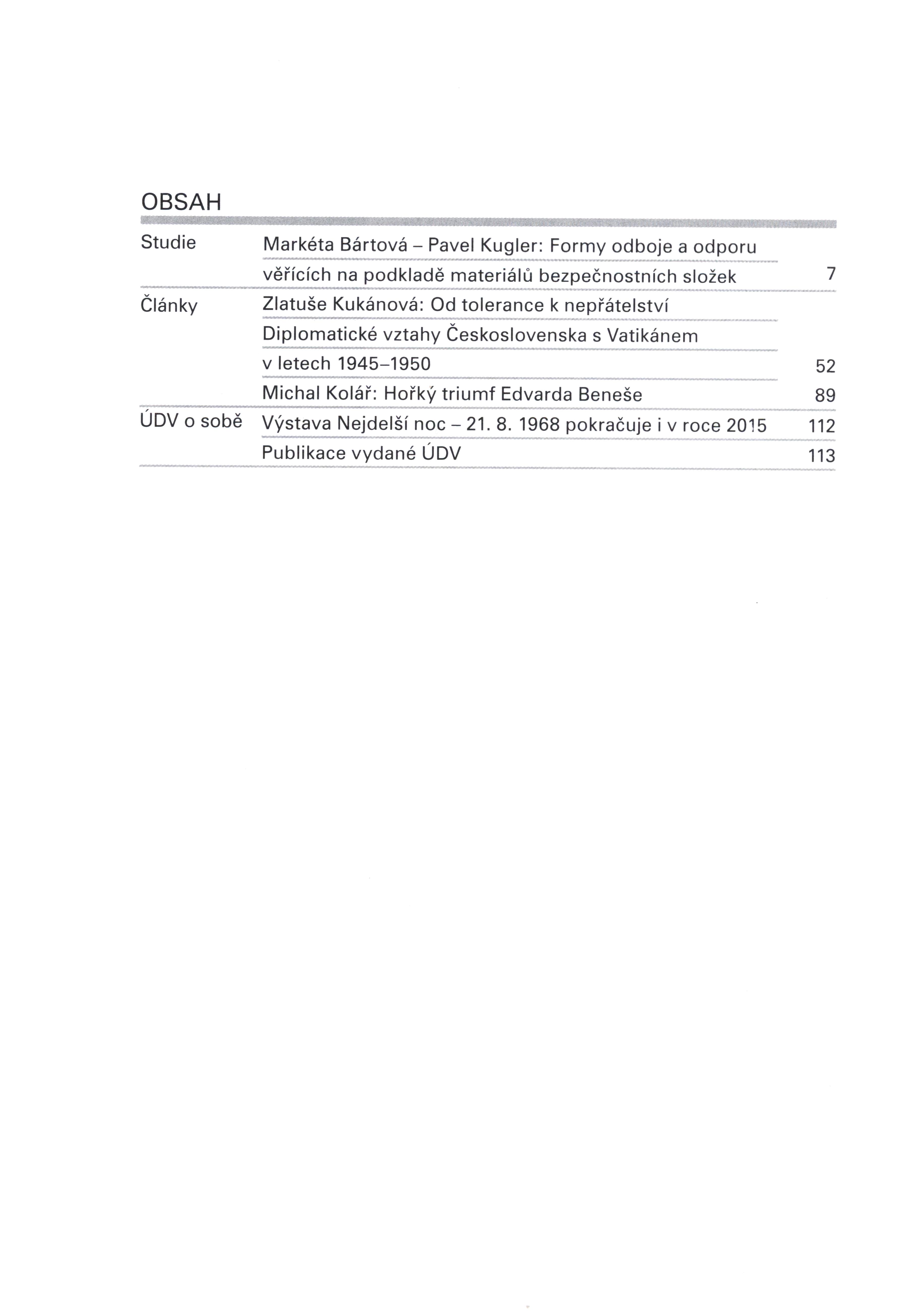Názvové údaje Formy odboje a odporu věřících na podkladě materiálů bezpečnostních složek. Od tolerance k nepřátelství - Diplomatické vztahy Československa s Vatikánem v letech 1945-1950. Hořký triumf Edvarda Beneše / [Markéta Bártová ... [et al.] ; editor Jan Táborský ; grafická úprava a zlom Hana Rozmanitá] Osobní jméno Bártová, Markéta, 1980- (Autor) Další autoři Kukánová, Zlatuše, 1958-. Od tolerance k nepřátelství - Diplomatické vztahy Československa s Vatikánem v letech 1945-1950 Kolář, Michal, 1966-. Hořký triumf Edvarda Beneše Kugler, Pavel (Autor) Kukánová, Zlatuše, 1958- (Autor) Kolář, Michal, 1966- (Autor) Táborský, Jan, 1975 únor 11.- (Editor) Rozmanitá, Hana (Knižní grafik) (Sazeč) Nakladatel Praha : Úřad dokumentace a vyšetřování zločinů komunismu, 2014 Rozsah 117 s. : il. (některé barev.), portréty, faksim. Osobní hesla Beneš, Edvard, 1884-1948 - sociolog, politik, prezident Heslo korporace (zkrác. heslo korp.) : Československo. Státní bezpečnost Klíčová slova protikomunistický odboj * vláda * politika * náboženská perzekuce * diplomatické vztahy * Vatikán * Československo * Beneš E. * r. 1945-1948 * r. 1948-1989 * sborníky Počet ex. 1, z toho volných 1 Druh dok. monografie Signatura C12b 15877 Názvové údaje K české literatuře 1945-1948 : [sborník materiálů z vědecké konference 34. Bezručovy Opavy 17.-18.9.1991] / [k tisku připravila a lektorovala Sylva Bartůšková ; s dodatkem Jiřího Trávníčka "Poezie období 1945-1948"] Záhlaví-akce Bezručova Opava (34._: 1991 : Opava, Česko) Další autoři Bartůšková, Sylva, 1937-2024 (Editor) Trávníček, Jiří, 1960- (Autor úvodu atd.) Nakladatel Brno : Guide, 1992 Výrobce (Asko) Rozsah 158 s. Klíčová slova česká literatura * sborník * sborníky z konferencí * literární náměty * literární historie * příspěvky * r. 1945-1948 * Bezručova Opava * Opava * r. 1991 Počet ex. 2, z toho volných 2 Druh dok. monografie Signatura M 215 c 25, R&AHamanovi 0020 Názvové údaje Operace Velký podvod : cesta československých komunistů k moci v letech 1945-1948 / Toman Brod ; [úvod] Jaromír Hořec. Část 1 Osobní jméno Brod, Toman, 1929- (Autor) Další autoři Hořec, Jaromír, 1921-2009 (Autor úvodu atd.) Nakladatel Praha : Magnet-Press, 1990 Rozsah 127 s. : il. Klíčová slova česká historie * komunistická strana Československa * SSSR * politické vztahy * Beneš E. * r. 1945-1948 Počet ex. 1, z toho volných 1 Druh dok. monografie Signatura M 215 f 16 Názvové údaje Svobodná nesvoboda : některé příklady postupující komunizace a sovětizace mediální krajiny v Československu a snah komunistů umlčet český nekomunistický a církevní tisk v letech 1945-1948 / Vladimír Bystrov Osobní jméno Bystrov, Vladimír, 1935-2010 (Autor) Nakladatel Praha : Vyšší odborná škola publicistiky, 2006 Rozsah 131 s. : faksim. Klíčová slova česká publicistika * nesocialistická publicistika * tisk * Československo * cenzura * komunistický režim * sovětský vliv * politické represe * r. 1945-1948 * studie * archivní dokumenty Počet ex. 1, z toho volných 1 Druh dok. monografie Signatura C12b 9874 Názvové údaje Československo na rozhraní dvou epoch nesvobody : sborník z konference k 60. výročí konce druhé světové války / uspořádali Zdeňka Kokošková, Jiří Kocian, Stanislav Kokoška Záhlaví-akce Československo na rozhraní dvou epoch nesvobody (2005 : Praha, Česko) Další autoři Kokošková, Zdeňka, 1963- (Editor) Kocian, Jiří, 1956- (Editor) Kokoška, Stanislav, 1959- (Editor) Nakladatel Praha : Národní archiv : Ústav pro soudobé dějiny AV ČR, 2005 Rozsah 419 s. : il. ; 26 cm Klíčová slova národnostní poměry * národnostní vztahy * zahraniční politika * vláda * společnost * domácí politika * Československo * r. 1945-1948 * sborníky z konferencí Počet ex. 1, z toho volných 1 Druh dok. monografie Signatura C12c 2228 Názvové údaje Dosidlování Sokolovska 1945-1948 / Pavel Dohnal Osobní jméno Dohnal, Pavel (Autor) Nakladatel Sokolov : Fornica, 2007 Rozsah 63 s. : il., plány, faksim., tb. Klíčová slova česká literatura * dějiny * regionální dějiny * odsuny Němců * osídlování pohraničí * Sokolovsko * r. 1945-1948 * studie Počet ex. 1, z toho volných 1 Adr. el. zdr. obsah Druh dok. monografie Signatura C12b 13734 Názvové údaje Na ztracené vartě západu : Antologie české nesocialistické publicistiky z let 1945-1948 / Milan Drápala ; Knihu edičně připr., úvod. studii a životopis. medailony napsal a bibliogr. přehledy ses. Milan Drápala ; Životopisný medailon L. Jehličky napsal Andrej Stankovič, B. Chudoby Zdeněk Beneš a Milan Drápala, B. Brouka Vladimír Borecký ; Slovensky publ. články přel. Emil Charous ; Přebal, vazbu a graf. úpr. navrhl Aleš Lederer Osobní jméno Drápala, Milan, 1964- (Autor) Další autoři Drápala, Milan, 1964- (Editor) Drápala, Milan, 1964- (Autor úvodu atd.) Stankovič, Andrej, 1940-2001 (Autor úvodu atd.) Beneš, Zdeněk, 1952- (Autor úvodu atd.) Drápala, Milan, 1964- (Autor úvodu atd.) Borecký, Vladimír, 1941-2009 (Autor úvodu atd.) Charous, Emil, 1928-2017 (Překladatel) Lederer, Aleš, 1953- (Grafický technik) Nakladatel Praha : Prostor, 2000 Rozsah 673 s. : fot Klíčová slova česká literatura * nesocialistická publicistika * články * antologie * r. 1945-1948 * Brouk B. * Forman L. * Chudoba B. * Jehlička L. * Kolár J. * Koželuhová H. * Skácel M. * Tigrid P. Počet ex. 1, z toho volných 1 Druh dok. monografie Signatura C12c 1302 Názvové údaje Československá armáda v národní a demokratické revoluci 1945-1948 / Pavel Drška ; [ze slovenštiny přeložila Jarmila Hrdličková ; obálku s použitím kresby Jiřího Mikuly a vazbu navrhl Milan Hegar] Osobní jméno Drška, Pavel, 1933-2010 (Autor) Další autoři Mikula, Ji