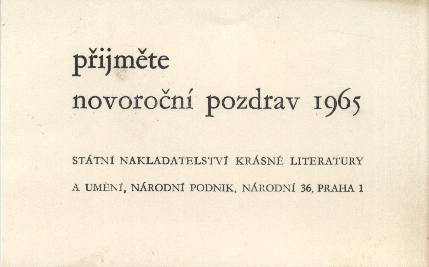 Názvové údaje Třicátý rok / Ingeborg Bachmannová ; z německého originálu Das dreissigste Jahr ... přeložil a doslov napsal Josef Čermák Osobní jméno Bachmann, Ingeborg, 1926-1973 (Autor) Další autoři Čermák, Josef, 1928-2020 (Překladatel) (Autor doslovu, tiráže atd.) Sivko, Václav, 1923-1974 (Autor obálky) (Výtvarník vazby) Wild, Jan (Knižní grafik) Korp. Mladá fronta (nakladatelství) (Nakladatel, vydavatel) Mír, novinářské závody (tiskárna) (Tiskař) Nakladatel Praha : Mladá fronta, 1965 Výrobce Praha : Mír, n. p. Rozsah 195 stran ; 18 cm Osobní hesla Bachmann, Ingeborg, 1926-1973 - rakouská básnířka, esejistka, prozaička Klíčová slova rakouská literatura * próza * rakouská próza * povídky * Bachmann I. * český překlad * Čermák J. * r. 1965 Počet ex. 3, z toho volných 3 Druh dok. monografie Signatura EJulis 0147, Eisner 1173, R&AHamanovi 1372 Názvové údaje Arcane 17 : enté d'Ajours / par André Breton ; suivi de André Breton ou la transparence par Michel Beaujour Osobní jméno Breton, André, 1896-1966 (Autor) Další autoři Beaujour, Michel (Autor doslovu, tiráže atd.) Pauvert, Jean-Jacques, 1926-2014 (Nakladatel, vydavatel) Korp. Union genérale d'éditions (Nakladatel, vydavatel) Bussière (firma) (Tiskař) Nakladatel Paris : Union générale d'éditions, ©Éditions Jean-Jacques Pauvert, 1965 Výrobce Saint-Amand (Cher) : Imprimerie Bussière Rozsah 183 stran ; 18 cm Klíčová slova francouzská literatura * studie * Breton A. * okultismus * magie * tarot * r. 1965 Počet ex. 2, z toho volných 2 Druh dok. monografie Signatura MUK 782, R&AHamanovi 1461 Názvové údaje Exil a království / Albert Camus ; přeložil Josef Pospíšil Osobní jméno Camus, Albert, 1913-1960 (Autor) Další autoři Pospíšil, Josef, 1912-1987 (Překladatel) Balcar, Jiří, 1929-1968 (Ilustrátor) (Autor obálky) (Výtvarník vazby) (Knižní grafik) Korp. Státní nakladatelství krásné literatury a umění (Nakladatel, vydavatel) Polygrafia (tiskárna, Praha) (Tiskař) Nakladatel Praha : Státní nakladatelství krásné literatury a umění, 1965 Výrobce Praha : Polygrafia 3, n. p. Rozsah 222 stran, 4 nečíslované listy obrazové přílohy : ilustrace ; 15 cm Klíčová slova francouzská literatura * próza * Camus A. * povídky * český překlad * novely * r. 1965 Počet ex. 2, z toho volných 2 Druh dok. monografie Signatura EJulis 0569, VZinková 0646 Názvové údaje Novoročenky do Listopadu / Jan Čáka ; [ilustroval a graficky upravil Jan Čáka] Osobní jméno Čáka, Jan, 1929-2018 (Autor) Nakladatel V Příbrami : Knihovna Jana Drdy, 2007 Rozsah 51 s. : il. ; 20 cm Osobní hesla Čáka, Jan, 1929-2018 - malíř, ilustrátor, fotograf Klíčová slova výtvarní umělci * Česko * stol. 20.-21. * novoročenky * r. 1965-1990 * autobiografické vzpomínky Počet ex. 1, z toho volných 1 Druh dok. monografie Signatura C12b 10547 Názvové údaje Několik básní od Johna Donna / přeložil E.A. Saudek Osobní jméno Donne, John, 1572-1631 (Autor) Další autoři Saudek, Erik Adolf, 1904-1963 (Překladatel) Skoumal, Aloys, 1904-1988 (Autor doslovu, tiráže atd.) Hegar, Milan, 1921-1987 (Autor obálky) (Knižní grafik) Korp. Státní nakladatelství krásné literatury a umění (Nakladatel, vydavatel) Polygrafia (tiskárna, Praha) (Tiskař) Nakladatel V Praze : Státní nakladatelství krásné literatury a umění, 1965 Výrobce Praha : Polygrafia 3, n. p. Rozsah 27 stran ; 15 cm + 1 kartička Osobní hesla Donne, John, 1572-1631 - anglický básník a kazatel Klíčová slova anglická literatura * Donne J. * poezie * anglická poezie * milostné básně * překlad * Saudek E. A. * novoroční tisk * SNKLU * r. 1965 Počet ex. 1, z toho volných 1 Druh dok. monografie Signatura VZinková 0009 Názvové údaje Hrátky s čertem : komedie o deseti obrazech / Jan Drda ; [studií doprovodil A. M. Píša ; uspořádala Marta Staňková ; obálku, vazbu a úpravu navrhl a ilustracemi vyzdobil Zdenek Seydl] Osobní jméno Drda, Jan, 1915-1970 (Autor) Další autoři Píša, Antonín Matěj, 1902-1966 (Autor komentáře) Staňková, Marta, 1927-2012 (Sestavovatel, kompilátor) Seydl, Zdenek, 1916-1978 (Grafický technik) (Ilustrátor) Nakladatel Praha : Československý spisovatel, 1965 s., [24] s. fot. příl. Rozsah il. Osobní hesla Drda, Jan, 1915-1970 - prozaik, publicista, dramatik, filmový scénárista Klíčová slova česká literatura * divadelní hry * komedie * pohádkové příběhy * Drda J. * r. 1965 Počet ex. 3, z toho volných 3 Druh dok. monografie Signatura AČS 05167, AČS 05167a, MUK 1691 Názvové údaje Problémy divadla / Friedrich Dürrenmatt ; Z nem. orig. prel. Richard M. Škridla ; Štúdiu napísal Július Pašteka ; Upr., obál. a väzbu navrhol Milan Hegar ; Fotogr. Jozef Vavro a Miroslav Peterka Osobní jméno Dürrenmatt, Friedrich, 1921-1990 (Autor) Další autoři Škridla, Richard M. (Překladatel) Pašteka, Július (Autor úvodu atd.) Hegar, Milan, 1921-1987 (Grafický technik) Vavro, Jozef (Fotograf) Peterka, Miroslav, 1924-1990 (Fotograf) Nakladatel Bratislava : Slovenské vydavatel'stvo krásnej literatúry, 1965 Rozsah 87 s., fot Klíčová slova švýcarská literatura * německy psaná literatura * pojednání * umění * divadlo * r. 1965 Počet ex. 1, z toho volných 1 Druh dok. monografie Signatura MUK 320 Názvové údaje Dějiny estetiky / Katharine Everett Gilbertová, Helmut Kuhn ; z anglického originálu přeložili Pavel a Heda Kovályovi ; úvodní poznámku napsal Miloš Jůzl ; doslov "Dějiny estetiky" na české půdě Oleg Sus ; bibliografie a rejstříky Miloš Jůzl ; obálku a vazbu navrhl Jaroslav Šváb ; grafická úprava Jiří Balcar Osobní jméno Gilbert, Katharine Everett, 1886-1952 (Autor) Další autoři Kuhn, Helmut, 1899-1991 (Autor) Kovály, Pavel, 1928- (Překladatel) Kovályová, Heda, 1919-2010 (Překladatel) Sus, Oleg, 1924-1982 (Autor doslo