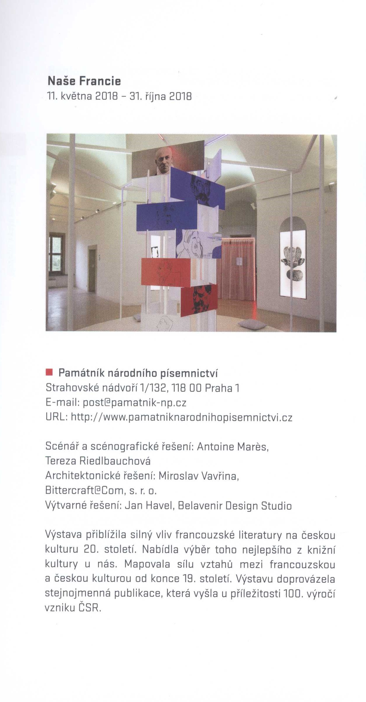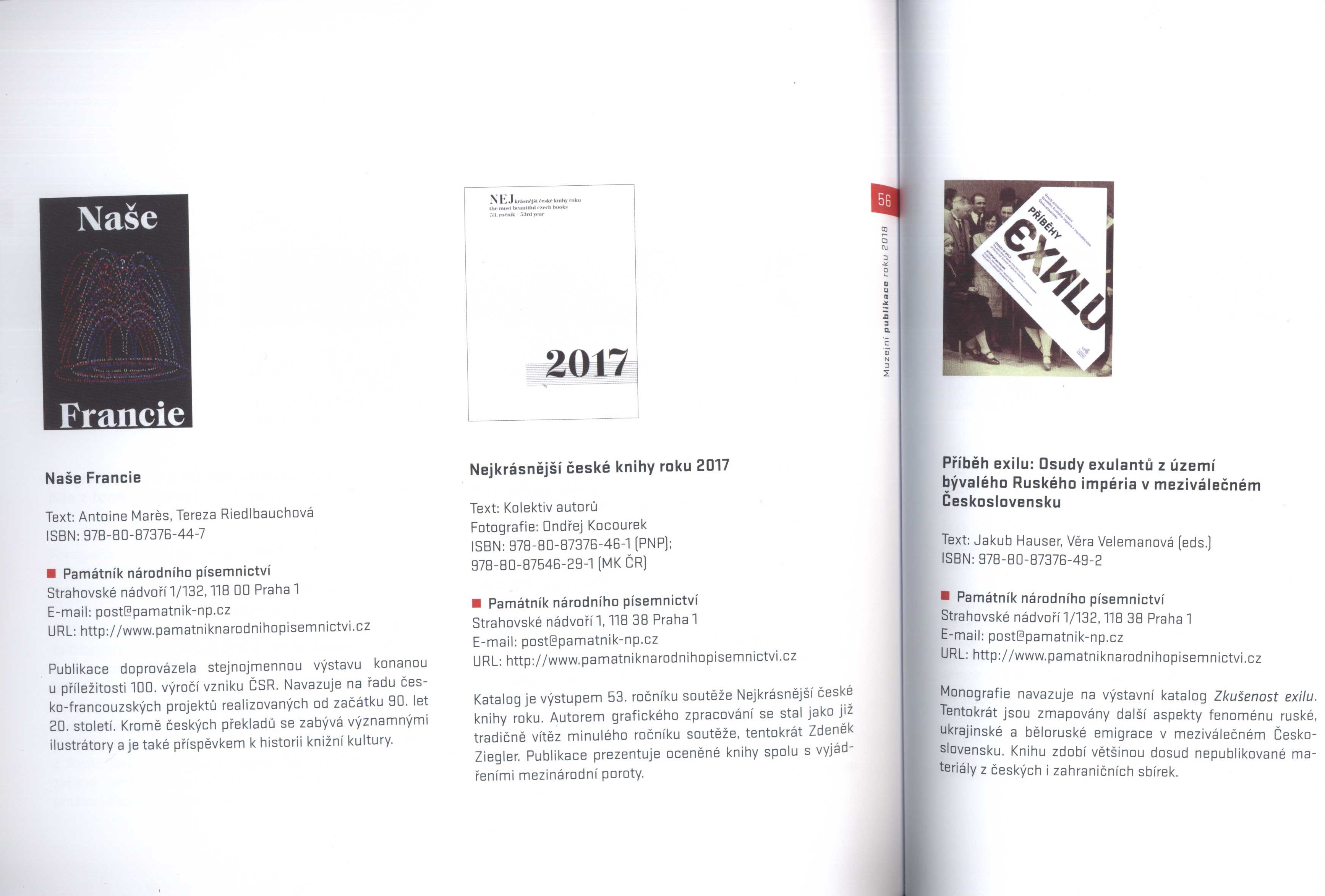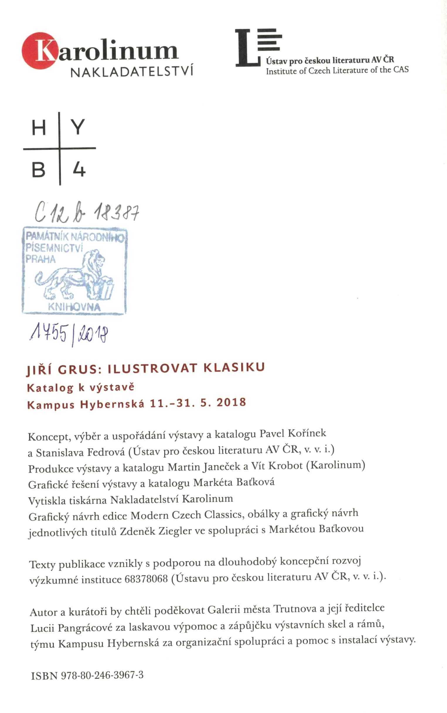Názvové údaje Právo první noci : (výbor z milostné poezie) / Jana Bednářová ; ilustrace: Martina Jirčíková ; grafická úprava: Denisa Moravcová Osobní jméno Bednářová, Jana, 1957- (Autor) (Nakladatel, vydavatel) Další autoři Jirčíková, Martina, 1976- Moravcová, Denisa (Knižní grafik) Korp. Vysokoškolský podnik Liberec, spol. s r.o. (tiskárna) (Tiskař) Nakladatel V Liberci : Nakladatelství Jana Bednářová, 2018 Výrobce Liberec : Vysokoškolský podnik Liberec, spol. s r.o. Rozsah 60 nečíslovaných stran ; 21 cm Klíčová slova česká literatura * poezie * výbor básní * milostné básně * r. 2018 Počet ex. 1, z toho volných 1 Druh dok. monografie Signatura C12b 18474 Názvové údaje Vlastivěda Sobotecka a okolí : regionální učebnice / Olga Bičišťová Osobní jméno Bičišťová, Olga, 1951- (Autor) Další autoři Bílek, Karol, 1939- (Redaktor, výkonný redaktor) (Fotograf) (Korektor) (Jiná role) Korp. Město Sobotka (Nakladatel, vydavatel) Rejman Fine Arts, s.r.o. (tiskárna) (Tiskař) (Knižní grafik) Nakladatel Sobotka : město Sobotka, 2018 Výrobce [Hořice] : Rejman Fine Arts, s.r.o. Rozsah 199 stran : ilustrace (převážně barevné), mapy, portréty, noty, faksimile ; 30 cm Předmětová hesla historical topography - Czechia Geografické heslo Sobotka (Česko : oblast) - vlastivěda * Sobotka Region (Czechia) - history and geography Klíčová slova česká literatura * regionální literatura * učebnice * základní školy * vlastivěda * historický místopis * Sobotka, město * královéhradecký kraj * Česko * r. 2018 Počet ex. 1, z toho volných 1 Druh dok. monografie Signatura C12d 2482 Názvové údaje Prof. Josef Novák, botanik z Malechovic / Karol Bílek Osobní jméno Bílek, Karol, 1939- (Autor) (Autor podpisu) (Dedikátor) Další autoři Pospíšilová, Alena, 1953- (Autor) Brož, Josef, 1921-2020 (Autor) Neudorflová-Lachmanová, Marie, 1940- (Překladatel) Leber, Richard, 1975- (Knižní grafik) Wagnerová, Simona (Autor obálky) Pírková, Jitka (Ilustrátor) Korp. MS Polygrafie (tiskárna) (Tiskař) (Tiskař obrazu) Nakladatel Libošovice : obec Libošovice, 2018 Výrobce Bakov nad Jizerou : MS Polygrafie s.r.o. Rozsah 63 stran : ilustrace, fotografie, portréty, faksimile ; 21 cm Osobní hesla Novák, Josef, 1846-1917 - učitel, botanik, publikace z oboru, překlad z němčiny * Bílek, Karol, 1939- - historik a archivář * Pospíšilová, Alena, 1953- - knihovnice, kulturní pracovnice, kronikářka, regionální publicistka Klíčová slova česká literatura * biografická studie * Bílek K. * monografie * botanici * Novák J. * stol. 19.-20. * obrazové publikace * fotografické přílohy * přílohy * rozhlasová hra * r. 2018 Počet ex. 1, z toho volných 1 Druh dok. monografie Signatura C12b 18152 Názvové údaje Sborník vítězných prací I. ročníku literární soutěže pro děti a mládež : Cena Ivony Březinové na téma: Dávné příběhy naší rodiny, aneb, Osmičkové roky trochu jinak... Záhlaví-akce Cena Ivony Březinové (soutěž) (Autor) Další autoři Havelka, Vladimír, jun. (Editor) Korp. Nadační fond Gabrielis (Organizátor akce) (Nakladatel, vydavatel) Žaket (vydavatelství) (Tiskař) Nakladatel [Praha] : pro Nadační fond Gabrielis vydalo nakladatelství Rofot, 2019 Výrobce Tiskárna Žaket Rozsah 65 stran ; 22 cm Klíčová slova literární soutěže * děti a mládež * literární práce * Česko * r. 2018 * česká próza * příběhy * sborníky Počet ex. 2, z toho volných 2 Druh dok. monografie Signatura C12b 19201, C12b 19201a Názvové údaje Pravda vítězí(vá)! : obrazy nejen z českých dějin: Národní galerie Praha, Veletržní palác, 24. 10. - 2018 - 3. 2. 2019 / Markéta Dlábková ; grafická úprava: Filip Heyduk, Martin Strnad (Graphic design studio Heyduk, Musil & Strnad, s.r.o.) Osobní jméno Dlábková, Markéta, 1978- (Autor) (Kurátor výstavy) Další autoři Heyduk, Filip, 1967- (Knižní grafik) Strnad, Martin, 1976- Korp. Národní galerie (Praha, Česko) (Nakladatel, vydavatel) Tiskárna Helbich (Tiskař) Veletržní palác (Praha, Česko) (Organizátor akce) Nakladatel Praha : Národní galerie, 2018 Výrobce [Brno] : Tiskárna Helbich Rozsah 95 stran : ilustrace, faksimile ; 27 cm Klíčová slova česká literatura * katalog výstavy * české dějiny * historické události * významné události * média * prezentace * stol. 17.-20. * Národní galerie * Praha * Česko * r. 2018-2019 Počet ex. 2, z toho volných 1 Druh dok. monografie Signatura C12c 5318, C12c 5318a Názvové údaje Rukopisy královédvorský a zelenohorský : Dalibor Dobiáš Osobní jméno Dobiáš, Dalibor, 1977- (Autor) Další autoři Krč, Jakub, 1973- (Jiná role) Korp. Ústav pro českou literaturu (Akademie věd ČR) (Jiná role) Akademie věd České republiky. Středisko společných činností (Nakladatel, vydavatel) Serifa (tiskárna) (Tiskař) (Knižní grafik) (Sazeč) Nakladatel Praha : Středisko společných činností AVČR, s. v. v. i., 2018 Výrobce [Praha] : SERIFA, s.r.o. Rozsah 19 stran : ilustrace ; 21 cm Klíčová slova rukopis zelenohorský rukopis královédvorský literatura česká falzifikáty národní obrození * česká literatura * pojednání * rukopisy * Rukopis Královédvorský * Rukopis Zelenohorský * mystifikace * padělky * význam * Česko * stol. 19. * historické vyrovnání * současnost * r. 2018 Počet ex. 1, z toho volných 1 Druh dok. monografie Signatura LITb 00302 Názvové údaje Gloria musaealis 2018 : XVII. ročník : Národní soutěže muzeí : výroční zpráva / texty: soutěžící muzea a galerie, Irena Chovančíková ; překlad: soutěžící muzea a galerie, Monika Benčová ; redakce: Monika Benčová, Anna Komárková ; grafika: Jana Dolanská Záhlaví-akce Gloria musaealis (17. : 2018 : Česko) Další autoři Chovančíková, Irena, 1963- (Autor úvodu atd.) Benčová, Monika (P