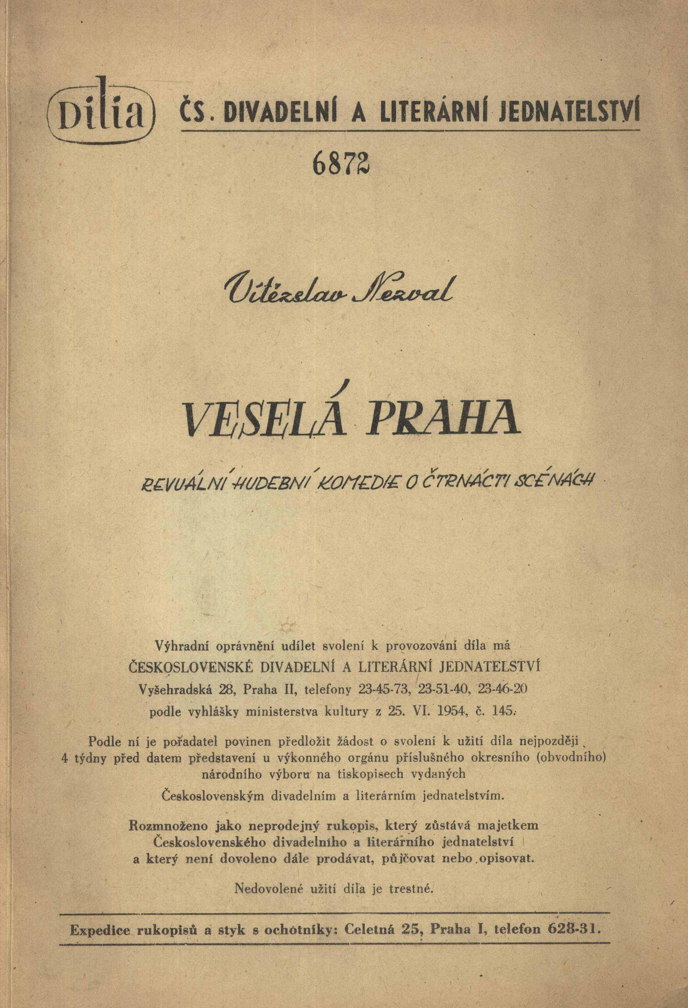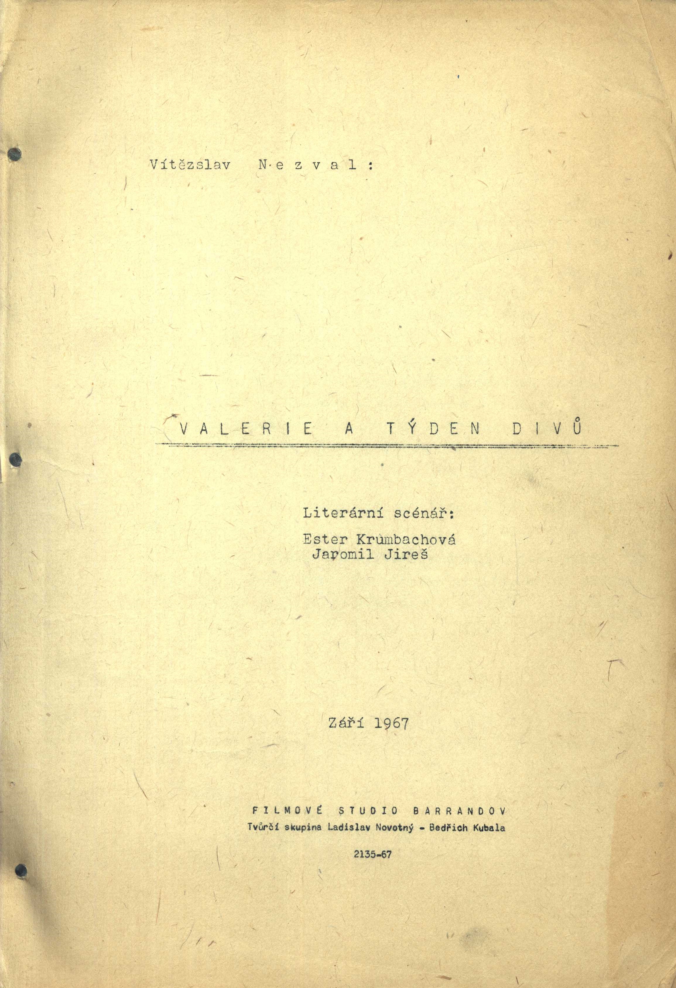 Názvové údaje Dva nepraví cikáni = Li duo finti Zingani : Comedia / Igor Dostálek, Lenka Vlčková, Hubert Krejčí ; Ilustr. a graf. upr. Ivan Mečl ; Z angl. verze scénáře přel. Igor Dostálek Osobní jméno Dostálek, Igor (Autor) Další autoři Vlčková, Lenka (Autor) Krejčí, Hubert, 1944-2022 (Autor) Mečl, Ivan, 1968- (Grafický technik) Dostálek, Igor (Překladatel) Nakladatel Praha : Krystal, 1994 Rozsah 121 s., [6] s. obr Klíčová slova divadelní hry * scénář * komedie dell'arte Počet ex. 1, z toho volných 1 Druh dok. monografie Signatura M 220 g 48 Názvové údaje Něžná : scénář / podle novely F. M. Dostojevského V. Přibíková a Vítězslav Nezval ; režie Vítězslav Nezval Osobní jméno Dostojevskij, Fedor Michajlovič, 1821-1881 (Autor) (Bibliografický předchůdce) Další autoři Přibíková, V. (Scénárista) Nezval, Vítězslav, 1900-1958 (Scénárista) (Režisér) Korp. Československý státní film (státní podnik) (Nakladatel, vydavatel) Nakladatel [Praha] : Československý státní film, 1. výrobní skupina, umělecký šéf Vl. Borský, 1948 Rozsah 177 listů ; 29 cm Klíčová slova česká literatura * strojopis * filmový scénář * r. 1948 Počet ex. 1, z toho volných 1 Druh dok. monografie Signatura Nezval 2172 Názvové údaje Jsou živí, zpívají : hra o 5 dějstvích / Jan Drda ; doslov a režijní poznámku napsal Jaroslav Bílý Osobní jméno Drda, Jan, 1915-1970 (Autor) Další autoři Bílý, Jaroslav, 1917-1989 (Autor doslovu, tiráže atd.) (Autor komentáře textu) Korp. Panorama (nakladatelství a vydavatelství) (Nakladatel, vydavatel) Nakladatel Praha : Orbis, 1961 Výrobce (KNT 2) Rozsah 105, [2] s. ; 8° Klíčová slova české divadlo * české drama * divadelní scénář * divadelní hra Počet ex. 1, z toho volných 1 Druh dok. monografie Signatura M 140 g 17 Názvové údaje Co teď a co potom? / Podle televizního scénáře Alexandry Berkové literárně zpracoval Libor Dvořák ; [fotografie Jiří Červený, Olga Svobodová ; obálku navrhl Pavel Hrach] Osobní jméno Dvořák, Libor, 1948- (Autor) Další autoři Berková, Alexandra, 1949-2008 (Autor) Červený, Jiří (Fotograf) Svobodová, Olga (Fotograf) Hrach, Pavel, 1947- (Autor obálky) Nakladatel [Praha] : Motto, [1992] Výrobce Severografia) Rozsah l99 s., [12] s. fot. ; 19 cm Klíčová slova česká literatura * televizní scénář * psychologická poradna * stol. 20., léta 90. Počet ex. 1, z toho volných 1 Druh dok. monografie Signatura M 218 g 44 Názvové údaje Atlantida = Dnes ještě zapadá slunce nad Atlantidou : drama u 5 slika / Vítězslav (Vitjeslav) Nezval ; preveo Miodrag Ašanin Osobní jméno Nezval, Vítězslav, 1900-1958 (Autor) (Bibliografický předchůdce) Další autoři Ašanin, Miodrag, 1930- (Překladatel) Nakladatel Zagreb : Zavod za prijepise i umnožavanja Ratimir Prević, 1958 Rozsah 43 stran ; 30 cm Klíčová slova česká literatura * překlad * chorvatská literatura * divadelní hra * scénář Počet ex. 1, z toho volných 1 Druh dok. monografie Signatura Nezval 2175 Názvové údaje Manon Lescaut : hra podle románu abbé Prévosta / Vítězslav Nezval ; televizní scénář: Josef Henke Osobní jméno Nezval, Vítězslav, 1900-1958 (Autor) Další autoři Prévost, Antoine François, 1697-1763 (Autor) (Bibliografický předchůdce) Henke, Josef, 1933-2006 (Scénárista) Korp. Československá televize (Nakladatel, vydavatel) Nakladatel Praha : Československá televize, [1970] Rozsah 160 stran ; 29 cm Klíčová slova česká literatura * televize * scénář * veršovaná dramatizace * strojopis * r. 1970 Počet ex. 1, z toho volných 1 Druh dok. monografie Signatura Nezval 2183 Názvové údaje Milenci z kiosku : komedie o 3 jednáních / Vítězslav Nezval Osobní jméno Nezval, Vítězslav, 1900-1958 (Autor) Nakladatel [Česko] : [nakladatel není známý], [19--]? Rozsah 138 stran ; 31 cm Klíčová slova česká literatura * komedie * divadelní hra * scénář * strojopis Počet ex. 1, z toho volných 1 Druh dok. monografie Signatura Nezval 2185 Názvové údaje Tři mušketýři : bohatýrsko-milostná hudební komedie o 12 obrazech podle románu Alexandra Dumase / Vítězslav Nezval Osobní jméno Nezval, Vítězslav, 1900-1958 (Autor) Další autoři Dumas, Alexandre, 1824-1895 (Autor) (Bibliografický předchůdce) Nakladatel [Česko] : [nakladatel není známý], [19--?] Rozsah 83 listů ; 29 cm Klíčová slova česká literatura * divadelní hra * hudební komedie * scénář * strojopis Počet ex. 1, z toho volných 1 Druh dok. monografie Signatura Nezval 2178 Názvové údaje Valerie a týden divů / Vítězslav Nezval ; literární scénář: Ester Krumbachová, Jaromil Jireš Osobní jméno Nezval, Vítězslav, 1900-1958 (Autor) Další autoři Krumbachová, Ester, 1923-1996 (Scénárista) Jireš, Jaromil, 1935-2001 (Scénárista) Nakladatel [Praha] : Filmové studio Barrandov, Tvůrčí skupina Ladislav Novotný - Bedřich Kubala, září 1967 Rozsah 172 listů ; 29 cm Klíčová slova česká literatura * černý román * literární adaptace * scénář * strojopis * r. 1967 Počet ex. 1, z toho volných 1 Druh dok. monografie Signatura Nezval 2180 Názvové údaje Veselá Praha : revuální hudební komedie o čtrnácti scénách / [napsal a hudbu složil] Vítězslav Nezval ; opsala Zdena Bezručová Osobní jméno Nezval, Vítězslav, 1900-1958 (Autor) (Skladatel) Další autoři Bezručová, Zdena, 1904-1964 (Přepisovač) Korp. Dilia, divadelní a literární agentura (Nakladatel, vydavatel) Nakladatel V Praze : Dilia, 1957 Rozsah 63 listů ; 29 cm Klíčová slova česká literatura * hudební komedie * revue * scénář * strojopis Počet ex. 2, z toho volných 2 Druh dok. monografie Signatura Nezval 2169, Nezval 2169a