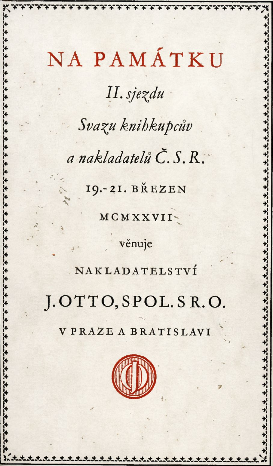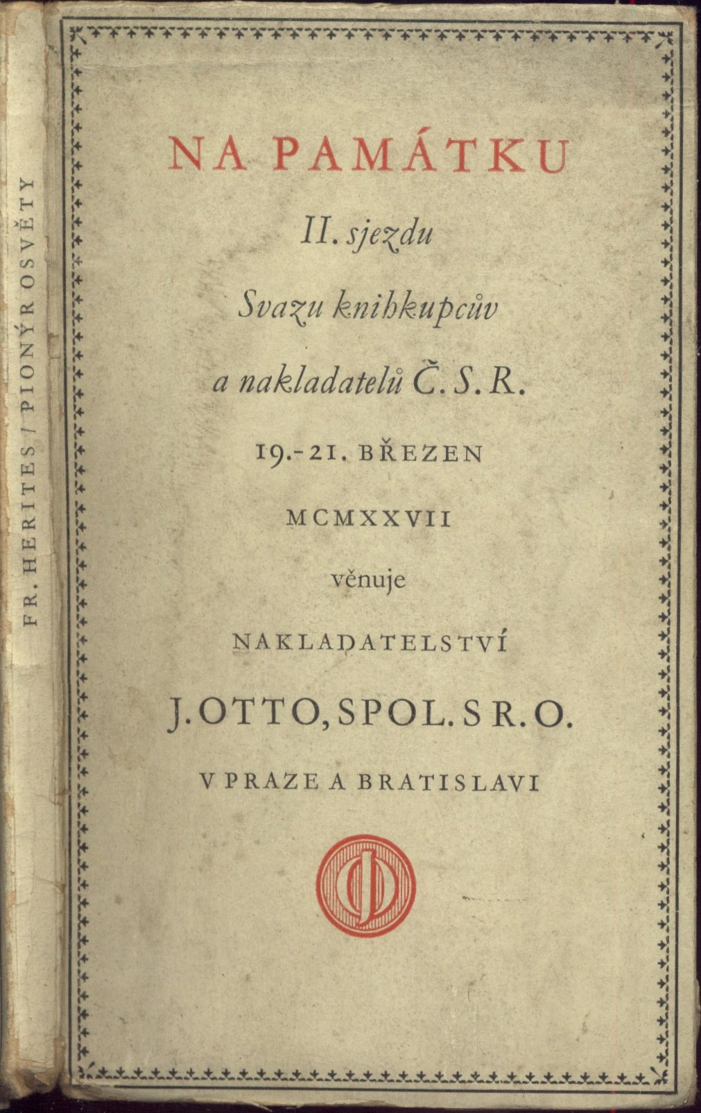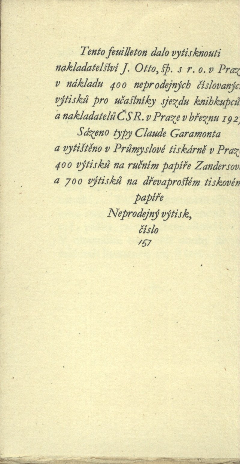 Názvové údaje Druhý sjezd na ochranu památek v Praze 1913 : (IV. sjezd českých archaeologů a spolků musejních) : zpráva, kterou z usnesení sjezdu podává pracovní výbor na ochranu památek Záhlaví-akce Druhý sjezd na ochranu památek (1913 : Praha) Další autoři Vojtíšek, Václav, 1883-1974 (Autor úvodu atd.) Korp. Politika (tiskárna, nakladatelství) (Tiskař) Nakladatel Praha : Nákladem Sjezdu na ochranu památek, 1915 Výrobce Praha : Tiskem "Politiky", 1915 Rozsah 68 stran Klíčová slova česká literatura * historické památky * kulturně historické památky * památková péče * ochrana památek * ochrana kulturních památek * sborník * sjezd Počet ex. 1, z toho volných 1 Druh dok. monografie Signatura KaG IV A 21 Názvové údaje Spisovatelé a moc / Dušan Hamšík ; obálku navrhl Zdenek Seydl ; graficky upravil Antonín Dvořák Osobní jméno Hamšík, Dušan, 1930-1985 (Autor) Další autoři Seydl, Zdenek, 1916-1978 (Autor obálky) Dvořák, Antonín, 1920-1997 (Knižní grafik) Korp. Československý spisovatel (nakladatelství) (Nakladatel, vydavatel) Stráž, tiskařské závody (Tiskař) Nakladatel Praha : Československý spisovatel, 1969 Výrobce Vimperk : Stráž Rozsah 191 stran ; 20 cm Klíčová slova čeští spisovatelé * sjezd spisovatelů * 4. sjezd * průběh sjezdu * Literární noviny * zákaz vydávání * cenzura * boje spisovatelů * r. 1967 Počet ex. 4, z toho volných 5 Druh dok. monografie Signatura C12b 4959, LK R XXVI g 21, AČS 05564, AČS 05564a, Branald 0665 Názvové údaje Pionýr osvěty : feuilleton / Fr. Herites Osobní jméno Herites, František, 1851-1929 (Autor) Další autoři Nakladatelství Jan Otto (Nakladatel, vydavatel) Průmyslová tiskárna v Praze (Tiskař) Nakladatel V Praze : Nakladatelství J. Otto, spol. s r. o., 1927 Výrobce V Praze : vytištěno v Průmyslové tiskárně, Rozsah 55 stran ; 14 cm Klíčová slova česká literatura * Herites F. * próza * črta * soukromý tisk * nakladatelství * číslovaný výtisk * sjezd * Svaz knihkupců a nakladatelů * bibliofilský výtisk * fejeton * bibliofilie * bibliofilský tisk Počet ex. 3, z toho volných 3 Druh dok. monografie Signatura Topič 0594, KaG III E 115, AHO 0056 Názvové údaje [Slovanská vzájemnost v časopisech] / [Jaromír Hrubý] Osobní jméno Hrubý, Jaromír, 1852-1916 (Autor) Další autoři Seifert, Augustin, 1873-1955 (Dárce) Seifert, Adolf, 1902-1945 Korp. Národní rada česká (Nakladatel, vydavatel) Politika (tiskárna, nakladatelství) (Tiskař) Nakladatel V Praze : Nákladem Národní Rady České, 1910 Výrobce (Tiskem "Politiky") Rozsah 8 s. Klíčová slova česká literatura * stol. 20., léta 10. * sjezdy * Slovanský sjezd * slovanská politika Počet ex. 1, z toho volných 1 Druh dok. monografie Signatura KaG XLVII B2 64 Názvové údaje Jubilejní sjezd Československé strany národně sociální v exilu : St. Catharines 12.-14. června 1987 : 1897-1987 - 90 let služby národu Záhlaví-korpor. Jubilejní sjezd Československé strany národně sociální v exilu (1987 : St. Catharines, Ontario) Další autoři Česká strana národně sociální (Nakladatel, vydavatel) Nakladatel Toronto : Ústředí Československé strany národně sociální v exilu, 1987 Rozsah 72 s. : il. Klíčová slova Československá strana národně sociální * sjezd * český exil * Kanada * sborník referátů Počet ex. 1, z toho volných 1 Druh dok. monografie Signatura C12b 12776 Názvové údaje Puraha to Mosukuwa no Surabu Kaigi = Slawenkongresse in Prag und Moskau / Sugao Kawamura Osobní jméno Kawamura, Sugao, (Autor) 1958- Nakladatel Tōkyō : Chūōkōron jigyō shuppan, 2008 Rozsah 199 s. : il., faksim. ; 22 cm Klíčová slova slovanské země * slovanství * Slovanský sjezd * významné osobnosti * stol. 19. Počet ex. 1, z toho volných 1 Druh dok. monografie Signatura BVolkova 0552 Názvové údaje XI. medzinárodný zjazd slavistov : Bratislava 30.8.-8.9. 1993 : adresy účastníkov / [zostavila Sibyla Mislovičová v spolupráci s Jánom Doruľom a Vladimírom Gregorom Záhlaví-akce Medzinárodný zjazd slavistov (XI_: 30. 8. - 8. 9. 1993 : Bratislava) Další autoři Mislovičová, Sibyla, 1958- (Sestavovatel, kompilátor) Doruľa, Ján, 1933- (Sestavovatel, kompilátor) Gregor, Vladimír (Sestavovatel, kompilátor) Nakladatel Bratislava : Slovenský komitét slavistov, 1994 Rozsah 126 s. Klíčová slova Mezinárodní sjezd slavistů (11) Bratislava r. 1993 adresy účastníků Počet ex. 2, z toho volných 2 Druh dok. monografie Signatura C12b 5748, C12b 5748a Názvové údaje O některých problémech současné poesie : [referát na] 2. sjezdu čs. spisovatelů - duben 1956 / Vítězslav Nezval Osobní jméno Nezval, Vítězslav, 1900-1958 (Autor) Nakladatel Praha : [Svaz čs. spisovatelů], 1956 Výrobce (Knihtisk 02) Rozsah 40, [2] s. ; 8° Klíčová slova česká literatura * referát * poezie * česká poezie * sjezd spisovatelů * r. 1956 Počet ex. 1, z toho volných 1 Druh dok. monografie Signatura MUK 1908