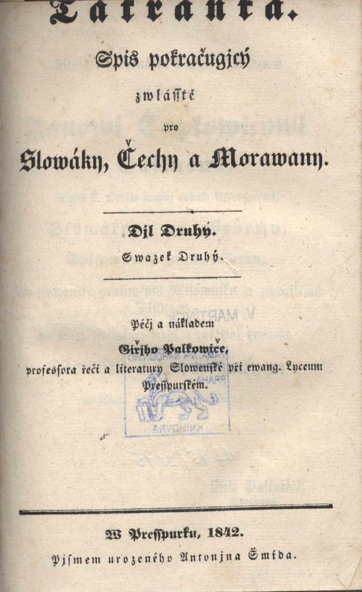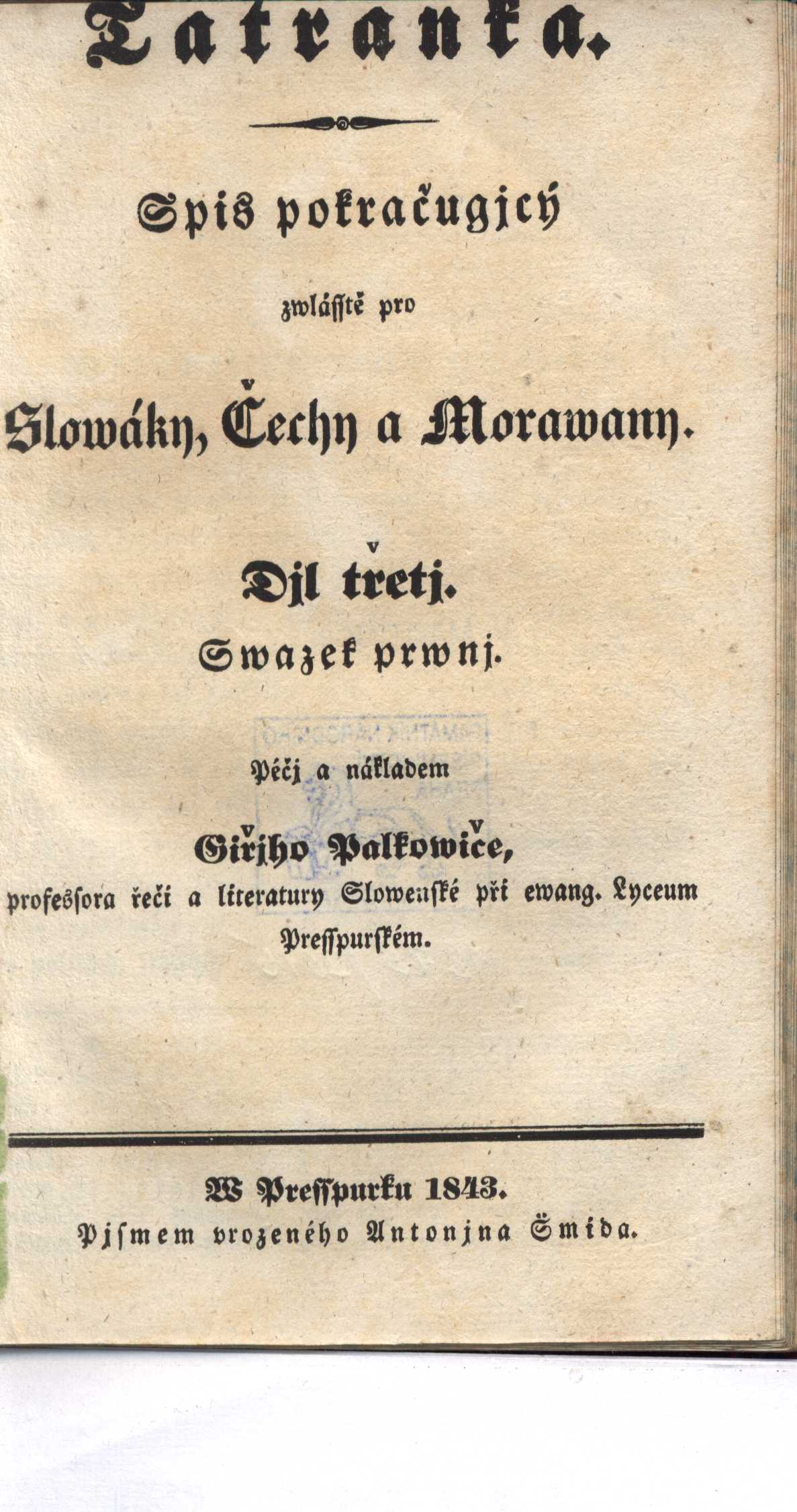 Názvové údaje Dějiny Slovanstva / Jaroslav Bidlo Osobní jméno Bidlo, Jaroslav, 1868-1937 (Autor) Další autoři Vesmír (nakladatelství) (Nakladatel, vydavatel) Průmyslová tiskárna v Praze (Tiskař) Nakladatel V Praze : Vesmír, 1927 Výrobce (Průmyslová tiskárna) Rozsah 291 s. Klíčová slova česká literatura * historie * dějiny * dějiny Slovanů * Slované * slovanská historiografie * slovanská kultura * slovanské státy * slovanské země * slovanství Počet ex. 3, z toho volných 3 Druh dok. monografie Signatura KaG XVI B 41, VHB 0271, C12c 5767 Názvové údaje Fragmente zur Geschichte der Völker ungarischer und slawischer Zunge, nach den griechschen Quellen : zugleich ein Beytrag zum besseren Verstehen Herodot's, Strabon's, Diodor's von Sicilien, der Byzantiner und der alten Geographie insbesondere. 1. Heft, Urgeschichte der Völker slawischer Zunge / bearbeitet von Gregor Dankowszky Osobní jméno Dankovský, Řehoř, 1784-1857 (Autor) Nakladatel Pressburg : Belnay's Erben, 1825 Rozsah 6, 52 s. ; 8° Klíčová slova německy psaná literatura * historie * geografie * Maďarsko * maďarská národnost * slovanská historiografie Počet ex. 1, z toho volných 1 Druh dok. monografie Signatura L XII a 67 Názvové údaje Fragmente zur Geschichte der Völker ungarischer und slawischer Zunge, nach den griechschen Quellen : zugleich ein Beytrag zum besseren Verstehen Herodot's, Strabon's, Diodor's von Sicilien, der Byzantiner und der alten Geographie insbesondere. 1. Heft, Urgeschichte der Völker slawischer Zunge / bearbeitet von Gregor Dankowszky Osobní jméno Dankovský, Řehoř, 1784-1857 (Autor) Nakladatel Pressburg : Belnay's Erben, 1825 Rozsah 6, 52 s. ; 8° Klíčová slova německy psaná literatura * historie * geografie * maďarská národnost * slovanská historiografie Počet ex. 1, z toho volných 1 Druh dok. monografie Signatura L XII a 95 Názvové údaje Slovanství ve středoevropském prostoru. Iluze, deziluze a realita : Pardubická konference (22.-24. dubna 2004) / Dominik Hrodek a kolektiv Osobní jméno Hrodek, Dominik, 1976- (Sestavovatel, kompilátor) Další autoři Slovanství ve středoevropském prostoru - iluze, deziluze a realita (2004 : Pardubice, Česko) Nakladatel Praha : Libri : Sdružení STRED - Středoevropský dialog, 2004 Rozsah 401 s. Klíčová slova střední Evropa * Slované * slovanská historiografie * slovanská kultura * slovanská jednota * slovanská vzájemnost * slovanské státy * sborníky z konferencí Počet ex. 1, z toho volných 1 Druh dok. monografie Signatura C12b 8274 Názvové údaje Rozprawy o gmenách, počátkách i starožitnostech národu Slawského a geho kmenů / od Jana Kollára Osobní jméno Kollár, Ján, 1793-1852 (Autor) Další autoři Brauner, František August, 1810-1880 (Dřívější majitel) Nakladatel W Budjně : W Král. universické tiskárně, 1830 Rozsah xii, 396 s. Klíčová slova slovenská literatura * Slované * slovanská kultura * slovanská historiografie * filologická bádání * filologická studie * filologie Počet ex. 1, z toho volných 1 Druh dok. staré tisky Signatura VHB 0664 Názvové údaje Tatranka : spis pokračugjcý zwlásstě pro Slowaky, Čechy a Morawany. Djl třetj. Swazek prwnj. / péčj a nákladem Giřjho Palkowiče Osobní jméno Palkovič, Juraj, 1769-1850 (Editor) (Nakladatel, vydavatel) Nakladatel W Presspurku, 1843 Výrobce Pjsmem urozeného Antonjna Šmida) Rozsah 112 s. Klíčová slova slovenská literatura * česká literatura * próza * poezie * slovanská historiografie * slovanské národy * slovanské literatury * slovenští autoři * články * naučné články Počet ex. 1, z toho volných 1 Druh dok. monografie Signatura VMartínek 1361/přív. 4 Názvové údaje Tatranka : spis pokračugjcý zwlásstě pro Slowaky, Čechy a Morawany. Djl Druhý. Swazek Druhý. / péčj a nákladem Giřjho Palkowiče Osobní jméno Palkovič, Juraj, 1769-1850 (Editor) (Nakladatel, vydavatel) Nakladatel W Presspurku, 1842 Výrobce Pjsmem urozeného Antonjna Šmida) Rozsah 119 s. Klíčová slova slovenská literatura * próza * poezie * slovanská historiografie * slovanské národy * slovanské literatury * slovenští autoři * články * naučné články Počet ex. 1, z toho volných 1 Druh dok. monografie Signatura VMartínek 1361/přív. 1 Názvové údaje Tatranka : spis pokračugjcý zwlásstě pro Slowaky, Čechy a Morawany. Djl Druhý. Swazek Třetj. / péčj a nákladem Giřjho Palkowiče Osobní jméno Palkovič, Juraj, 1769-1850 (Editor) (Nakladatel, vydavatel) Nakladatel W Presspurku, 1842 Výrobce Pjsmem urozeného Antonjna Šmida) Rozsah 108 s. Klíčová slova slovenská literatura * próza * poezie * slovanská historiografie * slovanské národy * slovanské literatury * slovenští autoři * články * naučné články Počet ex. 1, z toho volných 1 Druh dok. monografie Signatura VMartínek 1361/přív. 2 Názvové údaje Tatranka : spis pokračugjcý zwlásstě pro Slowaky, Čechy a Morawany. Djl Druhý. Swazek Čtwrtý. / péčj a nákladem Giřjho Palkowiče Osobní jméno Palkovič, Juraj, 1769-1850 (Editor) (Nakladatel, vydavatel) Nakladatel W Presspurku, 1842 Výrobce Pjsmem urozeného Antonjna Šmida) Rozsah 112 s. Klíčová slova slovenská literatura * próza * poezie * slovanská historiografie * slovanské národy * slovanské literatury * slovenští autoři * články * naučné články Počet ex. 1, z toho volných 1 Druh dok. monografie Signatura VMartínek 1361/přív. 3 Názvové údaje Tatranka : spis pokračugjcý zwlásstě pro Slowaky, Čechy a Morawany. Djl Druhý. Swazek prwnj. / péčj a nákladem Giřjho Palkowiče Osobní jméno Palkovič, Juraj, 1769-1850 (Editor) (Nakladatel, vydavatel) Nakladatel W Presspurku, 1841 Výrobce Pjsmem urozeného Antonjna Šmida) Rozsah viii, 116 s. ; 20 cm Klíčová slova slovenská literatura * próza * poezie * slovanská historiografie * slovanské národy * sl