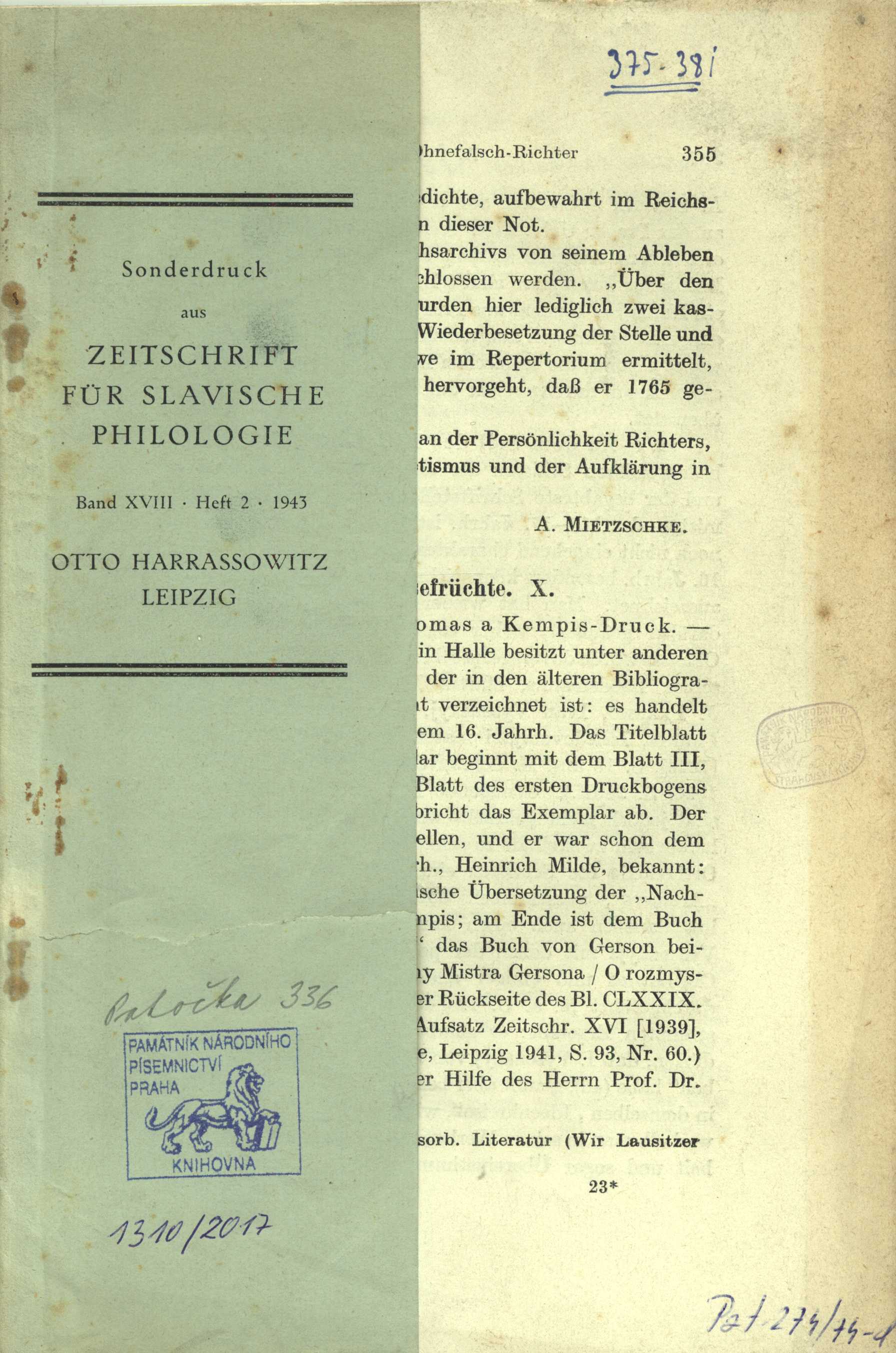 Názvové údaje Slavjanskije literatury i ich rol' v istorii mirovoj kul'tury : tezisy doklada / M.P. Aleksejev Osobní jméno Aleksejev, Michail Pavlovič, (Autor) 1896-1981 Nakladatel Moskva : Akademija nauk SSSR, 1958 Rozsah 2 listy Klíčová slova slovanské literatury * světová literatura * význam literatury Počet ex. 1, z toho volných 1 Druh dok. monografie Signatura F I 3040 Názvové údaje Obrysy Slovanstva : sborník přednášek Slovanského ústavu v Praze / Antonín Boháč ... [et al.] ; [obálku navrhl Boris Hanš] Osobní jméno Boháč, Antonín, 1926-1992 (Autor) Další autoři Hanš, Boris, 1912-1962 (Autor obálky) Korp. Orbis (firma) (Nakladatel, vydavatel) Nakladatel Praha : Orbis, 1948 Rozsah 229 s. Klíčová slova česká literatura * Slované * slovanská kultura * slovanská otázka * slovanské literatury * slovanské země * slovanské národy Počet ex. 1, z toho volných 1 Druh dok. monografie Signatura Hoffmeister 0441 Názvové údaje [Korrespondence a zápisky Frant. Ladislava Čelakovského / vydal František Bílý. svazek III, sešit 2] Osobní jméno Čelakovský, František Ladislav, 1799-1852 (Autor) (Adresát, příjemce) Další autoři Bílý, František, 1854-1920 (Editor) Přibil, Martin Alexander, 1803-1871 (Autor) (Adresát, příjemce) Frič, Josef Václav, 1829-1890 (Autor) (Adresát, příjemce) Staněk, Václav, 1804-1871 (Autor) (Adresát, příjemce) Plánek, Jan Vlastislav, 1789-1865 (Autor) (Adresát, příjemce) Vinařický, Karel Alois, 1803-1869 (Autor) (Adresát, příjemce) Rajská, Bohuslava, 1817-1852 (Autor) (Adresát, příjemce) Vinařický, Karel Alois, 1803-1869 (Autor) (Adresát, příjemce) Korp. Česká akademie císaře Františka Josefa pro vědy, slovesnost a umění (Nakladatel, vydavatel) Alois Wiesner, knihtiskař České akademie císaře Františka Josefa pro vědy, slovesnost a umění (Praha) (Tiskař) Nakladatel V Praze : Nákladem České akademie císaře Františka Josefa pro vědy a slovesnost a umění, 1914 Výrobce (Alois Wiesner) Rozsah s. 321-675, [1] Osobní hesla Čelakovský, František Ladislav, 1799-1852 - profesor slavistiky a bohemistiky, básník, sběratel a vydavatel * Rajská, Bohuslava, 1817-1852 - pracovnice ženského hnutí * Staněk, Václav, 1804-1871 - lékař a spisovatel * Vinařický, Karel Alois, 1803-1869 - katolický kněz, poslanec, básník, satirik, překladatel * Přibil, Martin Alexander, 1803-1871 - český kněz a básník Klíčová slova slavistika * česká literatura * česká poezie * jižní Čechy * literární historie * poezie * korespondence * čeští spisovatelé * český jazyk * přátelství * dějiny literatury * r. 1848 * rodinná korespondence * stol. 19. * básnická tvorba * národní obrození * slovanské literatury * osobní korespondence * básníci * edice * tvorba * čeští básníci * diskuse * přátelé * literární život * vzájemná korespondence * vlastenectví * Prácheňsko * edice pramenů Počet ex. 1, z toho volných 1 Druh dok. monografie Signatura KaG XIII C2 12/6 Odkazy (1) - Monografie Názvové údaje Korrespondence a zápisky Frant. Ladislava Čelakovského / vydal František Bílý. svazek III, [sešit 1] Osobní jméno Čelakovský, František Ladislav, 1799-1852 (Autor) (Adresát, příjemce) Další autoři Bílý, František, 1854-1920 (Editor) Staněk, Václav, 1804-1871 (Autor) (Adresát, příjemce) Amerling, Karel, 1807-1884 (Autor) (Adresát, příjemce) Palacký, František, 1798-1876 (Autor) (Adresát, příjemce) Rajská, Bohuslava, 1817-1852 (Autor) (Adresát, příjemce) Vinařický, Karel Alois, 1803-1869 (Autor) (Adresát, příjemce) Korp. Česká akademie císaře Františka Josefa pro vědy, slovesnost a umění (Nakladatel, vydavatel) Alois Wiesner, knihtiskař České akademie císaře Františka Josefa pro vědy, slovesnost a umění (Praha) (Tiskař) Nakladatel V Praze : Nákladem České akademie císaře Františka Josefa pro vědy a slovesnost a umění, 1912 Výrobce (Alois Wiesner) Rozsah [4], 320 s. Osobní hesla Čelakovský, František Ladislav, 1799-1852 - profesor slavistiky a bohemistiky, básník, sběratel a vydavatel * Rajská, Bohuslava, 1817-1852 - pracovnice ženského hnutí * Staněk, Václav, 1804-1871 - lékař a spisovatel * Čelakovská, Marie, zemř.1844 - první manželka F. L. Čelakovského Klíčová slova slavistika * česká literatura * česká poezie * jižní Čechy * literární historie * poezie * milostná korespondence * korespondence * čeští spisovatelé * český jazyk * přátelství * dějiny literatury * stol. 19. * básnická tvorba * národní obrození * slovanské literatury * osobní korespondence * básníci * edice * tvorba * čeští básníci * diskuse * přátelé * literární život * vzájemná korespondence * vlastenectví * Prácheňsko * edice pramenů Počet ex. 1, z toho volných 1 Druh dok. monografie Signatura KaG XIII C2 12/5 Odkazy (1) - Monografie Názvové údaje [Korrespondence a zápisky Frant. Ladislava Čelakovského / vydal František Bílý. svazek I, sešit 2] Osobní jméno Čelakovský, František Ladislav, 1799-1852 (Autor) (Adresát, příjemce) Další autoři Bílý, František, 1854-1920 (Editor) Kamarýt, Josef Vlastimil, 1797-1833 (Autor) (Adresát, příjemce) Plánek, Jan Vlastislav, 1789-1865 (Autor) (Adresát, příjemce) Šnajdr, Karel Sudimír, 1766-1835 (Autor) (Adresát, příjemce) Chmelenský, Josef Krasoslav, 1800-1839 (Autor) (Adresát, příjemce) Marie Antonie, 1781-1831 (Autor) (Adresát, příjemce) Polák, Milota Zdirad, 1788-1856 (Autor) (Adresát, příjemce) Sušil, František, 1804-1868 (Autor) (Adresát, příjemce) Korp. Česká akademie císaře Františka Josefa pro vědy, slovesnost a umění (Nakladatel, vydavatel) Alois Wiesner, knihtiskař České akademie císaře Františka Josefa pro vědy, slovesnost a umění (Praha) (Tiskař) Nakladatel V Praze : Nákladem České akademie c
