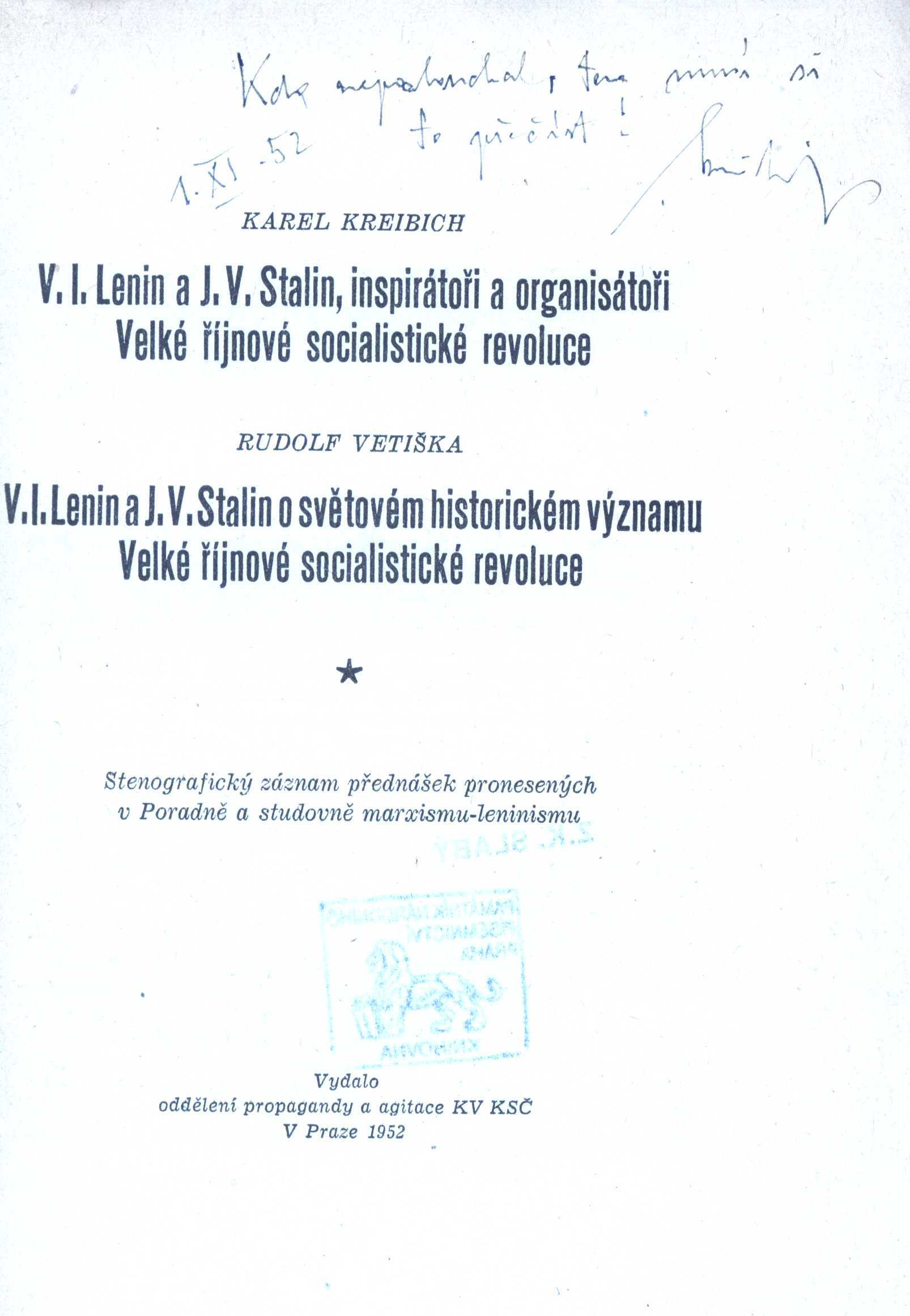 Názvové údaje Maxim Gorkij v boji proti reakci / I.P. Bačerikov ; [přeložila Milada Hauptová] Osobní jméno Bačerikov, I.P. (Autor) (Dedikátor) Další autoři Pošarová, Milada, 1930- (Překladatel) Slabý, Zdeněk Karel, 1930-2020 (Dedikant) Nakladatel Praha : Nakladatelství Československo-sovětského institutu, 1952 Výrobce (Práce, n.p., záv. 01) Rozsah 59 s. Osobní hesla Gor‘kij, Maksim, 1868-1936 - ruský spisovatel, dramatik, publicista, politický činitel Klíčová slova ruští spisovatelé * sovětští politici * Sovětský svaz * stol. 20. * politické názory * studie Počet ex. 1, z toho volných 1 Druh dok. monografie Signatura ZKSlabý 0505 Názvové údaje "Pohádka o Stalinovi" v kontextu současné oficiální propagandy / Petr Fidelius Osobní jméno Fidelius, Petr, 1948- (Autor) Nakladatel S.l. : s.n., [1980] Rozsah 58 s. Osobní hesla Stalin, Iosif Vissarionovič, 1879-1953 - ruský diktátor, autor politických spisů Klíčová slova kult osobnosti * totalitarismus * komunistická diktatura * komunistická ideologie * komunistický režim * Československo * Sovětský svaz * sovětští politici * politická studie Počet ex. 1, z toho volných 1 Druh dok. monografie Signatura C12d 1095 Názvové údaje Leninův řidič vzpomíná / Stěpan Gil ; přeložil Jaromír Kvapil ; obálku a vazbu navrhl a graficky upravil Dobroslav Foll Osobní jméno Gil', Stepan Kazimirovič, 1888-1966 (Autor) Další autoři Kvapil, Jaromír (Překladatel) Foll, Dobroslav, 1922-1981 (Autor obálky) (Knižní grafik) Korp. Svět sovětů (nakladatelství) (Nakladatel, vydavatel) Rudé právo (tiskárna, Praha) (Tiskař) Nakladatel Praha : Svět sovětů, 1959 Výrobce Tiskárna Rudé právo Rozsah 122 stran ; 17 cm Osobní hesla Lenin, Vladimir Iľjič, 1870-1924 - ruský (sovětský) politik Klíčová slova sovětští politici * revolucionáři * Rusko * stol. 19.-20. * vzpomínky Počet ex. 2, z toho volných 2 Druh dok. monografie Signatura Šafář 031, P 52 F 4 Názvové údaje Vladimír Iljič Lenin : stručný životopis / Institut Marxe-Engelse-Lenina Moskva ; [přeložil Václav Prokůpek] Záhlaví-korpor. Institut Marksa-Engel‘sa-Lenina Další autoři Prokůpek, Václav, 1902-1974 (Překladatel) Korp. Nakladatelství Svoboda (Nakladatel, vydavatel) Nakladatel Praha : Svoboda, 1951 Rozsah 261 s. Osobní hesla Lenin, Vladimir Iľjič, 1870-1924 - ruský (sovětský) politik Klíčová slova sovětští politici * životopis Počet ex. 1, z toho volných 1 Druh dok. monografie Signatura Fuks 0463 Názvové údaje Výbor z projevů a článků 1922-1945 / M.I. Kalinin ; [z ruských orig. podle připojené bibliogr. sest. a přel. Jiřina Pokorná] Osobní jméno Kalinin, Michail Ivanovič, 1875-1946 (Autor) Další autoři Pokorná, Jiřina (Sestavovatel, kompilátor) (Překladatel) Nakladatel Praha : Svoboda, 1952 Výrobce (Svoboda 01) Rozsah 306 s. ; 8° Klíčová slova Sovětský svaz * sovětští politici * články * projevy * výbor textů Počet ex. 1, z toho volných 1 Druh dok. monografie Signatura K H III 31 Názvové údaje V.I. Lenin a J.V. Stalin, inspirátoři a organisátoři Velké říjnové socialistické revoluce / Karel Kreibich. V.I. Lenin a J.V. Stalin o světovém historickém významu Velké říjnové socialistické revoluce / Rudolf Vetiška : stenografický záznam přednášek pronesených v Poradně a studovně marxismu-leninismu Osobní jméno Kreibich, Karel, 1883-1966 (Autor) (Dedikátor) Další autoři Vetiška, Rudolf, 1895-1966 (Autor) Korp. Komunistická strana Československa. Ústřední výbor. Oddělení propagace a agitace (Nakladatel, vydavatel) Nakladatel Praha : Svoboda, 1952 Rozsah 32 s. ; 8° Osobní hesla Lenin, Vladimir Iľjič, 1870-1924 - ruský (sovětský) politik * Stalin, Iosif Vissarionovič, 1879-1953 - ruský diktátor, autor politických spisů Klíčová slova politici * Rusko * Sovětský svaz * sovětští politici * VŘSR * historický význam * přednášky Počet ex. 1, z toho volných 1 Druh dok. monografie Signatura ZKSlabý 0559 Názvové údaje Lenin im sowjetischen Spielfilm : die Revolution verfilmt ihre Helden / Sheila Och Osobní jméno Ochová, Sheila, 1940-1999 (Autor) Další autoři Verlag Peter Lang (nakladatelství) (Nakladatel, vydavatel) Nakladatel Frankfurt am Main ; Berlin ; Bern ; New York ; Paris ; Wien : Peter Lang, 1992 Rozsah 198 stran ; 21 cm Osobní hesla Lenin, Vladimir Iľjič, 1870-1924 - ruský (sovětský) politik Klíčová slova sovětští politici * filmy * Sovětský svaz * Říjnová revoluce * sovětské Rusko * r. 1917-1982 * hrané filmy * Lenin V. I. * filmové náměty * dizertační práce Počet ex. 1, z toho volných 1 Druh dok. monografie Signatura C12b 16743 Názvové údaje Mein Leben : Versuch einer Autobiographie / Leo Trotzki ; [Übersetzung nach dem russischen Manuskript von Alexandra Ramm] Osobní jméno Trockij, Lev, 1879-1940 (Autor) Další autoři Ramm, Alexandra, 1883-1963 (Překladatel) Korp. S. Fischer Verlag (nakladatelství) (Nakladatel, vydavatel) Nakladatel Berlin : S. Fischer Verlag, 1930 Výrobce Otto v. Holten) Rozsah xvi, 569 s., [8] obr. příl. Osobní hesla Trockij, Lev, 1879-1940 - sovětský revolucionář a politik Klíčová slova sovětští politici * Trockij L. * autobiografie Počet ex. 1, z toho volných 1 Druh dok. monografie Signatura Teige 194 Názvové údaje The Anti-Stalin Campaign and International Communism : a Selection of Documents Nakladatel New York : Columbia University Press, 1956 Rozsah vii, 342 stran ; 22 cm Osobní hesla Stalin, Iosif Vissarionovič, 1879-1953 - ruský diktátor, autor politických spisů * Chruščev, Nikita Sergejevič, 1894-1971 - sovětský státní a stranický činitel Klíčová slova Sovětský svaz * stalinismus * komunismus * sovětští politici * politika * vláda * komunistická vláda * sborníky Počet ex. 1, z toho volných 1 Druh dok. monografie Signatura M 