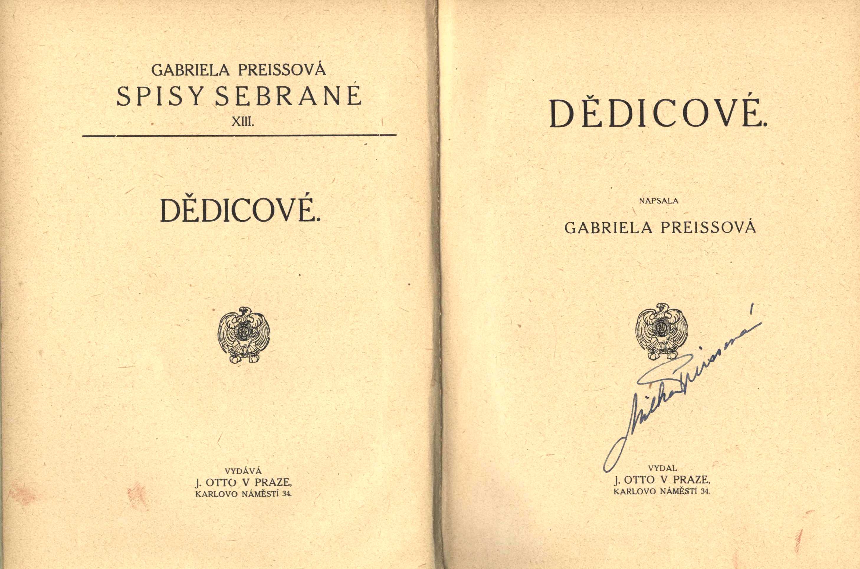 Názvové údaje Pásmo / Guillaume Apollinaire ; přeložil Petr Kopta ; kresby Vlasty Dyrynkové Osobní jméno Apollinaire, Guillaume, 1880-1918 (Autor) Další autoři Kopta, Petr, 1927-1983 (Překladatel) (Autor podpisu) (Dedikátor) Dyrynková, Vlasta, 1944- (Ilustrátor) (Autor podpisu) Dyrynk, Martin, 1941-2019 (Nakladatel, vydavatel) (Autor podpisu) Černý, Václav, 1905-1987 (Autor doslovu, tiráže atd.) (Autor podpisu) Vladislav, Jan, 1923-2009 (Dedikant) Nakladatel Praha : vlastním nákladem vydal Martin Dyrynk, 1978 Rozsah 21 stran : ilustrace ; 20 cm Klíčová slova francouzská poezie * asociace * avantgarda * moderní poezie * stol. 19., léta 80.-stol. 20., léta 10. * bibliofilie * bibliofilská vydání * soukromé tisky * novoroční tisk Počet ex. 3, z toho volných 3 Druh dok. monografie Signatura M 156 b 13, M 174 f 81, JVladislav 2205 Názvové údaje Židovské zrcadlo ve světle pravdy / vědecké studium Dra Karla [!] Eckera, soukromého docenta semitské filologie Král. akademie v Münsteru ; dle vydání Dra A.S. Šmakova zpracoval Jiří Hora [= Čeněk Brabec] Osobní jméno Ecker, Jakob, 1851-1912 (Autor) Další autoři Šmakov, Aleksej Semenovič, zemř. 1916 (Překladatel) Hora, Jiří, 1860-1933 (Překladatel) Brimann, Aron Israel, asi 1860- (Bibliografický předchůdce) Kotrba, Václav, 1871-1929 (Tiskař) Korp. Politika (tiskárna, nakladatelství) (Nakladatel, vydavatel) Nakladatel V Praze : tiskem "Politiky", závodu tiskařského a vydavatelského, 1907 Rozsah 83, [1] s. Klíčová slova Evropa * evropské dějiny * Německo * Rusko * Židé * židovské dějiny * židovská otázka * antisemitismus * antisemitská ideologie * talmud * židovské náboženství * stol. 19., léta 80.-stol. 20., léta 10. * r. 1883-1907 Počet ex. 1, z toho volných 1 Druh dok. monografie Signatura V VII e 4 přív. 2 Názvové údaje Poutník v cizině / Josef Bohuslav Foerster ; obálku navrhl Boris Hanuš Osobní jméno Foerster, Josef Bohuslav, 1859-1951 (Autor) Další autoři Hanuš, Boris (Autor obálky) Korp. Orbis (firma) (Nakladatel, vydavatel) Orbis (tiskárna) (Tiskař) Nakladatel Praha : Orbis, 1947 Rozsah 358 s. Osobní hesla Foerster, Josef Bohuslav, 1859-1951 - hudební skladatel Klíčová slova hudební skladatelé * hudba * osobnosti * Česko * Německo * Rakousko * stol. 19., léta 80.-stol. 20., léta 10. * vzpomínky * životopisná literatura Počet ex. 1, z toho volných 1 Druh dok. monografie Signatura Preissová 015 Názvové údaje Češi, Slováci a Rusko : studie vzájemných vztahů československo-ruských od r. 1867 do počátku světové války / napsal Josef Jirásek Osobní jméno Jirásek, Josef, 1884-1972 (Autor) Nakladatel V Praze : Vesmír, 1933 Výrobce Vytiskla Průmyslová tiskárna Rozsah 392 stran ; 23 cm Klíčová slova Československo * česko-ruské vztahy * zahraniční politika * společenské poměry * stol. 19., léta 80.-stol. 20., léta 10. Počet ex. 1, z toho volných 1 Druh dok. monografie Signatura M 43 f 26 Názvové údaje Siluety ruských umělců / Sergij Makovskij ; přeložil z ruského rukopisu František Táborský Osobní jméno Makovskij, Sergej Konstantinovič, 1878-1962 (Autor) Další autoři Táborský, František, 1858-1940 (Překladatel) Korp. Česká grafická Unie (tiskárna a nakladatelství) (Nakladatel, vydavatel) Nakladatel V Praze : vytiskla a vydala Česká grafická Unie a. s., 1922 Rozsah 124 stran, xvi listů obrazových příloh, 2 nečíslované listy barevných příloh ; 22 cm Klíčová slova ruská literatura * překlad * ruské umění * ruští malíři * stol. 19., léta 80.-stol. 20., léta 10. * reprodukce * reprodukce obrazů Počet ex. 2, z toho volných 2 Druh dok. monografie Signatura C12b 16730, KaG XII G 83 Názvové údaje Národní divadlo a jeho výtvarníci / Antonín Matějček ; Graf. úpr., obálku a vazbu navrhl Oldřich Menhart Osobní jméno Matějček, Antonín, 1889-1950 (Autor) Další autoři Menhart, Oldřich, 1897-1962 (Grafický technik) Nakladatel Praha : Státní nakladatelství krásné literatury, hudby a umění, 1954 Rozsah 311 s. : fot Klíčová slova Národní divadlo, Praha * dějiny stavby * výzdoba divadla * české výtvarné umění * studie * reprodukce * stol. 19., léta 80.-stol. 20., léta 10. Počet ex. 2, z toho volných 2 Druh dok. monografie Signatura MUK 1036, LK P 79 a 43 Názvové údaje Hana Kvapilová : První česká moderní herečka / Ludvík Páleníček ; Portret umělkyně od J. Jílka Osobní jméno Páleníček, Ludvík, 1904-1991 (Autor) Další autoři Jílek, Jan, 1905-1982 (Ilustrátor) Nakladatel Kroměříž : Vyšší lidová škola MOS, 1941 Rozsah 14 s. Osobní hesla Kvapilová, Hana, 1860-1907 - herečka, spisovatelka Klíčová slova česká literatura * biografie * Kvapilová H. * české divadlo * stol. 19., léta 80.-stol. 20., léta 10. Počet ex. 1, z toho volných 1 Druh dok. monografie Signatura C12a 1436 Názvové údaje Dědicové / napsala Gabriela Preissová Osobní jméno Preissová, Gabriela, 1862-1946 (Autor) Další autoři Nakladatelství Jan Otto (Nakladatel, vydavatel) Unie (tiskárna) (Tiskař) Nakladatel V Praze : J. Otto, [1913?] Výrobce (Tiskem Unie) Rozsah 167 s. ; 8° Klíčová slova česká próza * české povídky * stol. 19., léta 80.-stol. 20., léta 10. Počet ex. 1, z toho volných 1 Druh dok. monografie Signatura Preissová 033 Názvové údaje Miniaturky / napsala Gabriela Preissová. [I.] Osobní jméno Preissová, Gabriela, 1862-1946 (Autor) Další autoři Nakladatelství Jan Otto (Nakladatel, vydavatel) Unie (tiskárna) (Tiskař) Nakladatel V Praze : J. Otto, [1911] Výrobce (Tiskem Unie) Rozsah 214 s. Klíčová slova česká próza * české povídky * črty * stol. 19., léta 80.-stol. 20., léta 10. Počet ex. 1, z toho volných 1 Druh dok. monografie Signatura Preissová 048/1 Názvové údaje Miniaturky / napsala Gabriela Preissová. [II.] Osobní jm