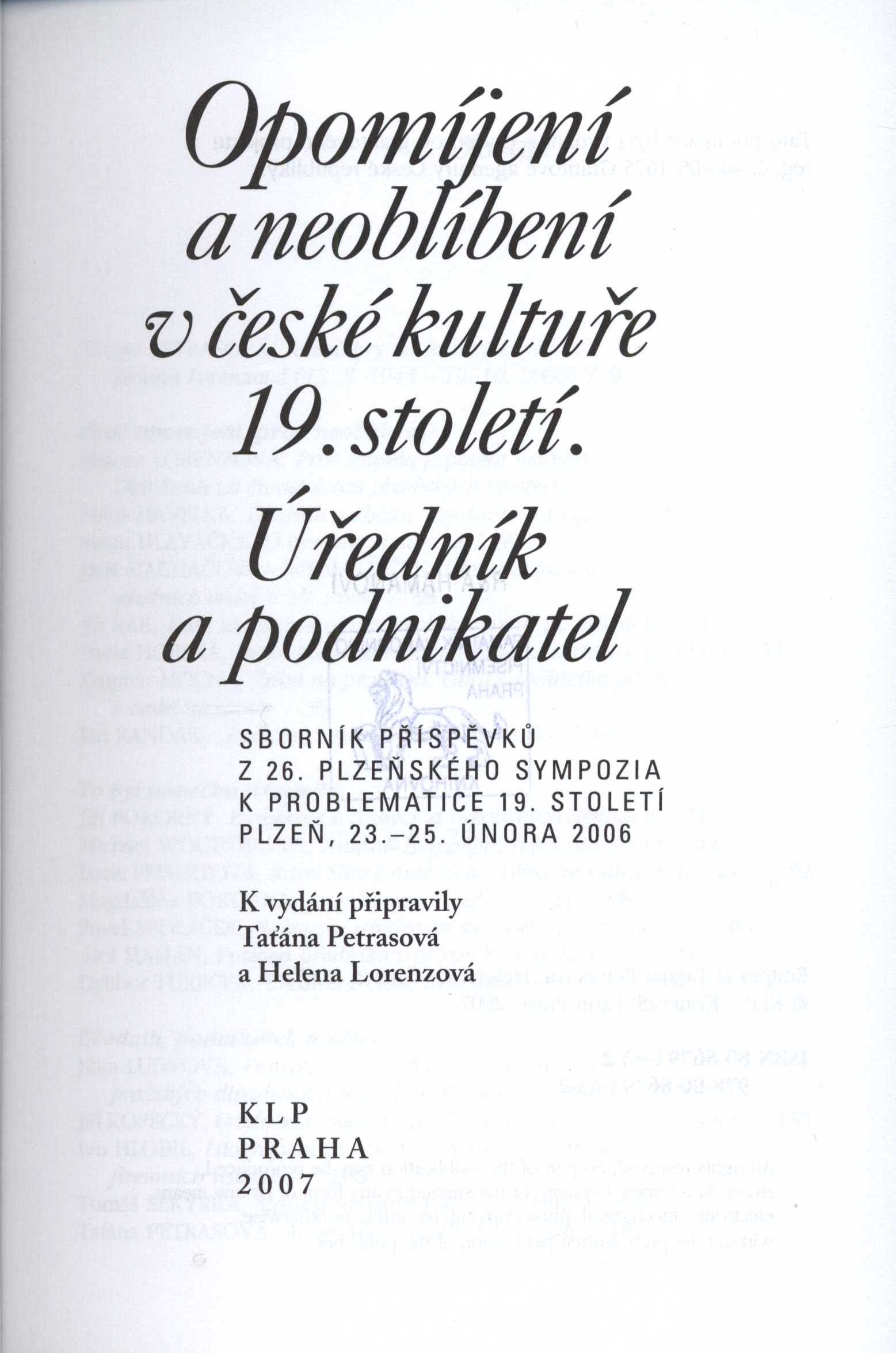 Názvové údaje L' Art d'Illustration : Franzözische Buchillustration des 19. Jahrhunderts zwischen Prachtwerk und Billigbuch : eine Ausstellung im Zeughaus der Herzog August Bibliothek Wolfenbüttel 7. Dezember 1985 bis 20. April 1986 / [Ausstellung und Katalog: Ulrike Bodemann mit Beiträgen von Silvia Friedrich-Rust, Horst Günther und Eckhard Schaar] Záhlaví-akce L' Art d'Illustration Französische Buchillustration des 19. Jahrhunderts zwischen Prachtwerk und Billigbuch (eine Ausstellung im Zeughaus der Herzog August Bibliothek) (7.12. 1985 - 20.4. 1986 : Wolfenbüttel) Další autoři Bodemann, Ulrike, 1946- (Sestavovatel, kompilátor) Friedrich-Rust, Silvia (Sestavovatel, kompilátor) Günther, Horst, 1945- (Sestavovatel, kompilátor) Schaar, Eckhard, 1932-2012 (Sestavovatel, kompilátor) Korp. Herzog August Bibliothek (Wolfenbüttel) (Nakladatel, vydavatel) Nakladatel Wolfenbüttel : Herzog August Bibliothek, 1985 Rozsah 219, [1] s. : il., fot. Klíčová slova Evropa * Francie * francouzská literatura * knižní kultura * knižní grafika * knižní ilustrace * katalogy výstav * stol. 19. Počet ex. 2, z toho volných 2 Druh dok. monografie Signatura C12c 514, C12c 2337 Názvové údaje Opomíjení a neoblíbení v české kultuře 19. století : úředník a podnikatel : sborník příspěvků z 26. ročníku plzeňského sympozia k problematice 19. století, Plzeň, 23.-25. února 2006 / k vydání připravily Taťána Petrasová a Helena Lorenzová Záhlaví-akce Sympozium Plzeň (26_: 2006 : Plzeň, Česko) Další autoři Lorenzová, Helena, 1945-2006 (Editor) Petrasová, Taťána, 1961- (Editor) Korp. Ústav dějin umění (Akademie věd ČR) (Organizátor akce) Dominik Centrum (firma) (Organizátor akce) Archiv města Plzně (Organizátor akce) Nakladatel Praha : KLP-Koniasch Latin Press, 2007 Rozsah 384 s., [10] s. obr. příl. : il. Klíčová slova čeští podnikatelé * úředníci * česká kultura * kulturní osobnosti * objevitelé * stol. 19. * opomíjené osobnosti * sborníky z konferencí Počet ex. 2, z toho volných 2 Druh dok. monografie Signatura C12b 10001, R&AHamanovi 0626 Názvové údaje Učitel František Procházka : (1850-1910) / pamětní lístek jubilejní napsal -js. Osobní jméno -js. (Autor) Nakladatel Praha : Vytiskl Československý Kompas, 1935 Rozsah 11 s. Osobní hesla Procházka, František, 1850-1910 - český učitel Klíčová slova život * činnost * stol. 19.-20. * pamětní list Počet ex. 1, z toho volných 1 Druh dok. monografie Signatura LA 0 Názvové údaje Systém Stanislavského a sovětské divadlo / N. Abalkin ; přeložil František Vnouček ; obálku a vazbu navrhl Antonín Dvořák Osobní jméno Abalkin, Nikolaj Aleksandrovič, 1906-1986 (Autor) Další autoři Vnouček, František, 1903-1960 (Překladatel) Dvořák, Antonín, 1920-1997 (Autor obálky) (Výtvarník vazby) Korp. Československý spisovatel (nakladatelství) (Nakladatel, vydavatel) Nakladatel Praha : Československý spisovatel, 1952 Rozsah 244 stran ; 22 cm Osobní hesla Stanislavskij, Konstantin Sergejevič, 1863-1938 - ruský herec, divadelní režisér a vědec, pedagog, teoretik ruského divadla Klíčová slova ruské divadlo * ruští herci * divadelní režiséři * divadelní vědci * pedagogové * teoretici * Stanislavskij K. S. * Rusko * stol. 19.-20. * studie Počet ex. 5, z toho volných 5 Druh dok. monografie Signatura AČS 02809, AČS 02809a, MUK 1418, KM VI 12, P 88 c 32 Názvové údaje Manžel ze šetrnosti : fraška ve třech jednáních / napsali Ad. Abrahamowicz a R. Ruszkowski ; z polského přeložil Arnošt Schvab Polabský Osobní jméno Abrahamowicz, Adolf, 1849-1899 (Autor) Další autoři Ruszkowski, Ryszard, 1856-1898 (Autor) Schwab-Polabský, Arnošt, 1860-1936 (Překladatel) Knapp, Mamert, 1837-1896 (Nakladatel, vydavatel) Nakladatel V Praze : M. Knapp, 1885 Rozsah 120 s. Klíčová slova polská literatura * dramata * divadelní hry * stol. 19., léta 80. Počet ex. 2, z toho volných 2 Druh dok. monografie Signatura DSK 002, DSK 002a Názvové údaje Revoljucionnaja karikatura Germanii 1848-1870 godov / E. K. Acarkina ; [obložku delal M.A. Il'in] Osobní jméno Acarkina, Èsfir‘ Nikolajevna, 1903-1977 Další autoři Il'jin, Michail Andrejevič, 1903-1981 (Autor obálky) Nakladatel Moskva ; Leningrad : OGIZ - IZOGIZ, 1931 Rozsah 51, 36 s. : il. Klíčová slova ruská literatura * ruské umění * umění * kresby * karikatury * stol. 19. Počet ex. 1, z toho volných 1 Druh dok. monografie Signatura Hoffmeister 0437 Názvové údaje Adalbert Stifter 2000 : "Překračování hranic" : česko-rakousko-německé sympozium o Adalbertu Stifterovi : Český Krumlov 2000 / redakce Johann Lachinger a Ivan Slavík. [překlad Ivan Slavík] Záhlaví-akce Adalbert Stifter 2000 - "Překračování hranic" (2000 : Český Krumlov, Česko) Další autoři Lachinger, Johann, 1939-2016 (Tiskař) Slavík, Ivan, 1920-2002 (Tiskař) (Překladatel) Korp. Adalbert Stifter-Institut des Landes Oberösterreich (Linec (Rakousko)) (Nakladatel, vydavatel) (Organizátor akce) Nakladatel Český Krumlov : Contract, 2004 Rozsah 80 s. : il. Osobní hesla Stifter, Adalbert, 1805-1868 - rakouský spisovatel a básník, malíř, pedagog Klíčová slova rakouská literatura * rakouská próza * překlady * česká literatura * sborník * sympozium * literárněvědné rozbory * rakouští spisovatelé * stol. 19. * německy píšící spisovatelé * Stifter A. * Český Krumlov * Česko * r. 2000 Počet ex. 1, z toho volných 1 Druh dok. monografie Signatura C12c 2859 Názvové údaje Adam Mickiewicz a Slované : materiály z mezinárodní vědecké konference uskutečněné v Ostravě ve dnech 29.-30. listopadu 2005 u příležitosti 150. výročí úmrtí Adama Mickiewicze / vědecký redaktor Mieczysław Balowski Záhlaví-akce Adam Mickiewicz a Slované (2005 : Ostrava, Česko) Další autoři Balowski, Mieczysław, 1956- (Editor) Korp. Ostr