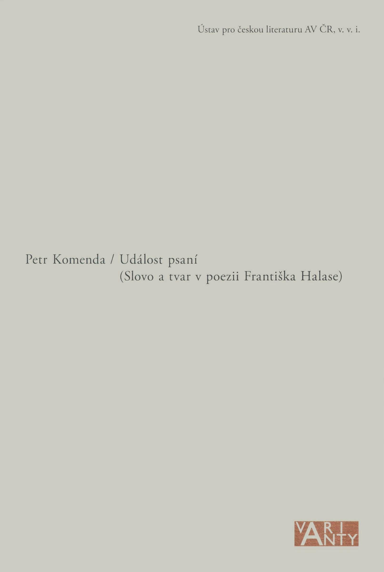 Názvové údaje Textologické studie / Miroslav Červenka ; [uspořádali, doslov a ediční komentář napsali Michal Kosák a Jiří Flaišman ; obálka a grafická úprava Markéta Jelenová] Osobní jméno Červenka, Miroslav, 1932-2005 (Autor) Další autoři Kosák, Michal, 1977- (Editor) (Autor úvodu atd.) Flaišman, Jiří, 1975- (Editor) (Autor úvodu atd.) Jelenová, Markéta, 1970- (Knižní grafik) (Autor obálky) Nakladatel Praha : Ústav pro českou literaturu AV ČR, 2009 Rozsah 293 s. ; 21 cm Klíčová slova textologie * editologie * sémiotika * stylistika * česká literatura * čeští autoři * literárněvědné studie Počet ex. 2, z toho volných 2 Druh dok. monografie Signatura C12b 12283, C12b 12283a Názvové údaje Textologie a starší česká literatura / Jiří Daňhelka ; [uspořádal, závěrečnou studii a ediční poznámku napsal, komentáře, vysvětlivky a bibliografii sestavil Jakub Sichálek ; obálka a grafická úprava Markéta Jelenová] Osobní jméno Daňhelka, Jiří, 1919-1993 (Autor) Další autoři Sichálek, Jakub, 1978- (Autor úvodu atd.) (Sestavovatel, kompilátor) (Editor) Jelenová, Markéta, 1970- (Autor obálky) (Knižní grafik) Nakladatel Praha : Ústav pro českou literaturu AV ČR, 2013 Rozsah 357 s. Klíčová slova textologie * česká literatura * středověká literatura * textová analýza * stati * korespondence * výbory * komentované vydání * Česko * stol. 5.-15. * stol. 20. Počet ex. 1, z toho volných 1 Druh dok. monografie Signatura C12b 15491 Názvové údaje Prameny Máchova Máje : fakta a hypotézy / Michal Charypar ; grafická úprava a obálka s použitím detailu serigrafie Zdeňka Sýkory ve spolupráci s Lenkou Sýkorovou k bibliofilskému vydání Máje (Praha: Aulos, 2007) Ondřej Fučík Osobní jméno Charypar, Michal, 1978- (Autor) Další autoři Fučík, Ondřej, 1977- (Autor obálky) (Knižní grafik) Sýkora, Zdeněk, 1920-2011 (Umělec) Sýkorová, Lenka, 1957- (Umělec) Korp. Akropolis - Jiří Tomáš (nakladatelství) (Nakladatel, vydavatel) S-TISK Vimperk (tiskárna) (Tiskař) Nakladatel Praha : Ústav pro českou literaturu AV ČR : Filip Tomáš - Akropolis, 2018 Výrobce Vimperk : S-Tisk, s. r. o. Rozsah 165 stran : ilustrace, faksimile ; 21 cm Osobní hesla Mácha, Karel Hynek, 1810-1836 Máj - básník, beletrista, dramatik Klíčová slova česká literatura * textologie * faktografie * studie * přehled * soupis * rukopisné prameny * tištěné prameny * Máj * Mácha K. H. * stol. 19. Počet ex. 2, z toho volných 2 Druh dok. monografie Signatura C12b 18724, C12b 18724a Názvové údaje Česká pohádka v 19. století / Dagmar Klímová, Jaroslav Otčenášek ; [překlad summary Pavla Horáková ; obálka a grafická úprava Marie Roubíčková] Osobní jméno Klímová, Dagmar, 1926-2012 (Autor) Další autoři Otčenášek, Jaroslav, 1974- (Autor) Horáková, Pavla, 1974- (Překladatel) Roubíčková, Marie (Autor obálky) (Knižní grafik) Nakladatel Praha : Etnologický ústav Akademie věd České republiky, 2012 Rozsah 149 s. : mapy Klíčová slova české pohádky * textologie * lidová slovesnost * stol. 19. * kolektivní monografie Počet ex. 1, z toho volných 0 Druh dok. monografie Signatura C12b 14263 Názvové údaje Událost psaní : (slovo a tvar v poezii Františka Halase) / Petr Komenda ; obálka a grafická úprava Markéta Jelenová Osobní jméno Komenda, Petr, 1975- (Autor) Další autoři Jelenová, Markéta, 1970- (Autor obálky) (Knižní grafik) Nakladatel Praha : Ústav pro českou literaturu AV ČR, v.v.i., 2016 Výrobce Praha : tiskárna Nakladatelství Karolinum Rozsah 462 stran : faksimile ; 21 cm Osobní hesla Halas, František, 1901-1949 - básník, esejista, redaktor, překladatel Klíčová slova česká poezie * literární tvorba * sémantika * poetika * textologie * literárněvědné rozbory * interpretace literárního díla * přijetí literárního díla Počet ex. 1, z toho volných 1 Druh dok. monografie Signatura C12b 17166 Názvové údaje Podoby textologie / [napsali, přílohu uspořádali a komentář sestavili] Michal Kosák, Jiří Flaišman ; [překlad resumé Derek Paton ; obálka a grafická úprava Markéta Jelenová] Osobní jméno Kosák, Michal, 1977- (Autor) (Sestavovatel, kompilátor) (Autor komentáře textu) Další autoři Flaišman, Jiří, 1975- (Autor) (Sestavovatel, kompilátor) (Autor komentáře textu) Paton, Derek, 1958- (Překladatel) Jelenová, Markéta, 1970- (Autor obálky) (Grafický technik) Korp. Ústav pro českou literaturu (Akademie věd ČR) (Nakladatel, vydavatel) Nakladatel Praha : Ústav pro českou literaturu AV ČR, 2010 Výrobce xPrint) Rozsah 381 s. Klíčová slova česká literatura * dějiny české literatury * literárněhistorická práce * textologie * textová analýza * textová kritika * ediční práce * novočeská literatura * stol. 19.-20. Počet ex. 1, z toho volných 1 Druh dok. monografie Signatura C12b 13714 Názvové údaje S použitím kalendáře : k bezručovské textologii Oldřicha Králíka / Michal Kosák ; [typografická osnova František Štorm] Osobní jméno Kosák, Michal, 1977- (Autor) Další autoři Štorm, František, 1966- (Typograf) Nakladatel Praha : Filozofická fakulta Univerzity Karlovy, 2013 Rozsah 190 s. Osobní hesla Králík, Oldřich, 1907-1975 - literární historik a kritik, textolog * Bezruč, Petr, 1867-1958 - básník Klíčová slova česká textologie * textologie * metody * česká literatura * stol. 19.-20. * monografie Počet ex. 1, z toho volných 1 Druh dok. monografie Signatura C12b 15014 Názvové údaje Přednášky : z 56. běhu Letní školy slovanských studií / [vědecký redaktor Milan Hrdlička ; uspořádal Jiří Hasil] Záhlaví-akce Letní škola slovanských studií (akce) (56. 2012 : Praha, Česko) (Autor) Další autoři Hrdlička, Milan, 1960- (Editor) Hasil, Jiří, 1957- (Sestavovatel, kompilátor) Korp. Nakladatels
