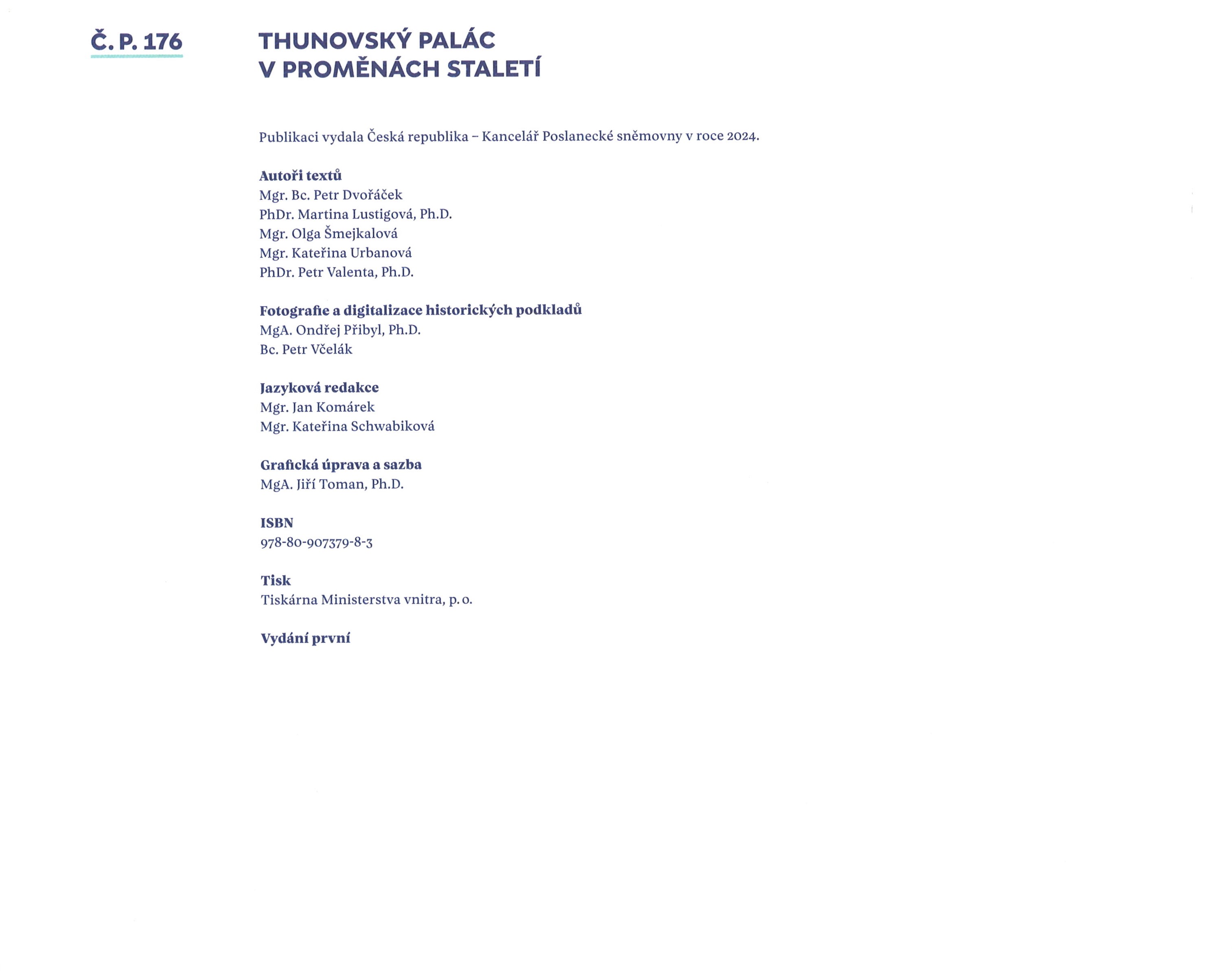 Názvové údaje Královéhradečtí biskupové a jejich rezidence / Jana Croÿ ; [překlady Jan Hildebrandt (nemčina), Derek & Marzia Paton (angličtina) ; fotografie Miroslav Podhrázský a kolektiv fotografů ; grafická úprava a sazba Ondřej Štulc] Osobní jméno Croÿ, Jana, 1959- (Autor) Další autoři Hildebrandt, Jan (Překladatel) Paton, Derek, 1958- (Překladatel) Paton, Marzia, 1953- (Překladatel) Podhrázský, Miroslav, 1961- (Fotograf) Štulc, Ondřej (Knižní grafik) (Sazeč) Korp. Garamon, s. r. o. (Hradec Králové) (Nakladatel, vydavatel) Nakladatel Hradec Králové : Garamon, 2014 Rozsah 479 s. : il. (převážně barev.), portréty, plány, mapy, faksim., erby Heslo korporace (zkrác. heslo korp.) : Katolická církev. Biskupství královéhradecké Geografické heslo Hradec Králové (Česko : oblast) Klíčová slova biskupové * diecéze * historiografie * církevní správa * církevní život * biskupské rezidence * umělecká výzdoba * křesťanství * kultura * Česko * stol. 17.-21. * monografie Počet ex. 1, z toho volných 1 Druh dok. monografie Signatura C12d 2047 Názvové údaje Obecní dům hlavního města Prahy / [fotografie Václav Jirásek, Václav Šedý ; text Václav Mikule ; graf. úpr. Robert V. Novák] Osobní jméno Jirásek, Václav, 1965- (Fotograf) Další autoři Šedý, Václav, 1955- (Fotograf) Mikule, Václav, 19-- (Autor úvodu atd.) Novák, Robert V., 1962- (Typograf) Korp. Obecní dům (Praha, Česko) Nakladatel [Praha] : Obecní dům, 2001 Výrobce (Realtisk, s.r.o.) Rozsah 413 s. : il. Klíčová slova společenské domy architektura secese umělecká výzdoba dekorace interiérů Obecní dům Praha (Česko) stol. 20. fotografické publikace Počet ex. 2, z toho volných 2 Druh dok. monografie Signatura C12d 904, NK /01 05 Názvové údaje Socha domu Jiřího Kaloče / Jiří T. Kotalík ; [koncepce knihy Jiří Kaloč a Jiří T. Kotalík ; texty Jiří T. Kotalík ; fotografie Jiří Kaloč a fotoarchiv autora ; grafická úprava Jiří Kaloč, spolupráce Robin Kaloč ; překlad Zdenka Kaločová] Osobní jméno Kotalík, Jiří T., 1951-2020 (Autor) Další autoři Kaloč, Jiří, 1943-2025 (Umělec) Kaločová, Zdenka (Překladatel) Korp. ARGUS, spol. s r.o. (Praha) (Nakladatel, vydavatel) Graspo (tiskárna) (Tiskař) Nakladatel Praha : Argus, spol. s r. o., 2008 Výrobce Graspo CZ, a. s.) Rozsah 141 s. : barev. il., portrét, plány ; 31 cm Osobní hesla Kaloč, Jiří, 1943-2025 - malíř Chronologie 1967-2006 Předmětová hesla výtvarní umělci - Česko - 20.-21. stol * obytné domy - Česko * umělecké ateliéry - Česko * zahrady - Česko * rekonstrukce staveb - Česko - 20.-21. stol * umělecká výzdoba - Česko - 20.-21. stol Geografické heslo Vrbice (Rychnov nad Kněžnou, Česko) Klíčová slova české výtvarné umění * čeští výtvarníci * čeští malíři * Kaloč J. * budování * architektura domu * fotografická publikace * fotografické dokumenty * fotografické zobrazení * dům Počet ex. 1, z toho volných 1 Druh dok. monografie Signatura C12d 1640 Názvové údaje Břevnovský klášter : historie kláštera, průvodce, benediktinský život / text Jan Royt, Anselm Skřivánek OSB, Ondřej Koupil ; foto M. Antůšková ... [et al.] Osobní jméno Royt, Jan, 1955- (Autor) Další autoři Skřivánek, Anselm (Autor) Koupil, Ondřej, 1972- (Autor) Antůšková, Michaela, 1961- (Fotograf) Nakladatel V Praze : Benediktinské arciopatství sv. Vojtěcha a sv. Markéty, 2011 Výrobce Label) Rozsah 32 s. : il. (převážně barev.), portréty ; 21 cm Heslo korporace (zkrác. heslo korp.) : Břevnovský klášter Geografické heslo Břevnov (Praha, Česko) Klíčová slova benediktinské kláštery * církevní památky * církevní architektura * umělecká výzdoba * řeholní život * benediktinský řád * historie kláštera * stol. 10.-21. * Česko * průvodce Počet ex. 1, z toho volných 1 Druh dok. monografie Signatura C12b 13637 Názvové údaje Č. p. 176 : Thunovský palác v proměnách staletí / autoři textů Petr Dvořáček, Martina Lustigová, Olga Šmejkalová, Kateřina Urbanová, Petr Valenta Osobní jméno Dvořáček, Petr, 1983- (Autor) Další autoři Lustigová, Martina, 1978- (Autor) Šmejkalová, Olga, 1979- (Autor) Urbanová, Kateřina (Autor) Valenta, Petr, 1979- (Autor) Korp. Česká republika - Kancelář Poslanecké sněmovny (Nakladatel, vydavatel) Tiskárna Ministerstva vnitra (Tiskař) Nakladatel [Praha] : Česká republika - Kancelář Poslanecké sněmovny, 2024 Výrobce Tiskárna Ministerstva vnitra Rozsah 151 stran (některé složené) : ilustrace (převážně barevné), portréty, plány, faksimile ; 22 x 27 cm Heslo korporace (zkrác. heslo korp.) : Thunovský palác (Praha, Česko) * Česko. Parlament. Poslanecká sněmovna Klíčová slova kulturní památky * architektonické památky * paláce * umělecká výzdoba * dějiny * stol. 17.-21. * parlament * Praha * výstavy * katalogy výstav * obrazové publikace Počet ex. 1, z toho volných 1 Druh dok. monografie Signatura LITb 02695 Názvové údaje Fotografovy hřbitovní zážitky / Richard Ulman ; fotografie Richard Ulman ; grafická úprava, tisk: Simona Ullspergerová Osobní jméno Ulman, Richard, 1954- (Autor) (Fotograf) (Nakladatel, vydavatel) Další autoři Ullspergerová, Simona, 1973- (Knižní grafik) (Tiskař) Nakladatel V Praze : vlastním nákladem autora, 2024 Výrobce [Praha] : Simona Ullspergerová Rozsah 89 stran : barevné ilustrace, fotografie ; 15 cm Předmětová hesla tombstones - Czechia * graves - Czechia * artistic decoration - Czechia Klíčová slova fotografická publikace * čeští fotografové * fotografie * hřbitovy * funerální architektura * funerální plastika * hroby * náhrobky * ozdobné prvky * umělecká výzdoba * umělecké ztvárnění * Česko * stol. 21. Počet ex. 1, z toho volných 1 Druh dok. monografie Signatura LITa 0498 Názvové údaje Fr