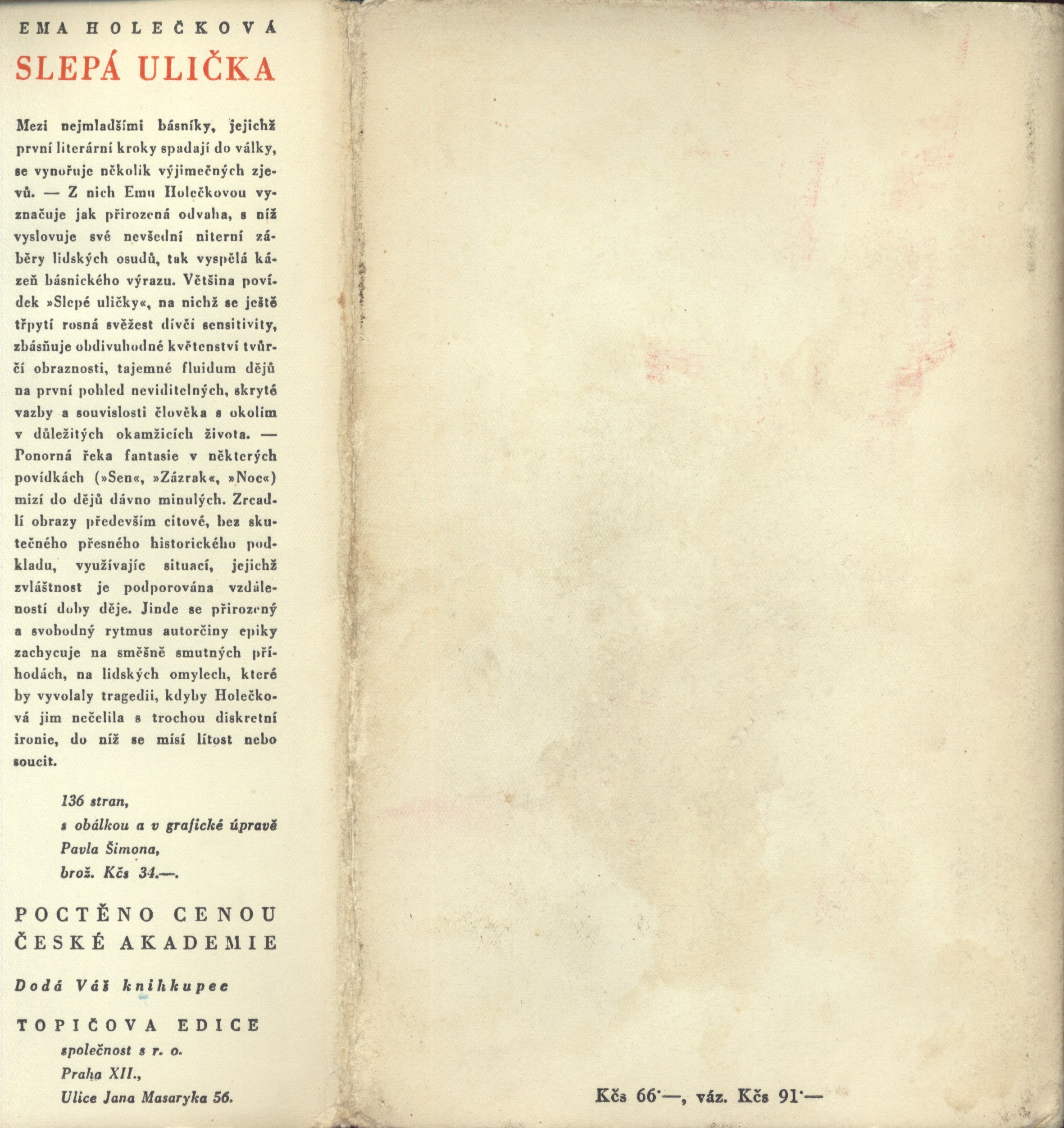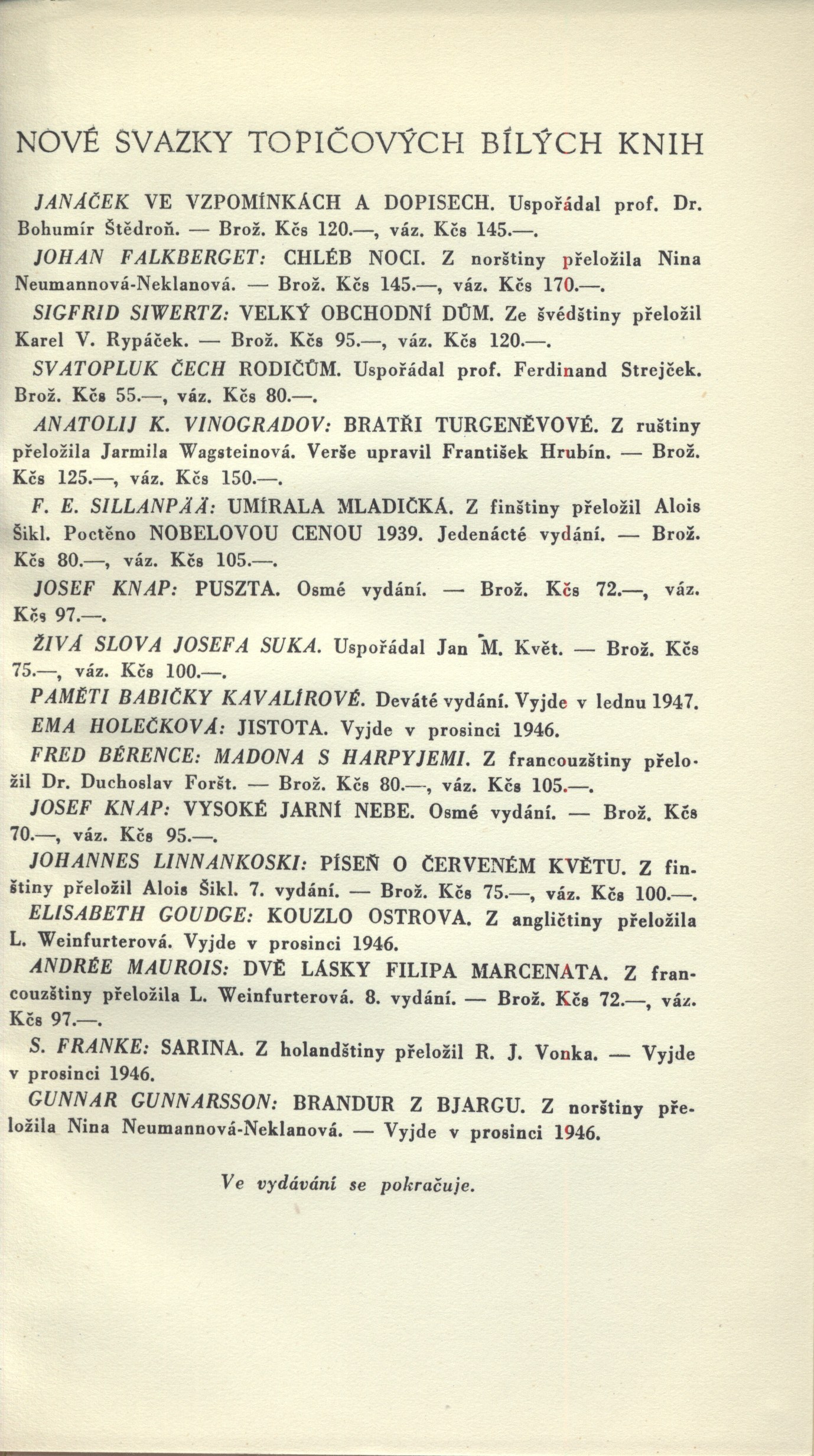 Názvové údaje Bratři Ramazovi / Egon Bondy Osobní jméno Bondy, Egon, 1930-2007 (Autor) (Dedikátor) (Autor podpisu) Další autoři Kantůrková, Eva, 1930- (Dedikant) Nakladatel Praha : [nakladatel není známý], 1985 Rozsah 148 stran ; 21 cm Klíčová slova česká literatura * samizdatová literatura * samizdat * filozofická próza * vesnické prostředí * Česko * stol. 20., 2. pol. Počet ex. 1, z toho volných 1 Druh dok. monografie Signatura Kantůrková 0174 Názvové údaje Kamenín : lidová kronika / Karel Dobeš ; [ilustrace přebal a vazbu navrhl Karel Pokorný] Osobní jméno Dobeš, Karel, 1922-2002 (Autor) Další autoři Pokorný, Karel, 1944-2018 (Ilustrátor) Slabý, Zdeněk Karel, 1930-2020 (Dedikant) Korp. Svobodné slovo (nakladatelství) (Nakladatel, vydavatel) Nakladatel Praha : Svobodné slovo, 1966 Výrobce Tisk) Rozsah 211 s. : il. Klíčová slova česká próza * vesnické prostředí * románová kronika Počet ex. 2, z toho volných 2 Druh dok. monografie Signatura MEL 0533, ZKSlabý 0528 Názvové údaje Hanácké povídky / Antoš Dohnal ; [s doslovem Bedřicha Slavíka ; typografická úprava, obálka a vazba jsou provedeny podle návrhu Jindřicha Štyrského] Osobní jméno Dohnal, Antoš, 1824-1863 (Autor) Další autoři Slavík, Bedřich, 1911-1979 (Autor doslovu, tiráže atd.) Štyrský, Jindřich, 1899-1942 (Typograf) (Autor obálky) (Výtvarník vazby) Korp. Evropský literární klub (nakladatelství) (Nakladatel, vydavatel) Müller a spol. (tiskárna) (Tiskař) Nakladatel Praha : Evropský literární klub, 1940 Výrobce Müller a spol.) Rozsah 274 s. : il. ; 22 cm Osobní hesla Hansmann, Leopold Josef, 1824-1863 - prozaik, básník, dramatik, novinář, překladatel Klíčová slova česká literatura * próza * povídky * Morava * Haná * vesnické prostředí * humorné povídky * stol. 19. Počet ex. 1, z toho volných 1 Druh dok. monografie Signatura ELK 0237 Názvové údaje Naši / Josef Holeček ; [k vydání připravil František Hanuš ; doslov napsal Julius Dolanský]. Kniha druhá, Bartoň Osobní jméno Holeček, Josef, 1853-1929 (Autor) Další autoři Hanuš, František, 1908-1988 (Editor) Dolanský, Julius, 1903-1975 (Autor úvodu atd.) Nakladatel Praha : Ministerstvo informací a osvěty : Orbis, 1950 Rozsah 470 s. Osobní hesla Holeček, Josef, 1853-1929 - básník, prozaik, překladatel, publicista Klíčová slova česká literatura * próza * historické romány * biografické vzpomínky * vesnické prostředí * společenské změny * národní obrození * jižní Čechy * stol. 19. Počet ex. 1, z toho volných 1 Druh dok. monografie Signatura MUK 1181 Názvové údaje Jistota : román / Ema Holečková ; [dřevoryt a grafická úprava Cyrila Boudy] Osobní jméno Holečková, Ema, 1922-2009 (Autor) Další autoři Bouda, Cyril, 1901-1984 (Ilustrátor) (Knižní grafik) Korp. Topičova edice (nakladatelství) (Nakladatel, vydavatel) Jiří Jelen (tiskárna) (Tiskař) Nakladatel V Praze : Topičova edice, společnost s r. o., 1946 Výrobce Knihtiskárna Jiřího Jelena) Rozsah 197 s. : il. ; 22 cm Klíčová slova česká literatura * próza * román * vesnické prostředí Počet ex. 1, z toho volných 1 Druh dok. monografie Signatura Topič 0186 Názvové údaje Kornet a dívka / Otakar Chaloupka ; [přebal a vazbu navrhl Václav Sivko ; graficky upravil Karel ivina] Osobní jméno Chaloupka, Otakar, 1935-2013 (Autor) Další autoři Sivko, Václav, 1923-1974 (Autor obálky) Divina, Karel, 1936- (Knižní grafik) Slabý, Zdeněk Karel, 1930-2020 (Dedikant) Korp. Mladá fronta (nakladatelství) (Nakladatel, vydavatel) Nakladatel Praha : Mladá fronta, 1970 Výrobce (Mír 6) Rozsah 90 s. Klíčová slova česká próza * lyrická próza * vesnické prostředí Počet ex. 1, z toho volných 1 Druh dok. monografie Signatura ZKSlabý 0607 Názvové údaje Zátoka : vesnické románky / Viktor K. Jeřábek Osobní jméno Jeřábek, Viktor Kamil, 1859-1946 (Autor) (Autor podpisu) Další autoři Fr. Borový (firma) (Nakladatel, vydavatel) Polygrafia (nakladatelství a tiskárna, Brno) (Tiskař) Nakladatel V Praze : nakladatel Fr. Borový, 1927 Výrobce tisk Polygrafie) Rozsah 462, [6] s. ; 17,5 cm Klíčová slova česká literatura * próza * povídky * vesnické prostředí Počet ex. 1, z toho volných 1 Druh dok. monografie Signatura AFB 0413 Názvové údaje Příspěvek k psychologii českého lidu : "Naši" od Josefa Holečka / podává Josef Karásek Osobní jméno Karásek, Josef, 1868-1916 (Autor) Další autoři Akciová moravská knihtiskárna (Brno) (Tiskař) Nakladatel V Brně : Morav. Orlice, 1907 Výrobce (Mor. akciová knihtiskárna) Rozsah 53 s. ; 8° Osobní hesla Holeček, Josef, 1853-1929 - básník, prozaik, překladatel, publicista Klíčová slova čeští spisovatelé * dílo * literární rozbory * vesnické prostředí * český lid * psychologie Počet ex. 3, z toho volných 3 Druh dok. monografie Signatura M 75 e 78, M 89 g 161, M 98 g 18