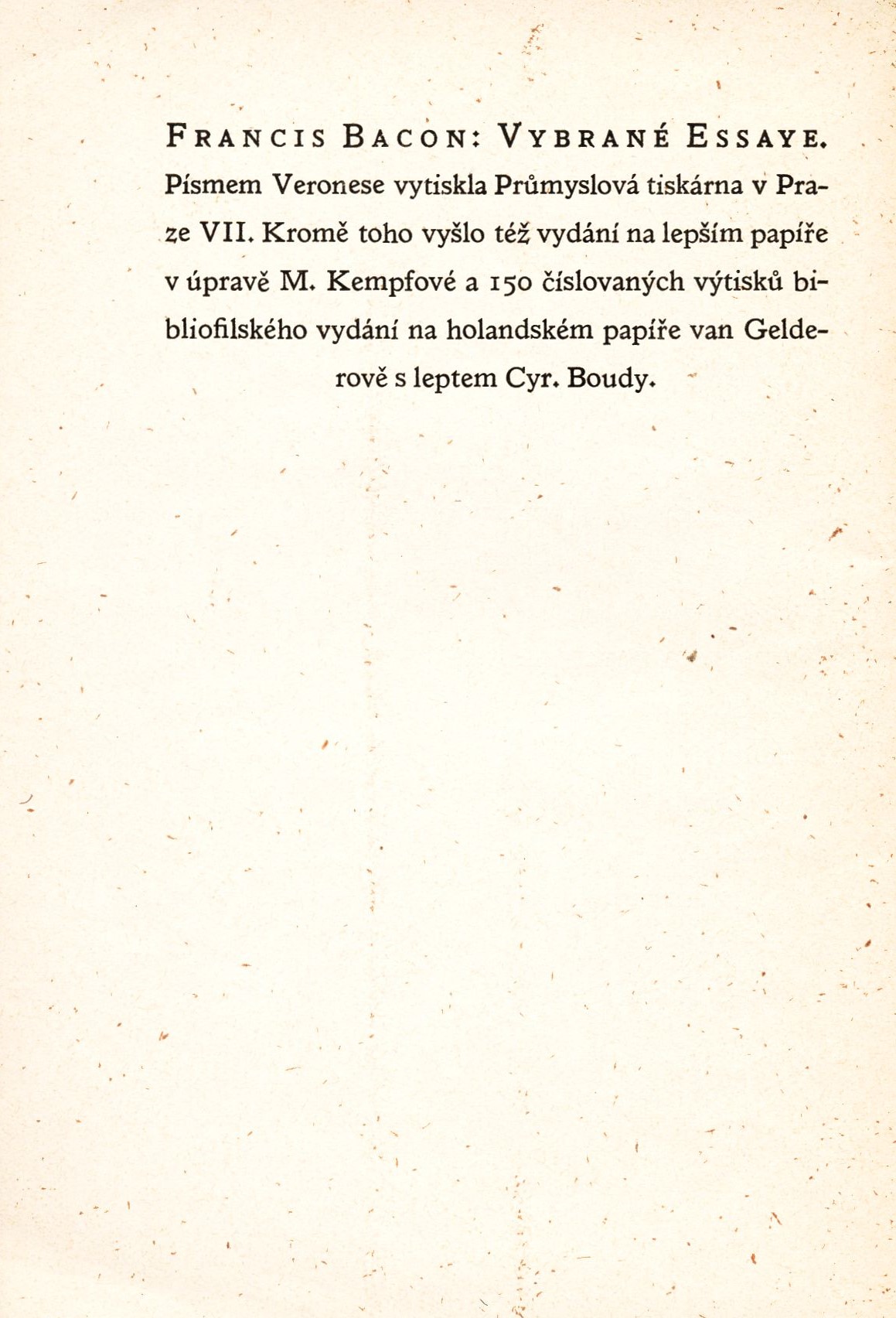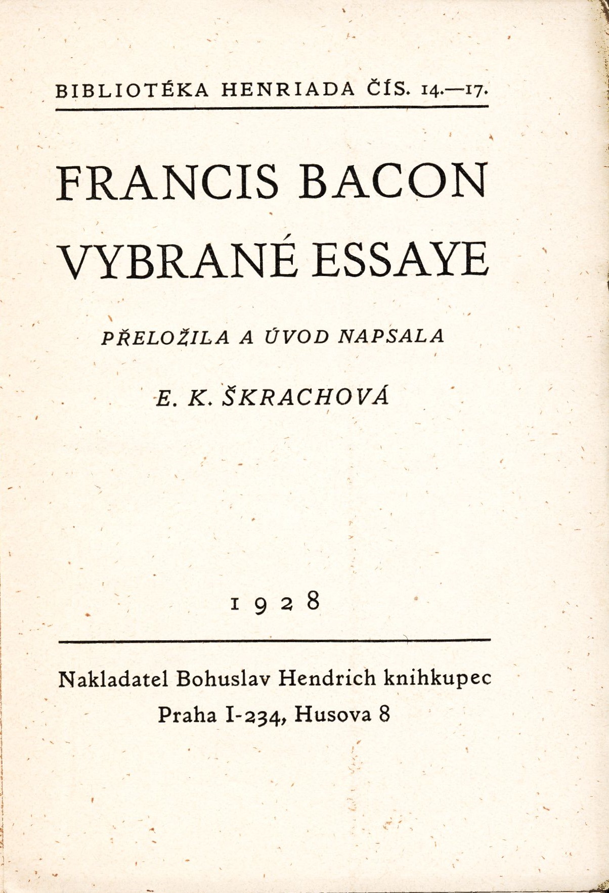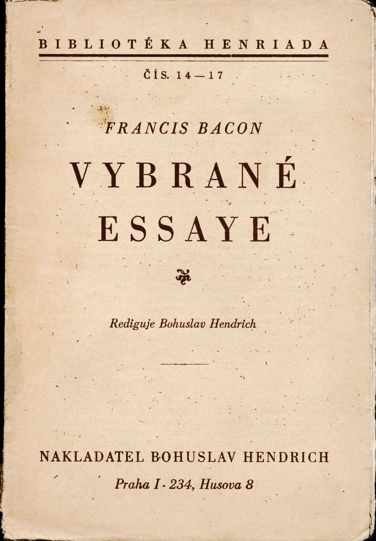 Názvové údaje Historie ZOO Praha : prvních 40 zápasů a úspěchů / Romana Anděrová ; [text Romana Anděrová s využitím textů J. Felixe ; foto Archiv ZOO ... [et al.] ; grafická úprava Vladimír Veselý] Osobní jméno Anděrová, Romana, 1951- (Autor) Další autoři Veselý, Vladimír (Knižní grafik) Korp. Zoologická zahrada Praha (Nakladatel, vydavatel) Těšínské papírny, s.r.o. (tiskárna) (Tiskař) Nakladatel Praha : Zoologická zahrada hl. m. Prahy, 2008 Výrobce Těšínské papírny, s. r. o.) Rozsah 96 s. : il. (některé barev.), faksim., portréty ; 17,8 cm Heslo korporace (zkrác. heslo korp.) : Zoologická zahrada Praha Předmětová hesla zoologické zahrady * dějiny Klíčová slova česká literatura * zoologická zahrada, Praha * historie * fotografická publikace * r. 2008 Počet ex. 1, z toho volných 1 Druh dok. monografie Signatura C12a 4439 Názvové údaje Vybrané essaye / Francis Bacon ; přeložila E. K. Škrachová Osobní jméno Bacon, Francis, 1561-1626 (Autor) Další autoři Škrachová, Ema, nar. 1891 (Překladatel) Bouda, Cyril, 1901-1984 (Knižní grafik) (Ilustrátor) Korp. Bohuslav Hendrich (nakladatelství) (Nakladatel, vydavatel) Průmyslová tiskárna v Praze (Tiskař) Nakladatel Praha : nakladatel Bohuslav Hendrich, 1928 Výrobce V Praze : Průmyslová tiskárna Rozsah 103 stran, 1 nečíslovaný list obrazové přílohy : ilustrace ; 16 cm Klíčová slova filozofie * anglická literatura * Bacon F. * eseje * esejistické texty * zahrady * český překlad * Škrachová E. K. Počet ex. 4, z toho volných 4 Druh dok. monografie Signatura VHB 0005, AHO 0066, M 47 g 28, M 126 f 11 Názvové údaje Pražské zahrady / Olga Bašeová ; Fotogr. Ladislav Neubert ; Uměleckohistorický katalog obr. části zprac. Milada Vilímková ; Obálka, vazba a graf. úpr. Miloslav Fulín Osobní jméno Bašeová, Olga, 1934- (Autor) Další autoři Neubert, Ladislav, 1927-2013 (Autor) Vilímková, Milada, 1921-1992 (Autor komentáře) Fulín, Miloslav, 1928-2019 (Grafický technik) Nakladatel Praha : Panorama, 1991 Výrobce Svoboda) Rozsah 247 s. : fot Osobní hesla Bašeová, Olga, 1934- - práce z oboru památkové péče a pozemního stavitelství * Bašeová, Olga, 1934- - práce z oboru památkové péče a pozemního stavitelství * Bašeová, Olga, 1934- - práce z oboru památkové péče a pozemního stavitelství Klíčová slova česká literatura * Praha * zahrady * vývoj * obrazové publikace Počet ex. 1, z toho volných 1 Druh dok. monografie Signatura NK/91 0008 Názvové údaje Gardens of Pompeii / Annamaria Ciarallo ; [translated by Lori-Ann Touchtte] Osobní jméno Ciarallo, Annamaria (Autor) Další autoři Touchette, Lory-Ann (Překladatel) Nakladatel Los Angeles : J. Paul Getty Museum, 2001 Rozsah 73 s. : il. Klíčová slova starověký Řím * Pompeje * archeologické památky * zahrady Počet ex. 1, z toho volných 1 Druh dok. monografie Signatura C12c 2115 Názvové údaje Malostranské zahrady : 12 původních litografií Petra Dillingra / Petr Dillinger ; s úvodem E. Poche Osobní jméno Dillinger, Petr, 1899-1954 (Ilustrátor) Další autoři Poche, Emanuel, 1903-1987 (Autor úvodu atd.) Nakladatel Praha : A.L. Jirout, 1948 Rozsah 12 volných dvoulistů v kartonových deskách ; příč. 8° Klíčová slova Malá Strana (Praha) * zahrady * grafika * čeští grafici * Dillinger P. * litografie Počet ex. 1, z toho volných 1 Druh dok. monografie Signatura Václavek 2307 Názvové údaje Historické zahrady v Čechách a na Moravě / Zdeněk Dokoupil ... [et al. ; předmluva Zdeněk Wirth ; fotografie Zdeněk Dokoupil ... et al.] Osobní jméno Dokoupil, Zdeněk, 1929-1956 (Autor) (Fotograf) Další autoři Wirth, Zdeněk, 1878-1961 (Autor úvodu atd.) Korp. Nakladatelství československých výtvarných umělců (Nakladatel, vydavatel) Nakladatel Praha : Nakladatelství československých výtvarných umělců, 1957 Výrobce Brněn. knihtisk., z.z) Rozsah 67 s., [118] s. fot. příl. ; 4° + [1] mp. Klíčová slova Čechy a Morava * zahradní architektura * okrasné zahrady * zahrady * historie Počet ex. 1, z toho volných 1 Druh dok. monografie Signatura K K I 69 Názvové údaje Plants in the Getty´s central garden / Jim Duggan ; garden photography by Becky Cohen ; with additional photography by Jim Duggan ; foreword by Robert Irwin Osobní jméno Duggan, Jim, 19-- (Autor) (Fotograf) Další autoři Cohen, Becky (Fotograf) Irwin, Robert, 1928-2023 (Autor úvodu atd.) Nakladatel Los Angeles : The J. Paul Getty Museum, 2003 Rozsah 149 s. : il. Klíčová slova zahrady * parky * zahradní architektura * obrazové publikace * Los Angeles Počet ex. 1, z toho volných 1 Druh dok. monografie Signatura C12c 1805