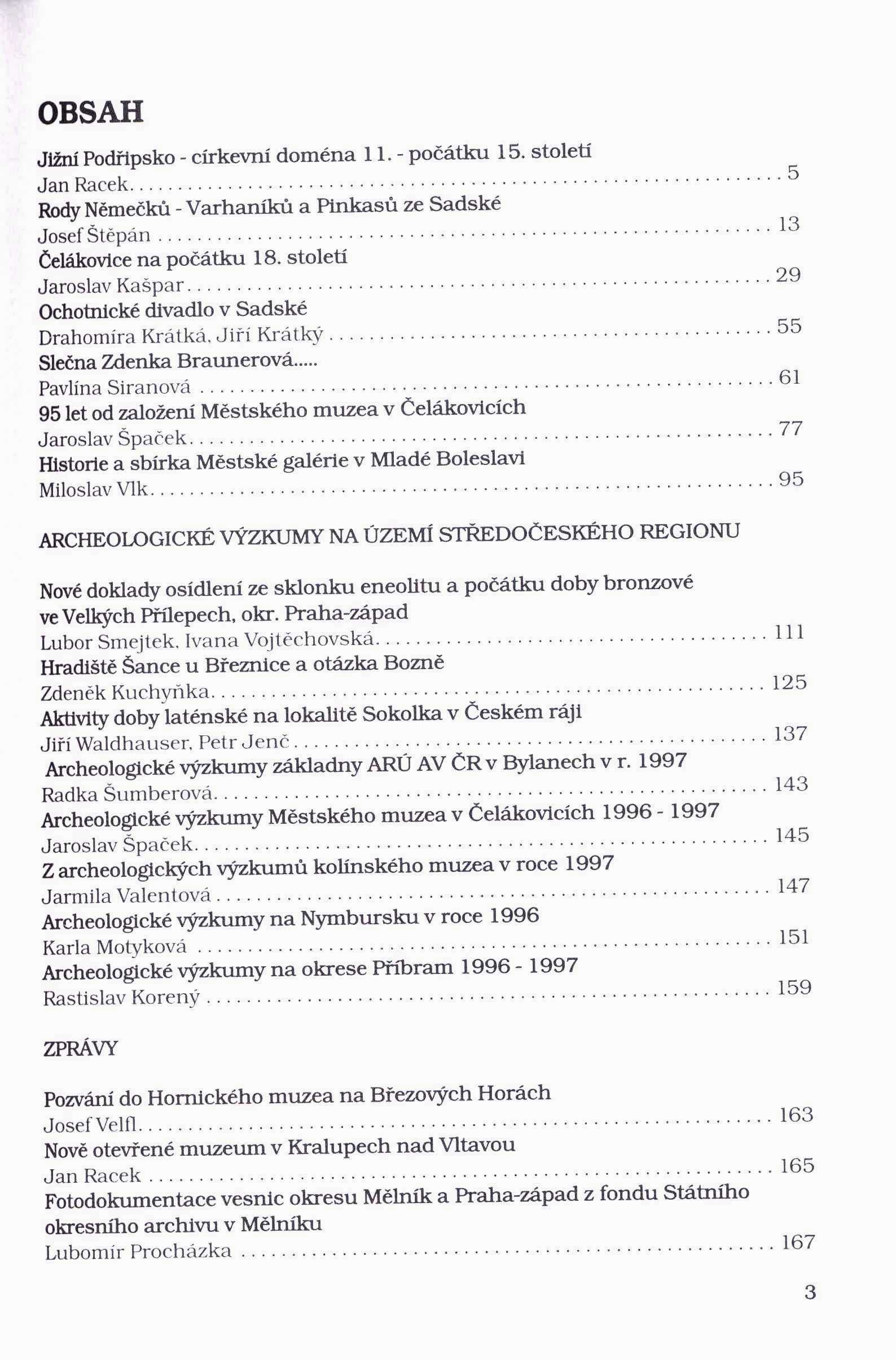 Keywords česká literatura * Středočeský kraj * vlastivěda * historie kraje * archeologické výzkumy * r. 1998 * vlastivědný sborník