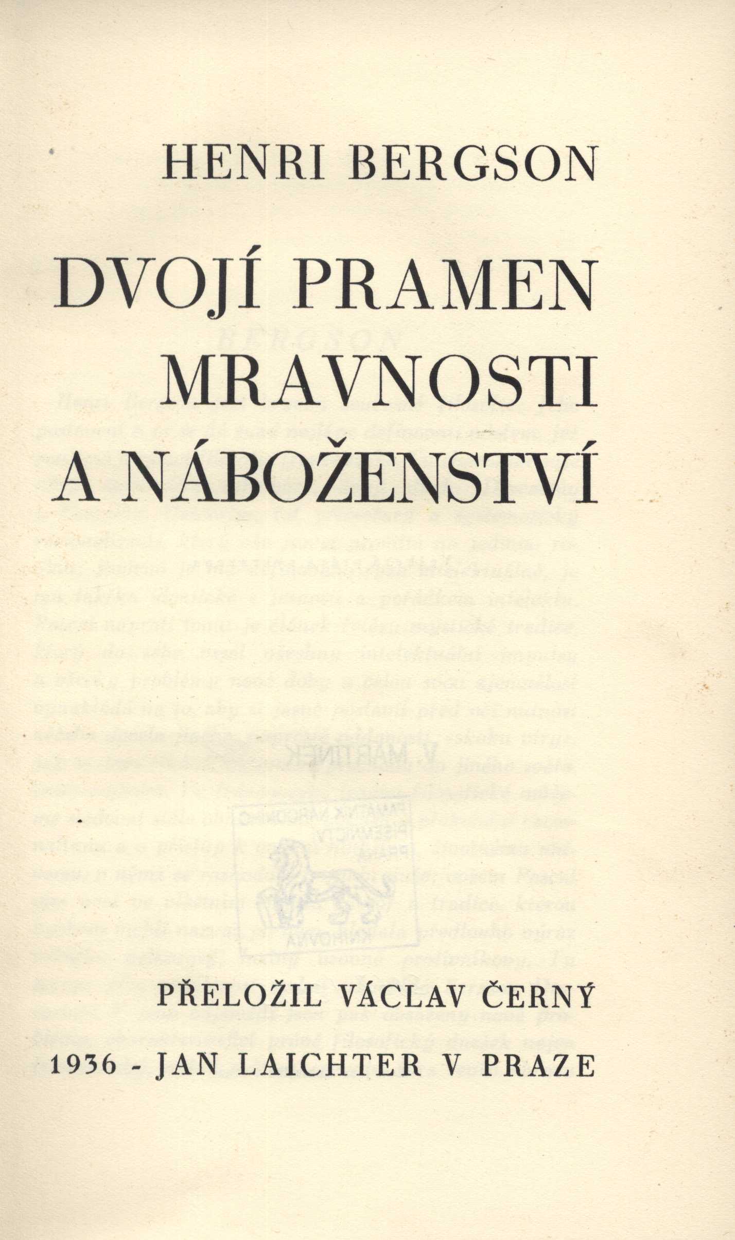 1. Title informationDvojí pramen mravnosti a náboženství / Henri Bergson ; přeložil Václav Černý