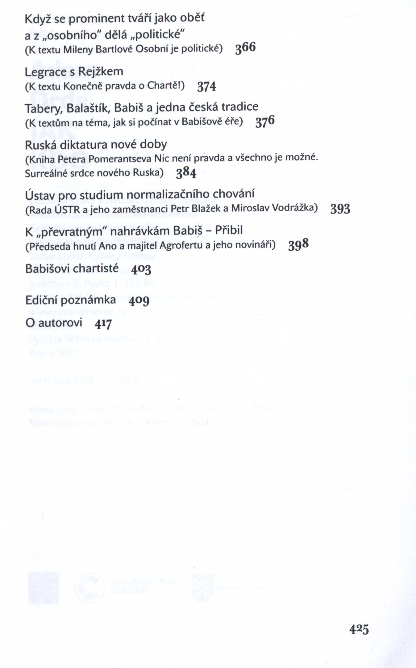 Keywords kultura * kulturní dění * společenská situace * politické dění * Česko * stol. 20., léta 90.-stol. 21. * kulturně politické články * výbory * r. 1996-2017
