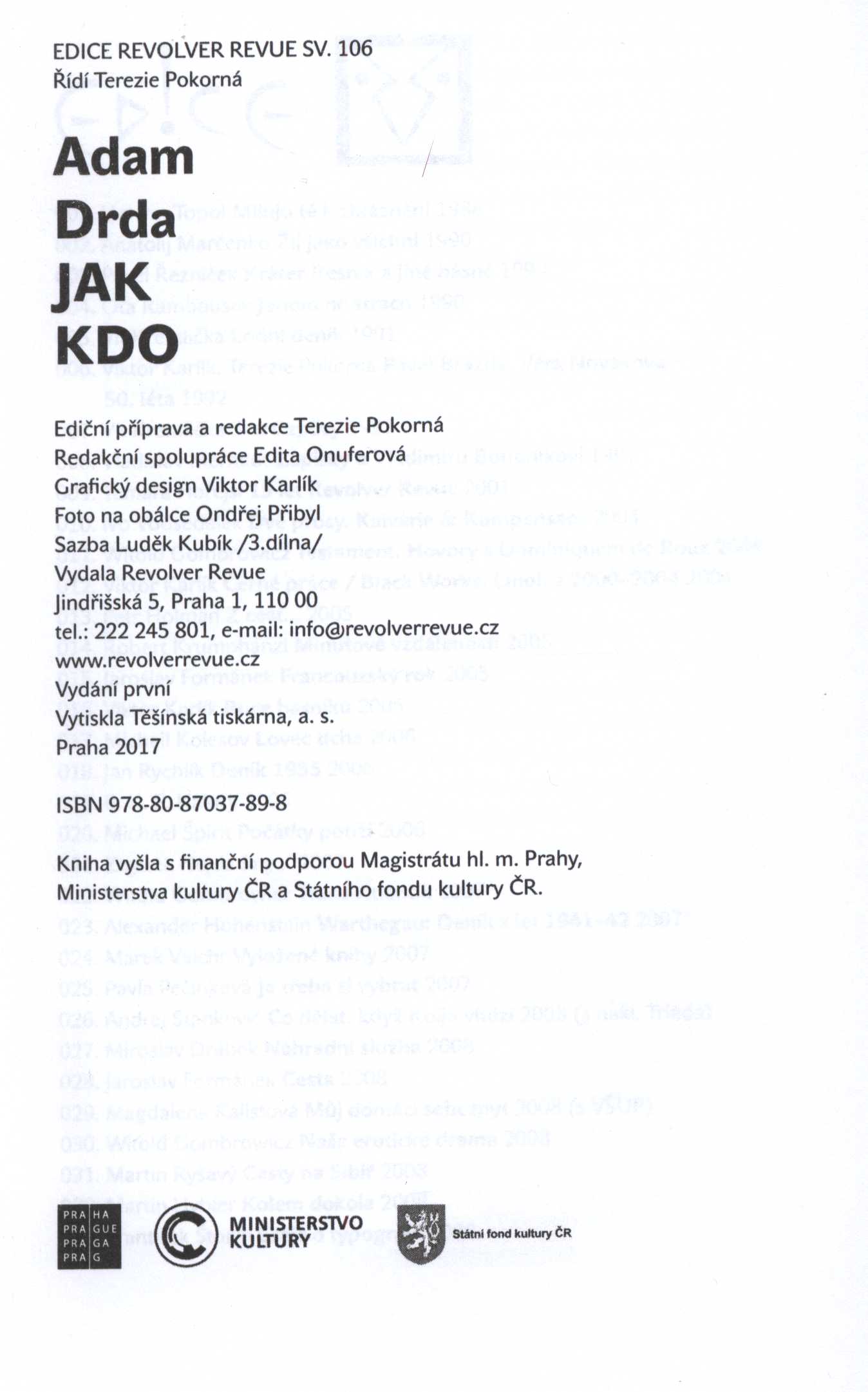 Title informationJak kdo / Adam Drda ; ediční příprava a redakce Terezie Pokorná ; grafický design Viktor Karlík