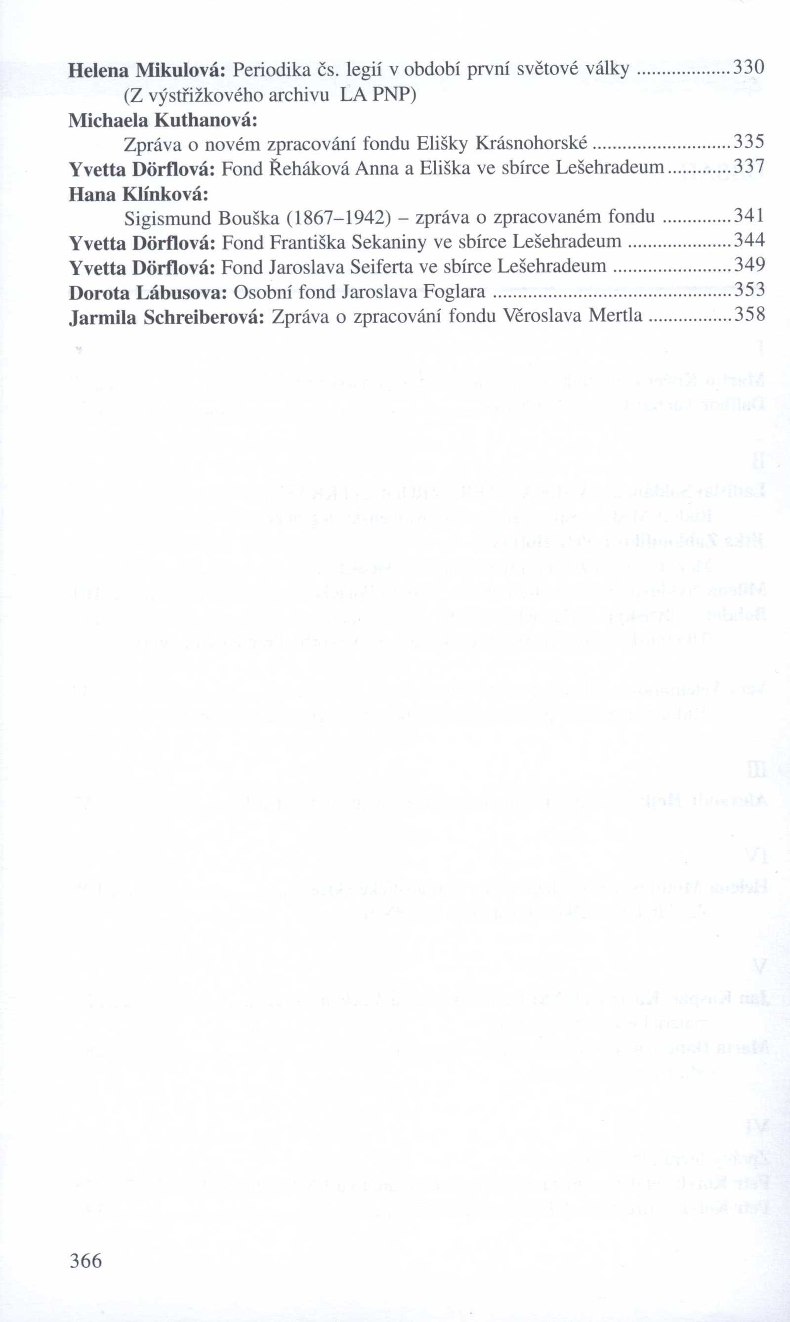 1. Title informationLiterární archiv : sborník Památníku národního písemnictví = Jahrbuch des Museums der tschechischen Literatur = Annual of the Museum of the Czech Literature = Almanach du Musée de la Littérature Tchèque. Legie a múzy : k historii československých zahraničních vojsk v letech 1914-1920 / odpovědná redaktorka Jarmila Schreiberová ; grafická úprava David Martinek, Zdeněk Freisleben ; obálka a technická redakce Zdeněk Freisleben.