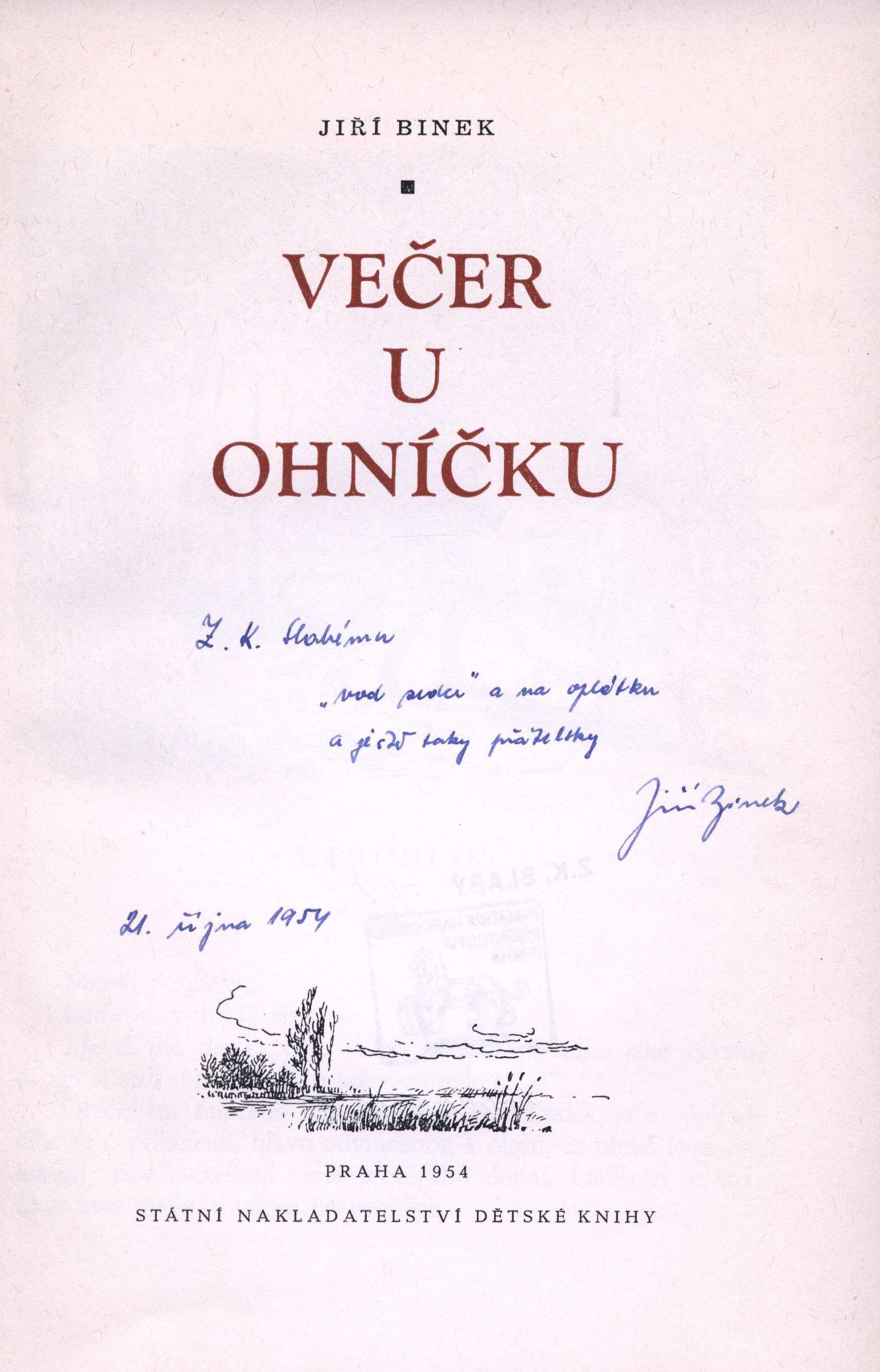 1. Title informationVečer u ohníčku / Jiří Binek ; [ilustroval a obálku navrhl Jaroslav Baumbruck]