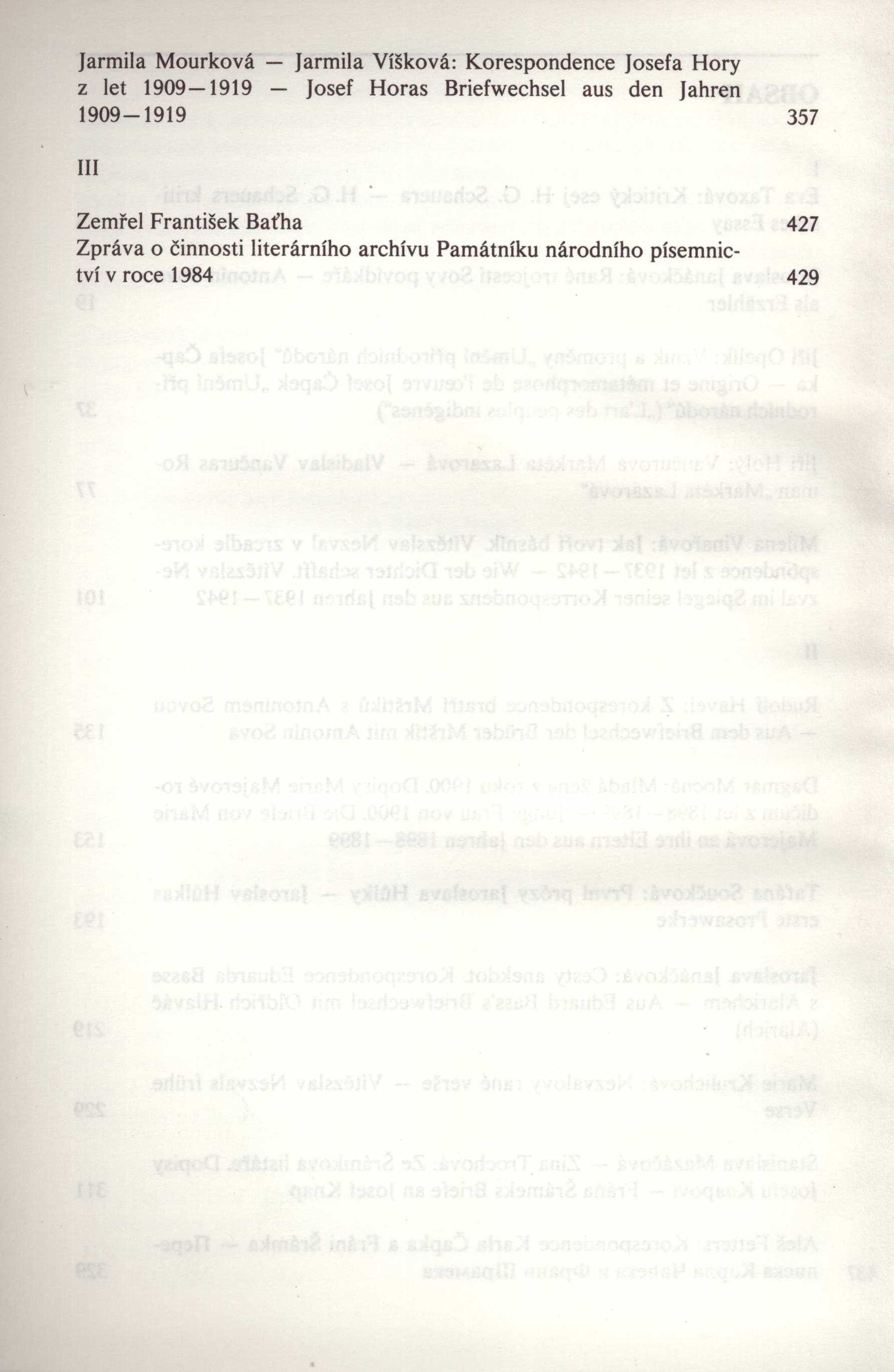 Keywords česká literatura * čeští spisovatelé * korespondence * historické studie * r. 1984-1985 * literární sborníky