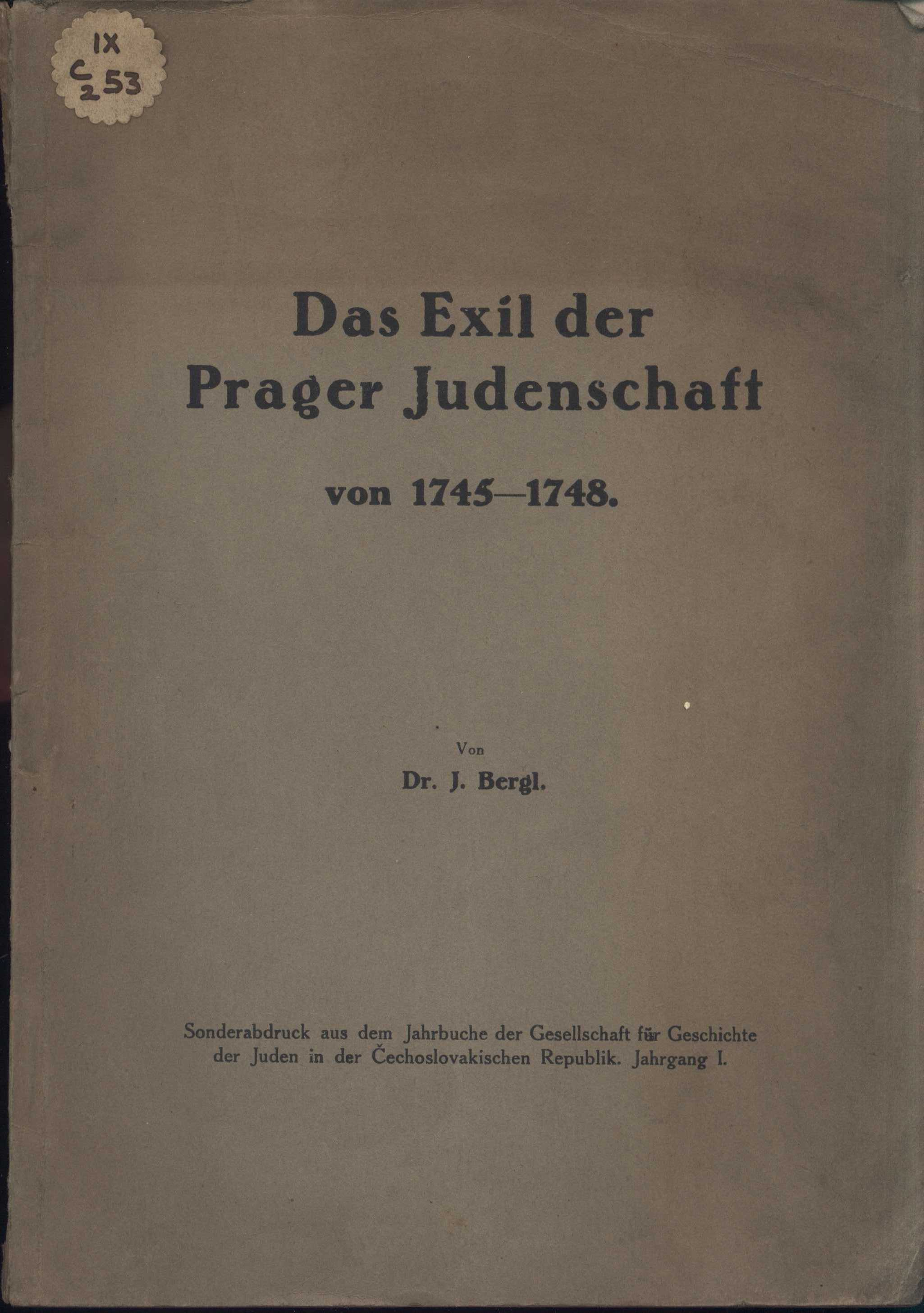 1. Title informationDas Exil der Prager Judenschaft von 1745-1748 / von J. Bergl
