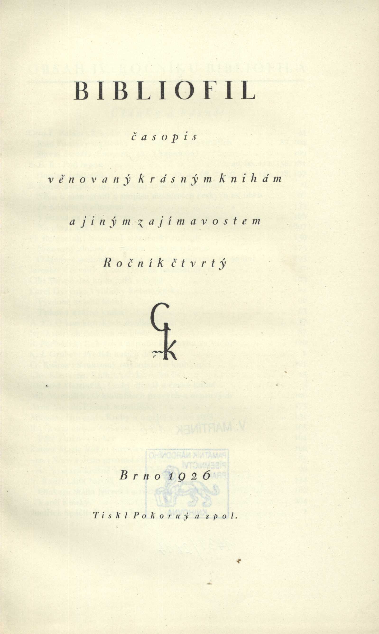 | Title information | Bibliofil : časopis věnovaný krásným knihám a jiným zajímavostem