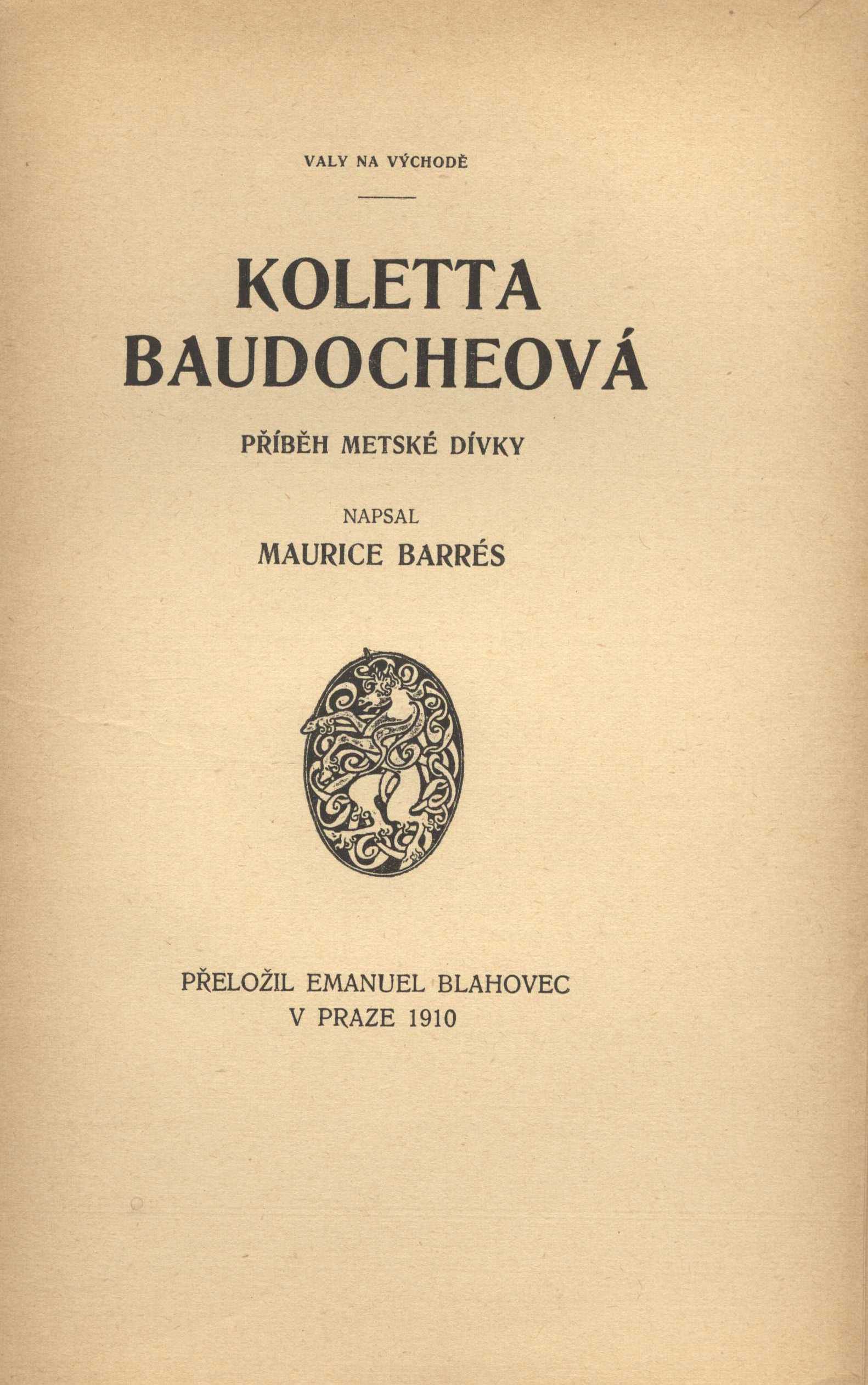 1. Title informationKoletta Baudocheová : příběh metské dívky / napsal Maurice Barrés ; přeložil Emanuel Blahovec