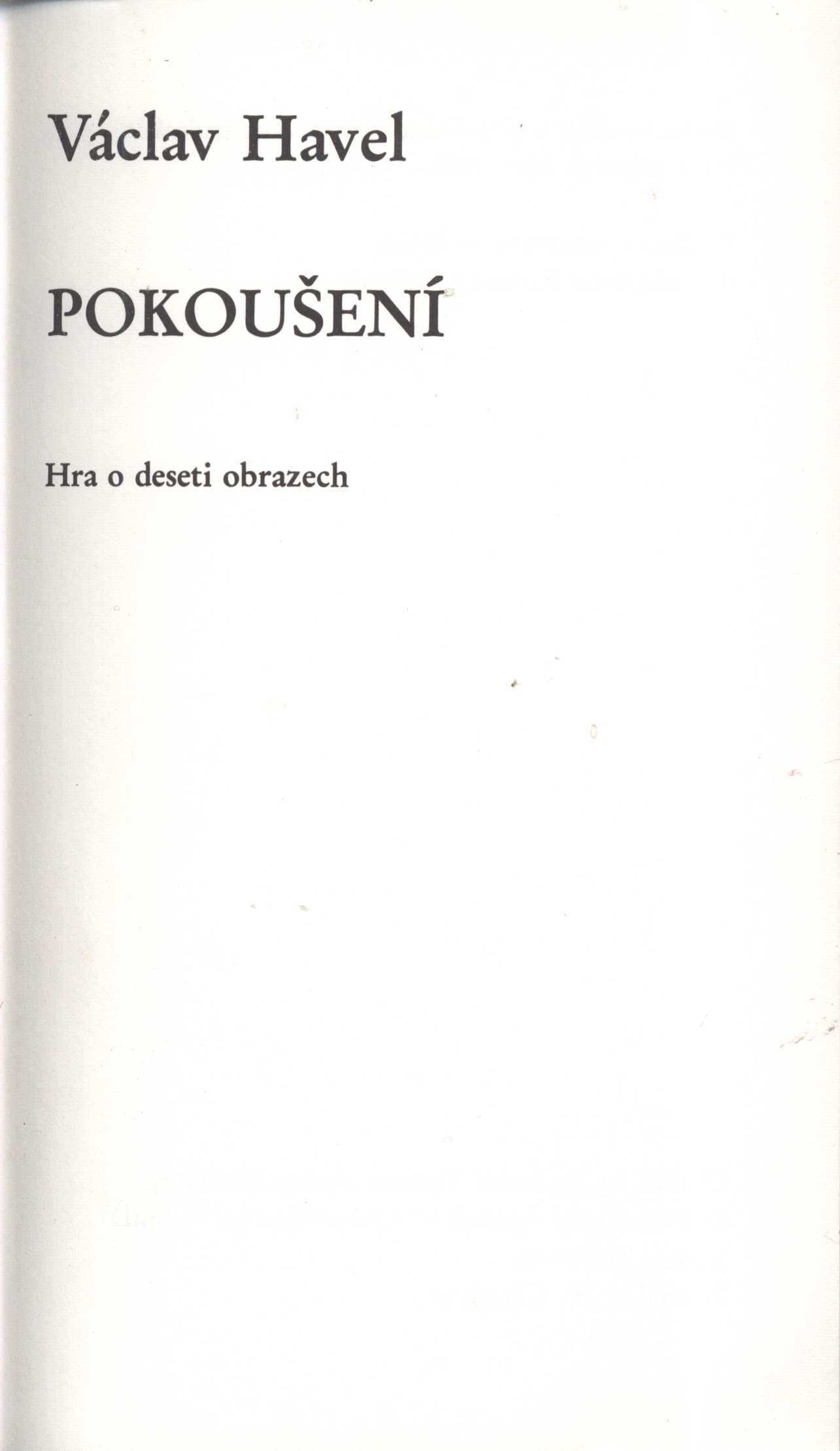 1. Title informationPokoušení : hra o deseti obrazech / Václav Havel ; [ilustrace v patitulu Jiří Šlitr ; obálka Vladimír Milev ; typografie Vlasta Herrmannová]