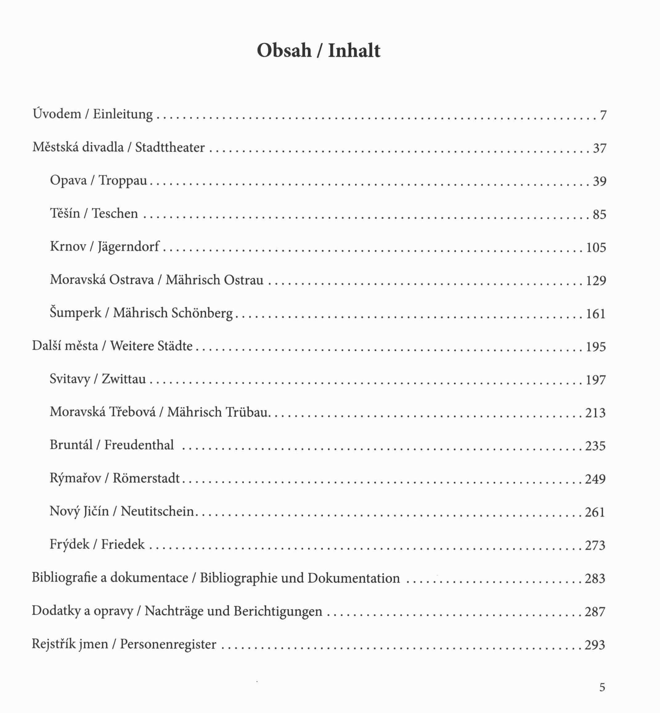 | Title information | Německojazyčné divadlo na Moravě a ve Slezsku = Deutschsprachiges Theater in Mähren und Schlesien. 3/3, Opava, Těšín, Krnov, Moravská Ostrava, Šumperk, Svitavy, Moravská Třebová, Bruntál, Rýmařov, Nový Jičín, Frýdek = Troppau, Teschen, Jägerndorf, Mährisch Ostrau, Mährisch Schönberg, Zwittau, Mährisch Trübau, Freudenthal, Fömerstadt, Neutitschen, Friedek / Margita Havlíčková, Sylva Pracná, Jiří Štefanides ; [přeložili Silvie Jašková a Wolfgang Spitzbardt ; návrh a grafické zpracování obálky Jiří Jurečka]