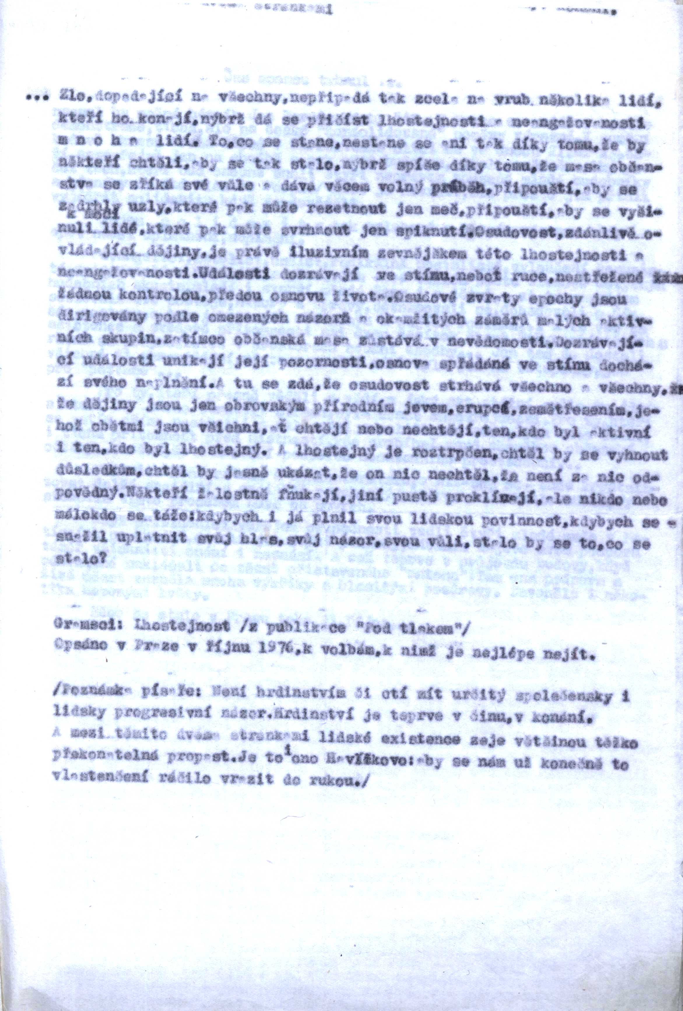 Keywords česká literatura * samizdatová literatura * samizdat * úvahy * dopisy * fejetony * r. 1976