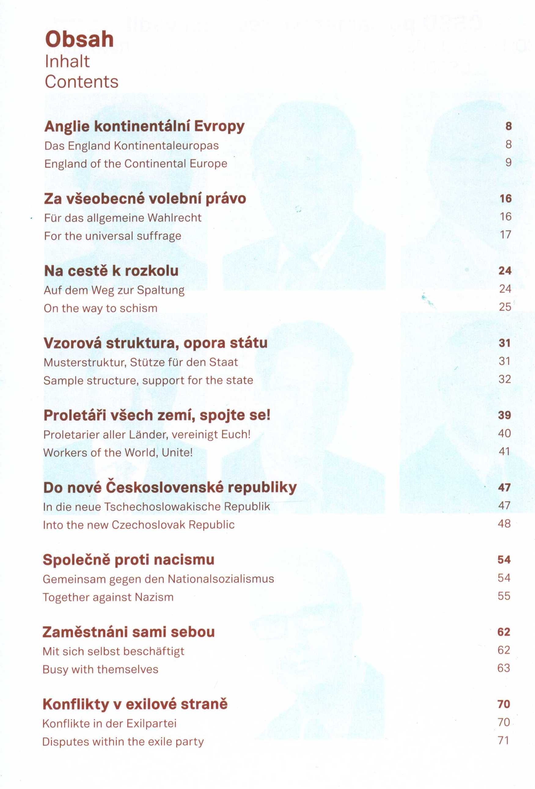 | Title information | Za svobodu, spravedlnost a solidaritu : dějiny sociální demokracie v českých zemích = Für Freiheit, Gerechtigkeit und Solidarität : die Geschichte der Sozialdemokratie in den böhmischen Ländern = For freedom, justice and solidarity : history of Social democracy in the Czech lands / autory textů jsou Patrik Eichler, Pavel Horák, Rudolf Kučera, Jan Mervart, Thomas Oellermann, Martin Polášek, Vítězslav Sommer, Radka Šustrová, Ondřej Vojtěchovský a Tomáš Zahradníček ; překlad do anglického jazyka Jana Bímová ; překlad do německého jazyka David Růžička a Thomas Oellermann