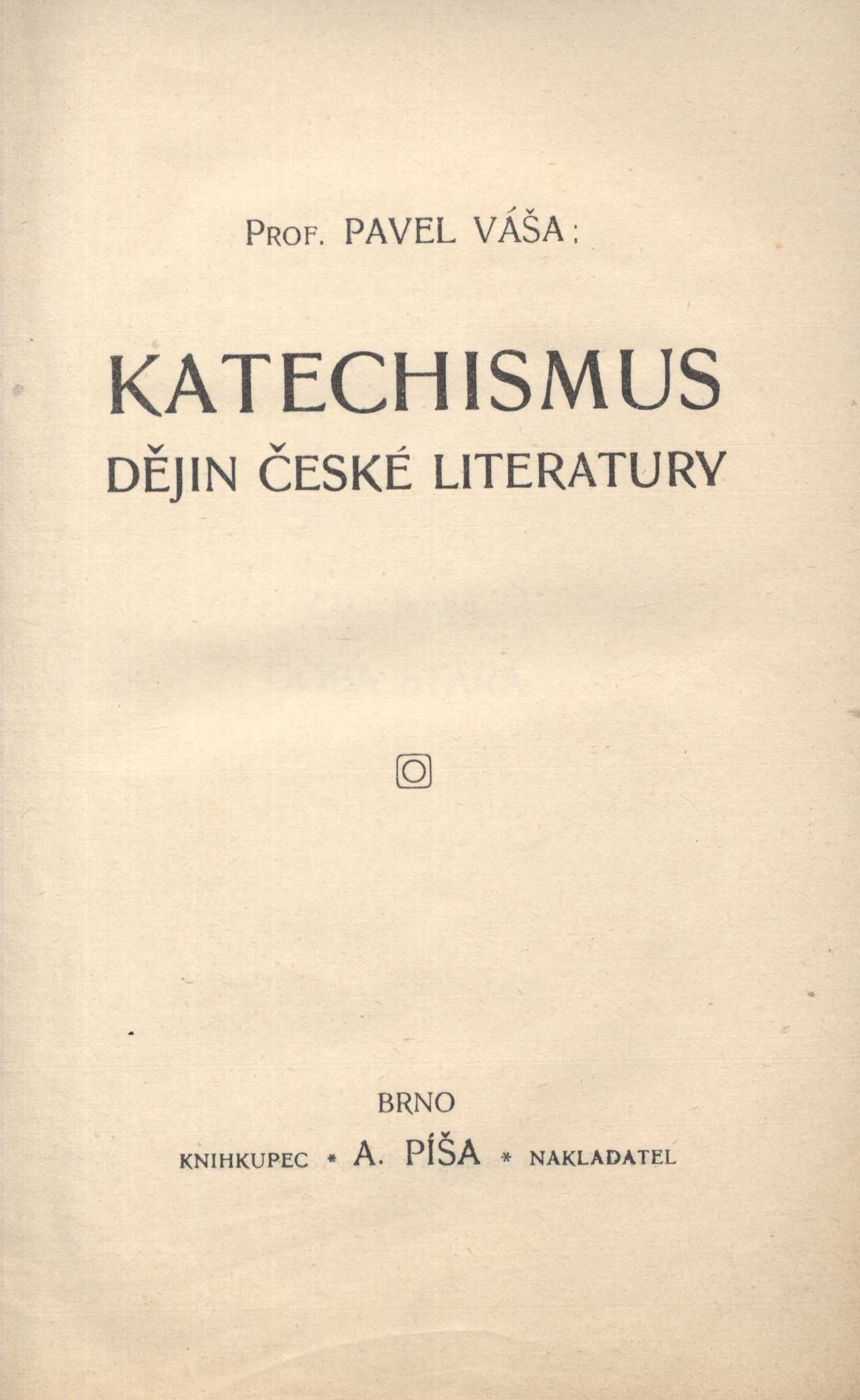 1. Title informationKatechismus dějin české literatury / Pavel Váša
