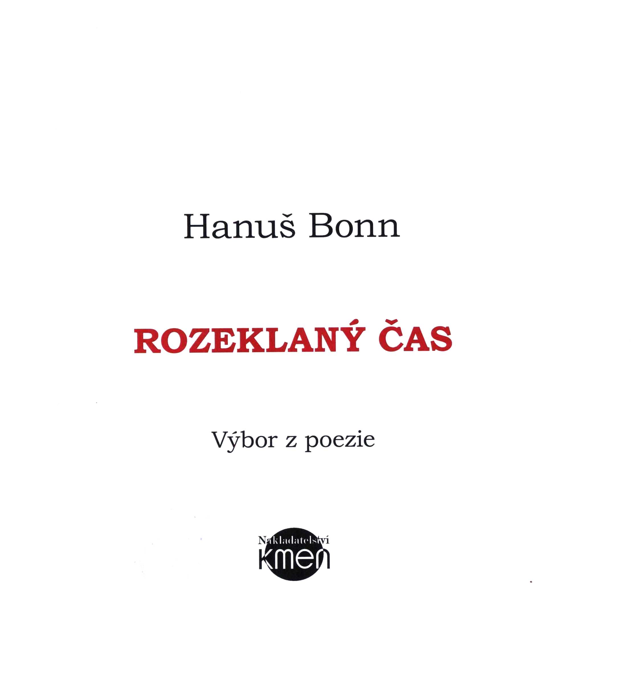 1. Title informationRozeklaný čas : výbor z poezie / Hanuš Bonn ; uspořádal a doslovem doprovodil: Vladimír Janovic ; obálka a ilustrace: Ida Huttová