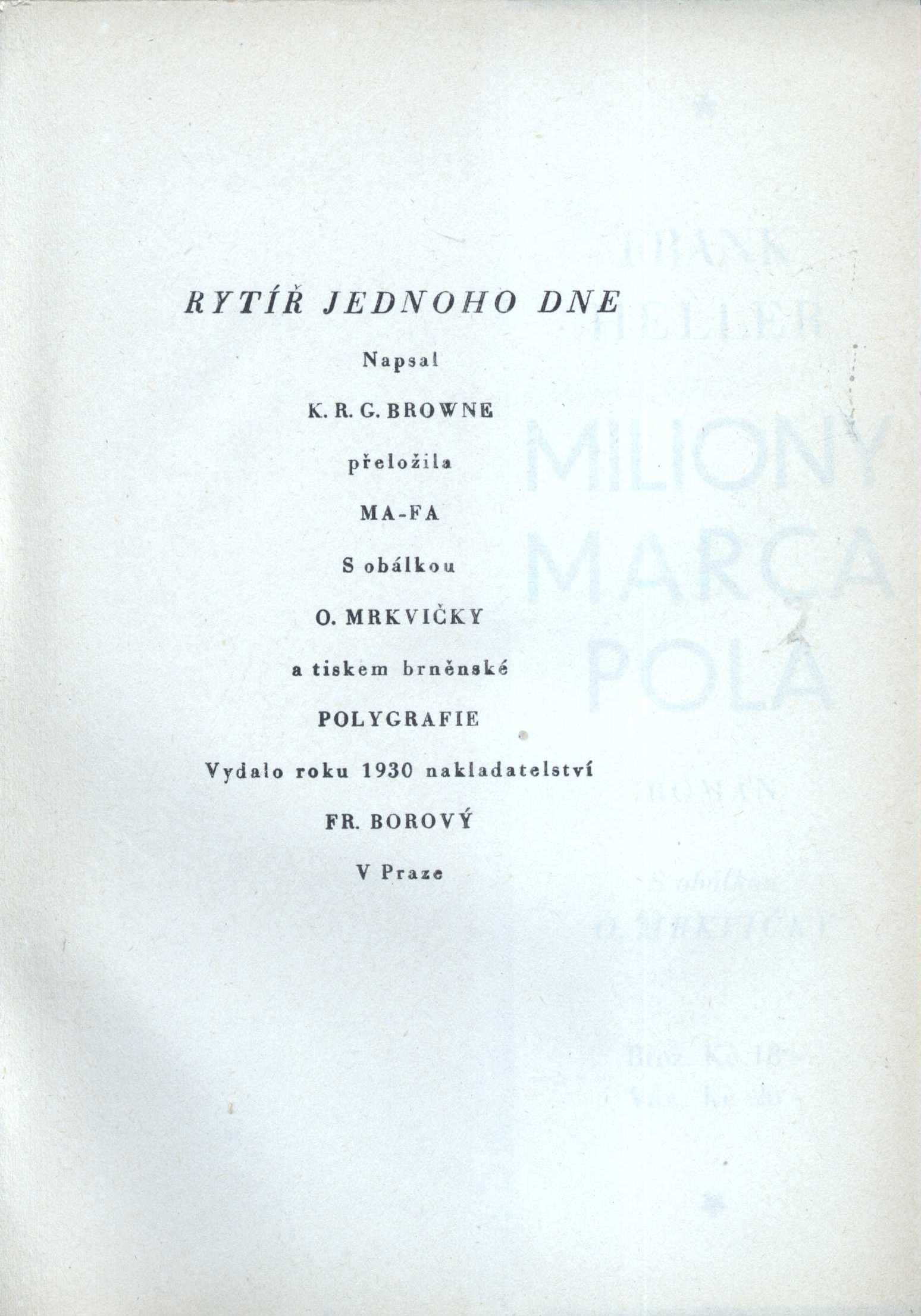 1. Title informationRytíř jednoho dne : román / K.R.G. Browne ; [přeložila MA-FA ; s obálkou O. Mrkvičky]