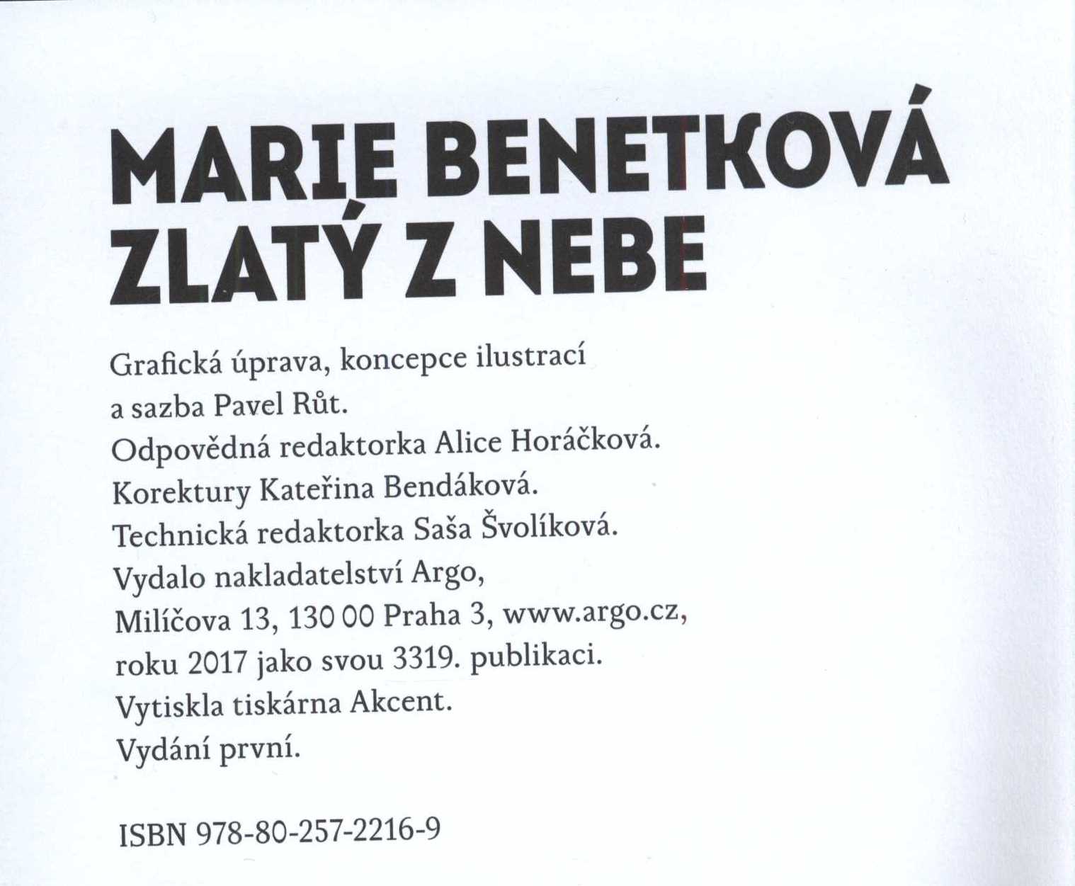 3. Názvové údajeZlatý z nebe / Marie Benetková ; grafická úprava, koncepce ilustrací a sazba Pavel Růt