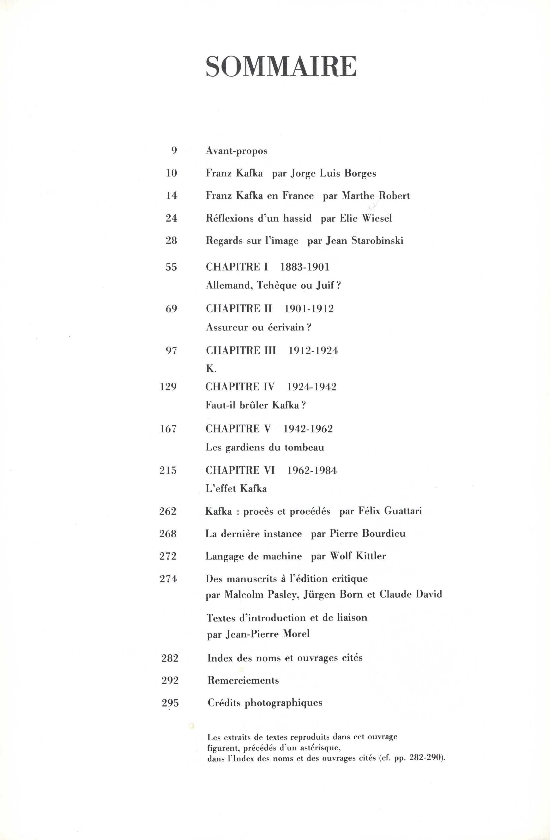 Keywords francouzská literatura * výroční tisk * fotografická publikace * čeští spisovatelé * německy píšící spisovatelé * Židé * Kafka F. * biografie * tvorba * význam * Paříž * Francie * r. 1984