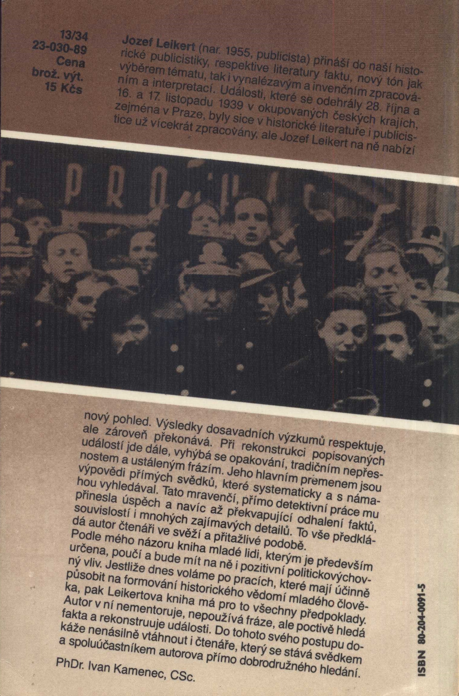 Keywords slovenská literatura * dějiny Československa * významná výročí * 28. říjen * 17. listopad 1939 * Opletal J. * vzpomínky pamětníků * fotografické přílohy * faksimile * český překlad * r. 1989