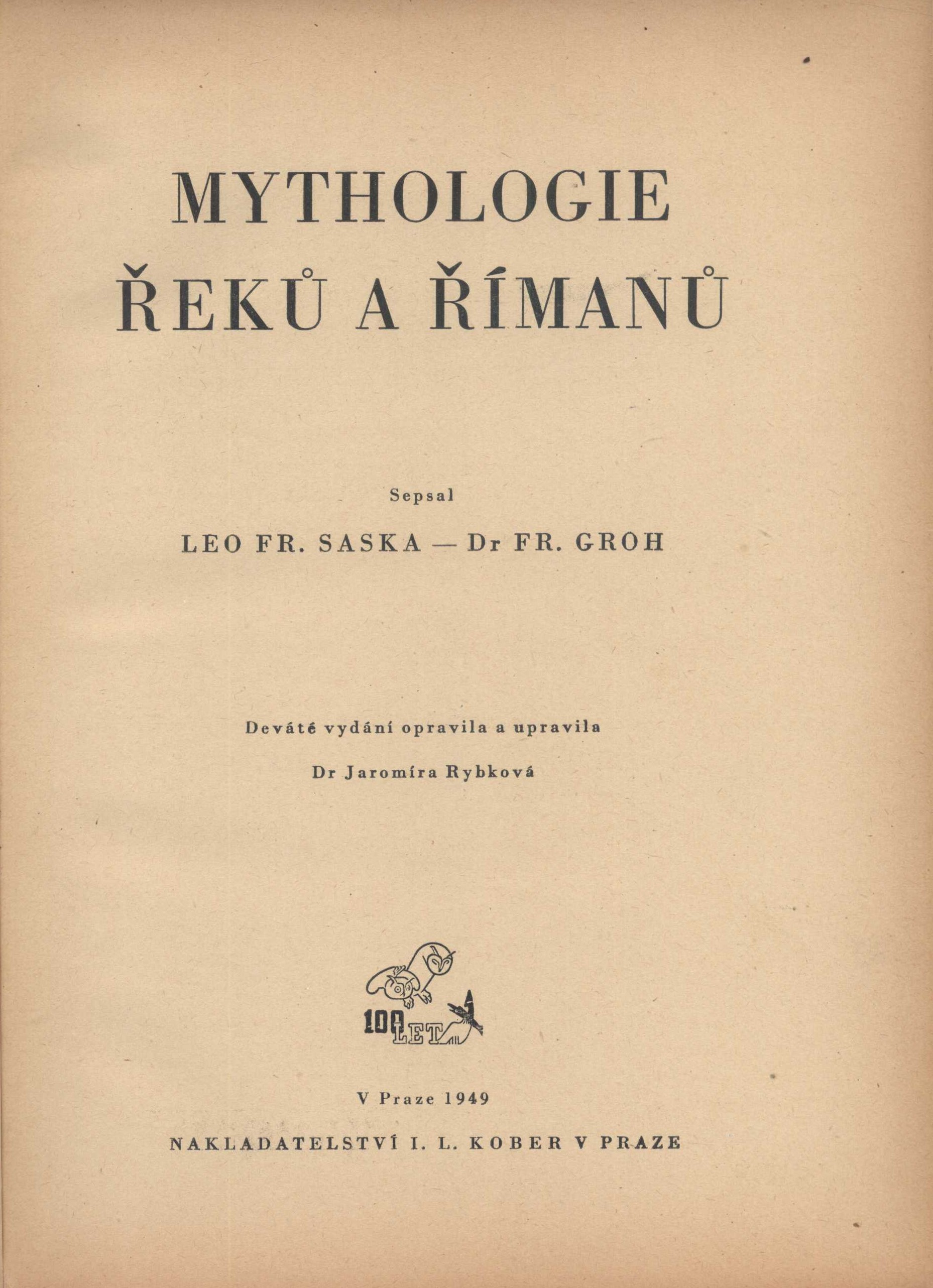 1. Title informationMythologie Řeků a Římanů / sepsal Leo František Saska, František Groh ; opravila a upravila Jaromíra Rybková