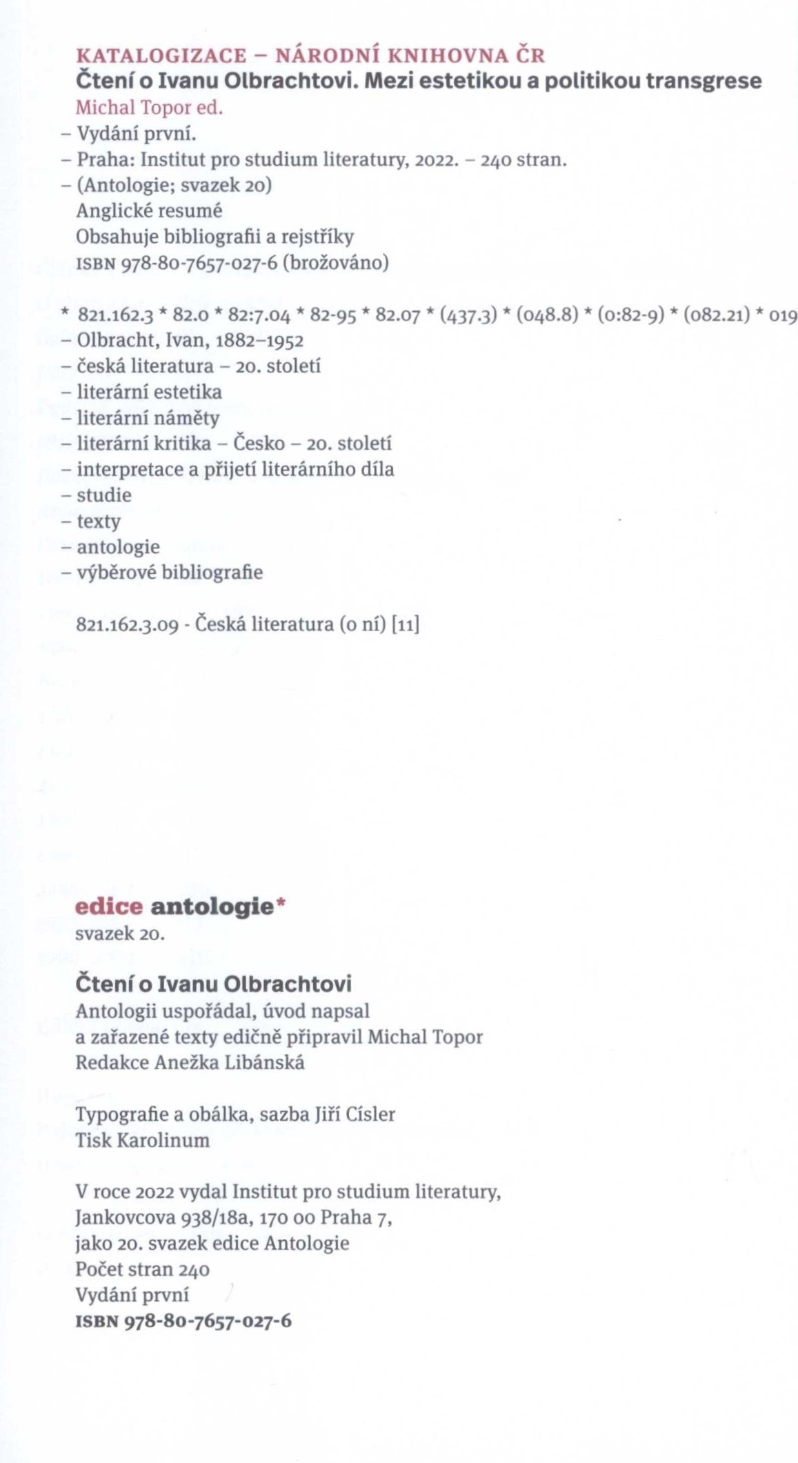 PublicationPraha : Institut pro studium literatury, 2022