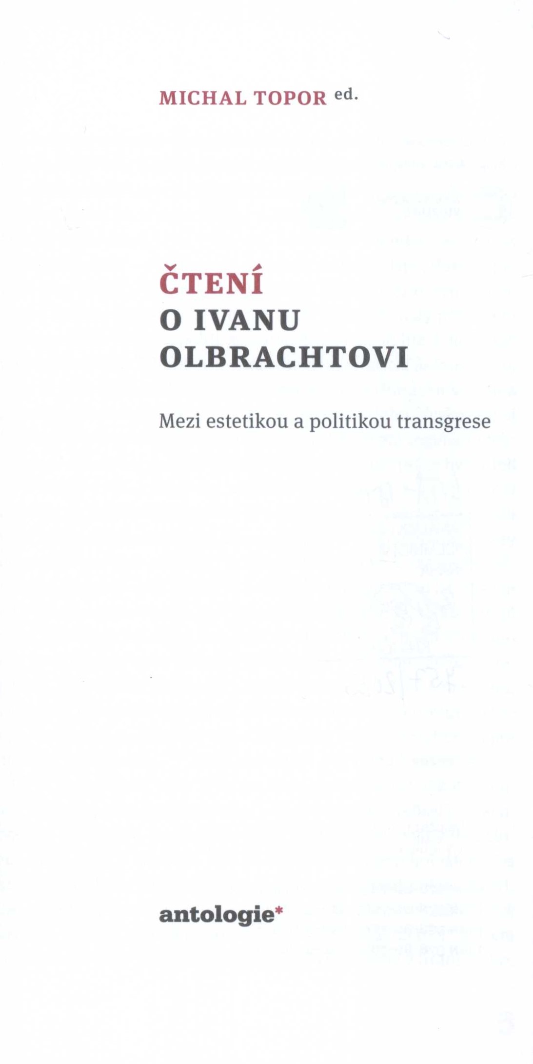 1. Title informationČtení o Ivanu Olbrachtovi : mezi estetikou a politikou transgrese / [antologii uspořádal, úvod napsal a zařazené texty edičně připravil] Michal Topor ed. ; typografie a obálka, sazba Jiří Císler