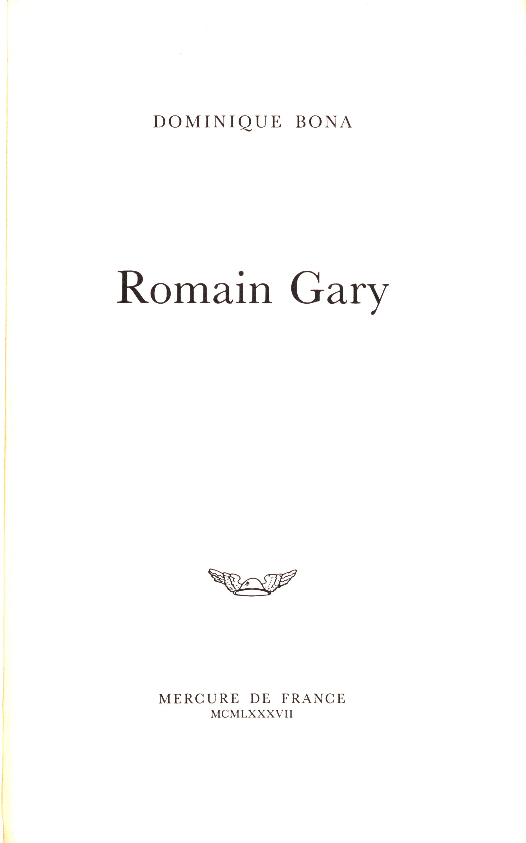 1. Title informationRomain Gary / Dominique Bona ; couverture Raymond Stoffel