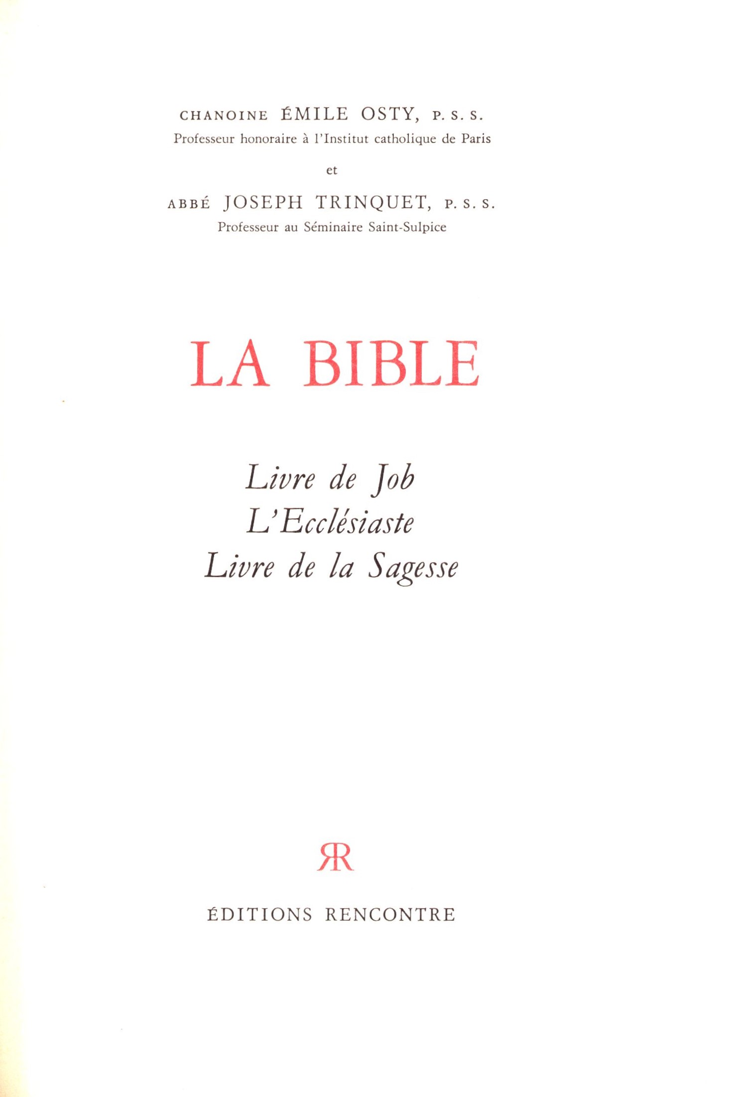 Title informationLa Bible : Livre de Job ; L'Ecclésiaste ; Livre de la Sagesse / Émile Osty et Joseph Trinquet