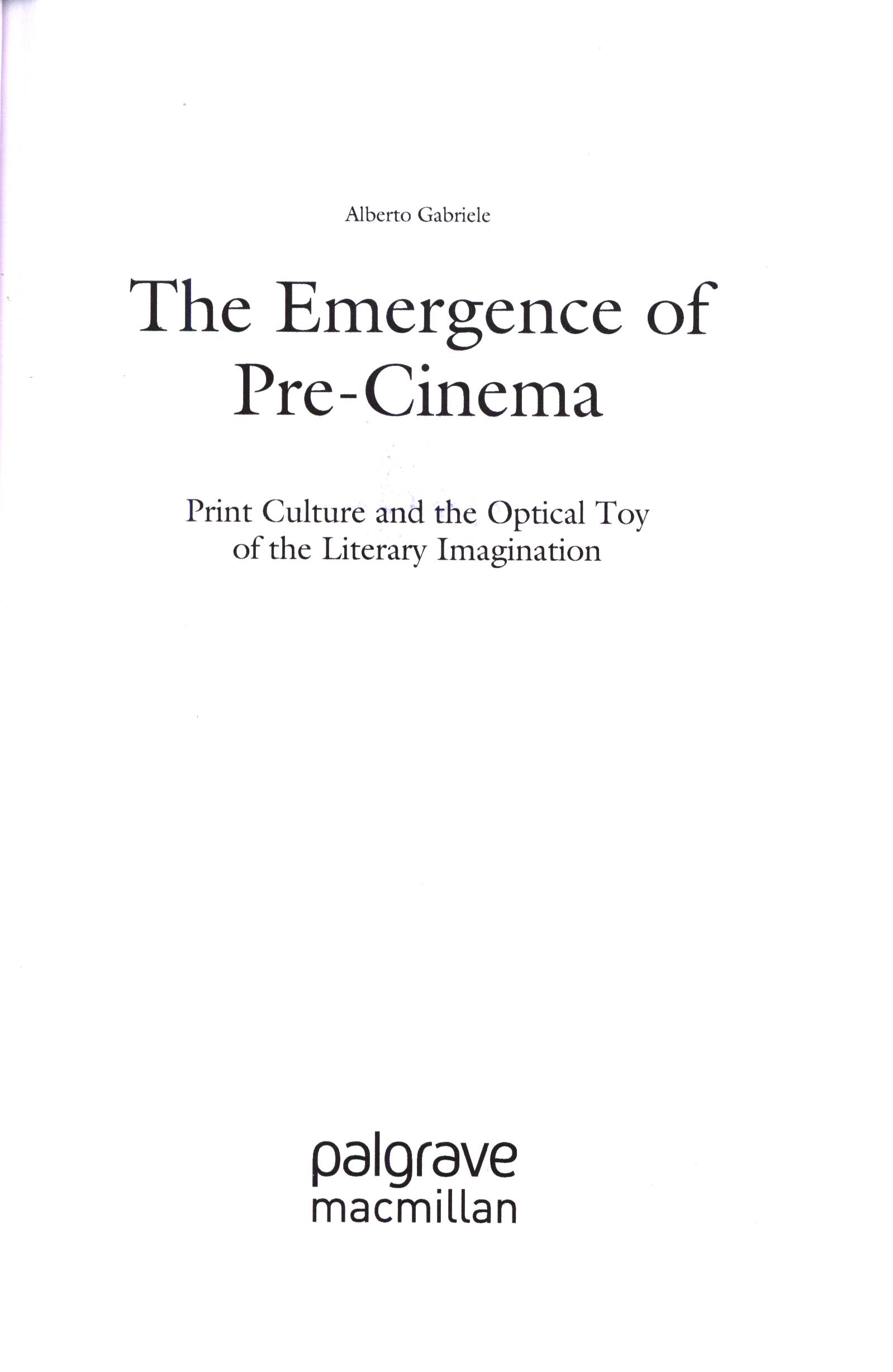 1. Title informationThe Emergence of Pre-Cinema : Print Culture and the Optical Toy of the Literary Imagination / Alberto Gabriele