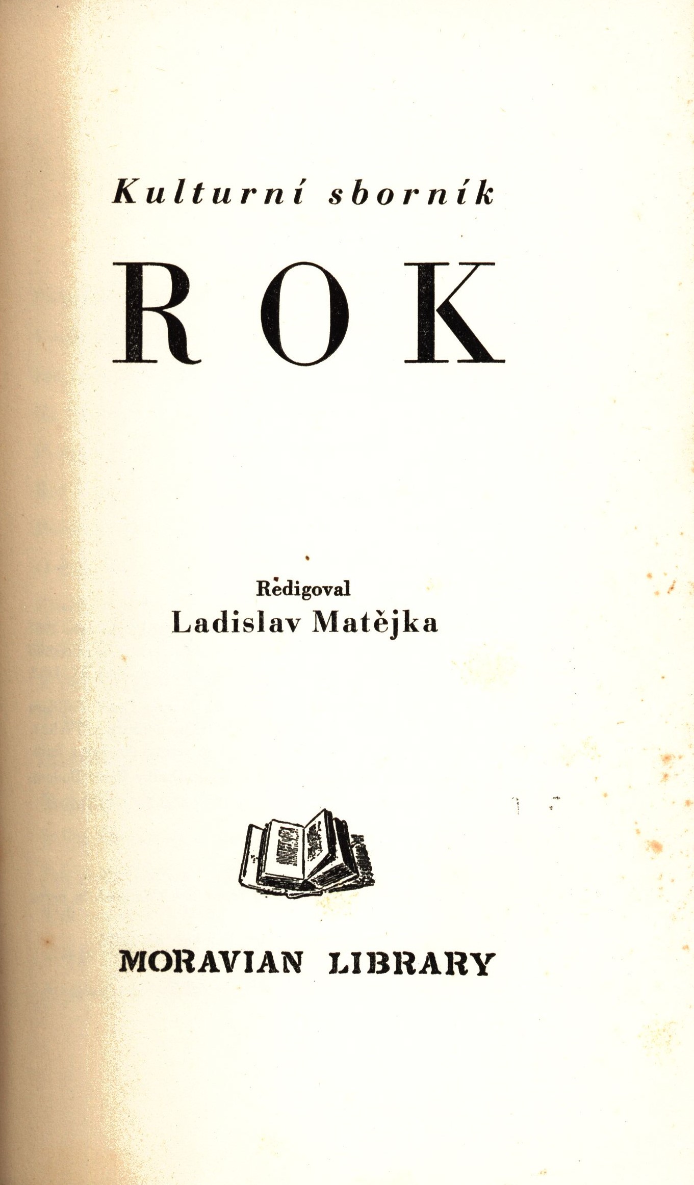 Title informationRok : kulturní sborník / Redigoval Ladislav Matějka ; záhlaví nakreslila Marzia Gnoli Polidoro (kromě záhlaví na s. 35, které je reprodukcí nejstaršího pohledu na Prahu)